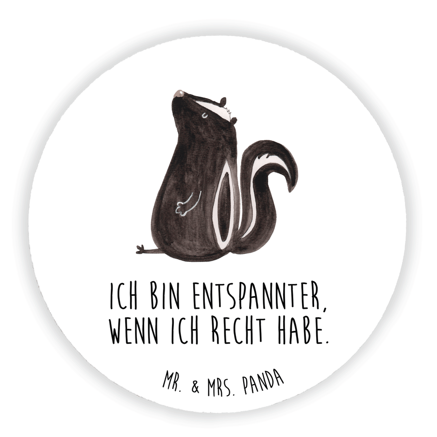 Rund Magnet Stinktier sitzend - mit Spruch - Weiß