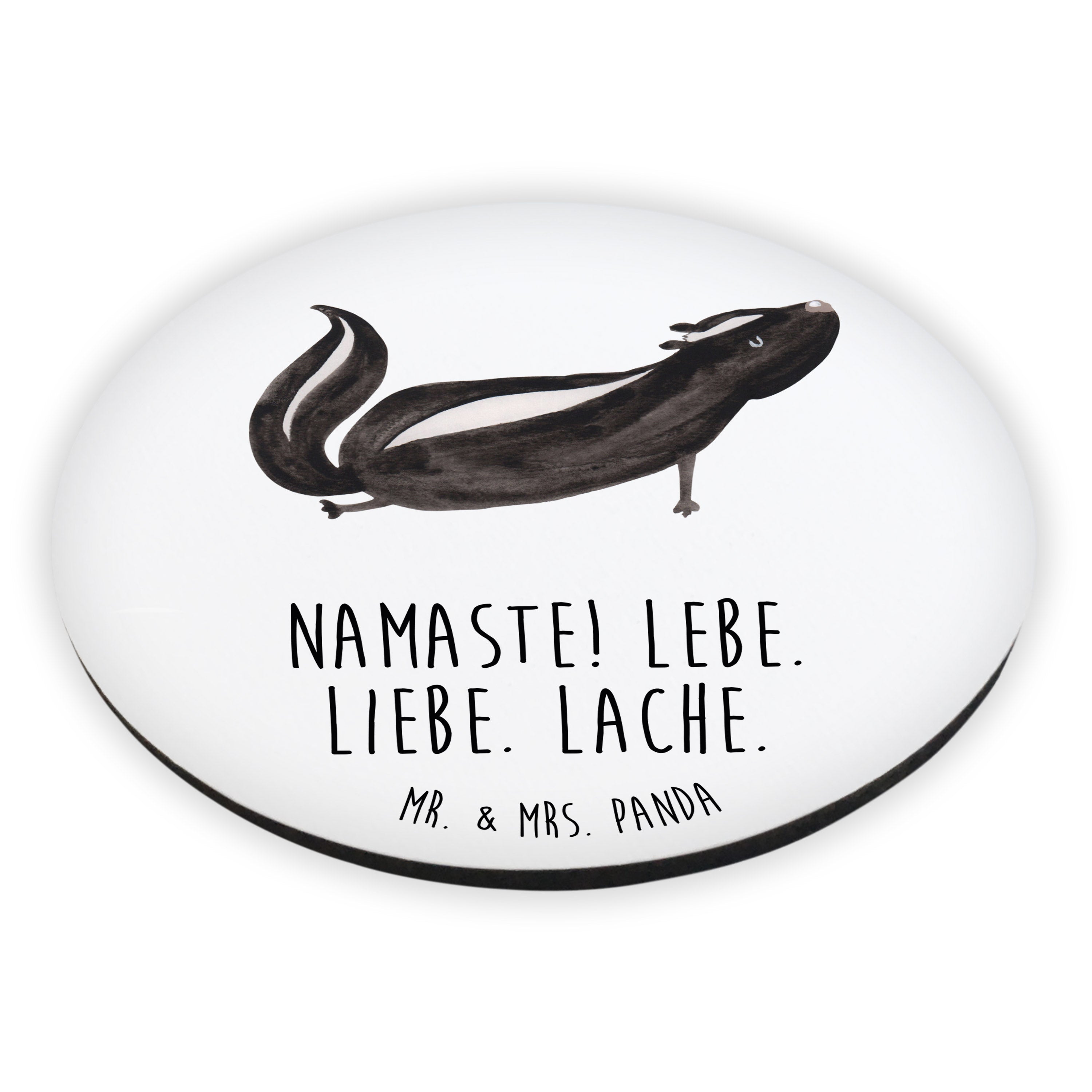 Rund Magnet Stinktier Yoga - mit Spruch - Weiß
