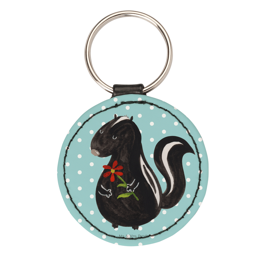 Rund Schlüsselanhänger Stinktier Blume - Türkis Pastell