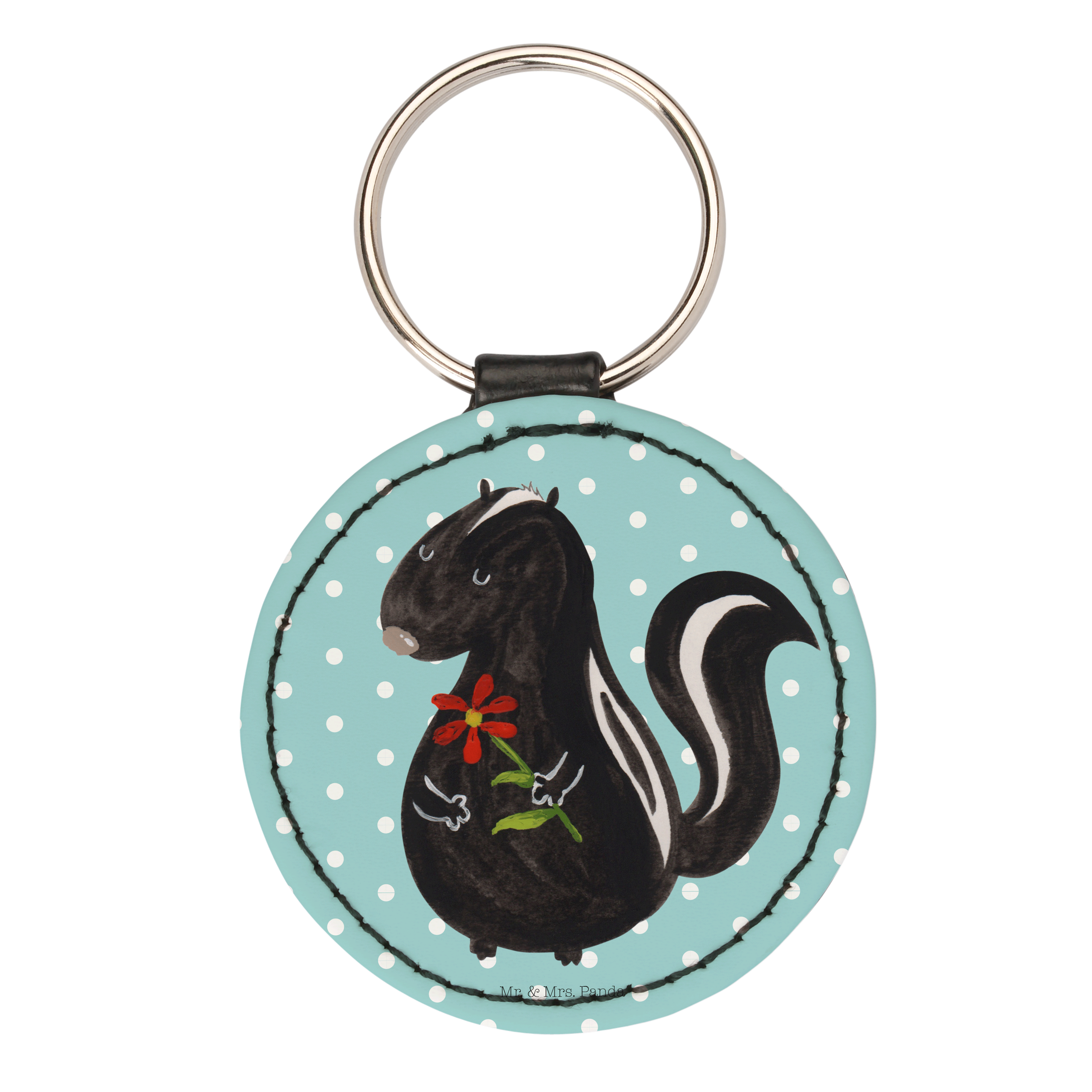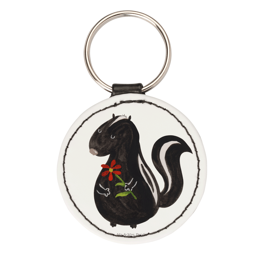 Rund Schlüsselanhänger Stinktier Blume - Weiß