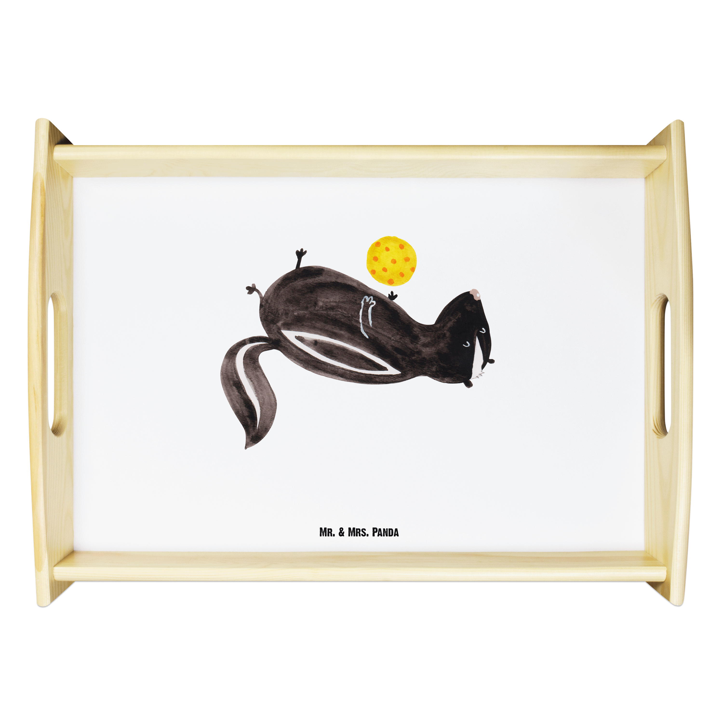 Serviertablett Stinktier Ball Tablett, Holztablett, Küchentablett, Dekotablett, Frühstückstablett, Stinktier, Skunk, Wildtier, Raubtier, Stinker, Stinki, verspielt, Weisheit