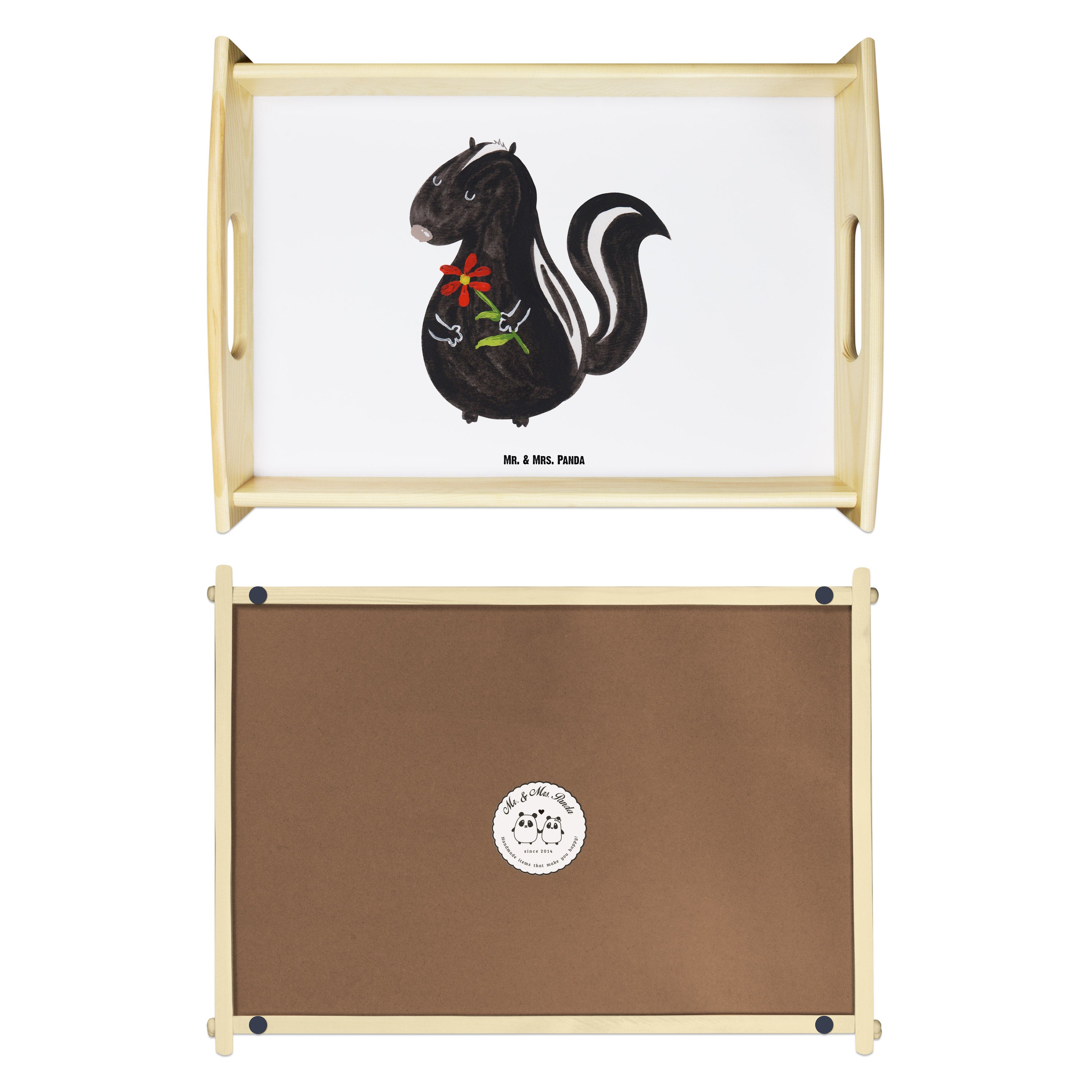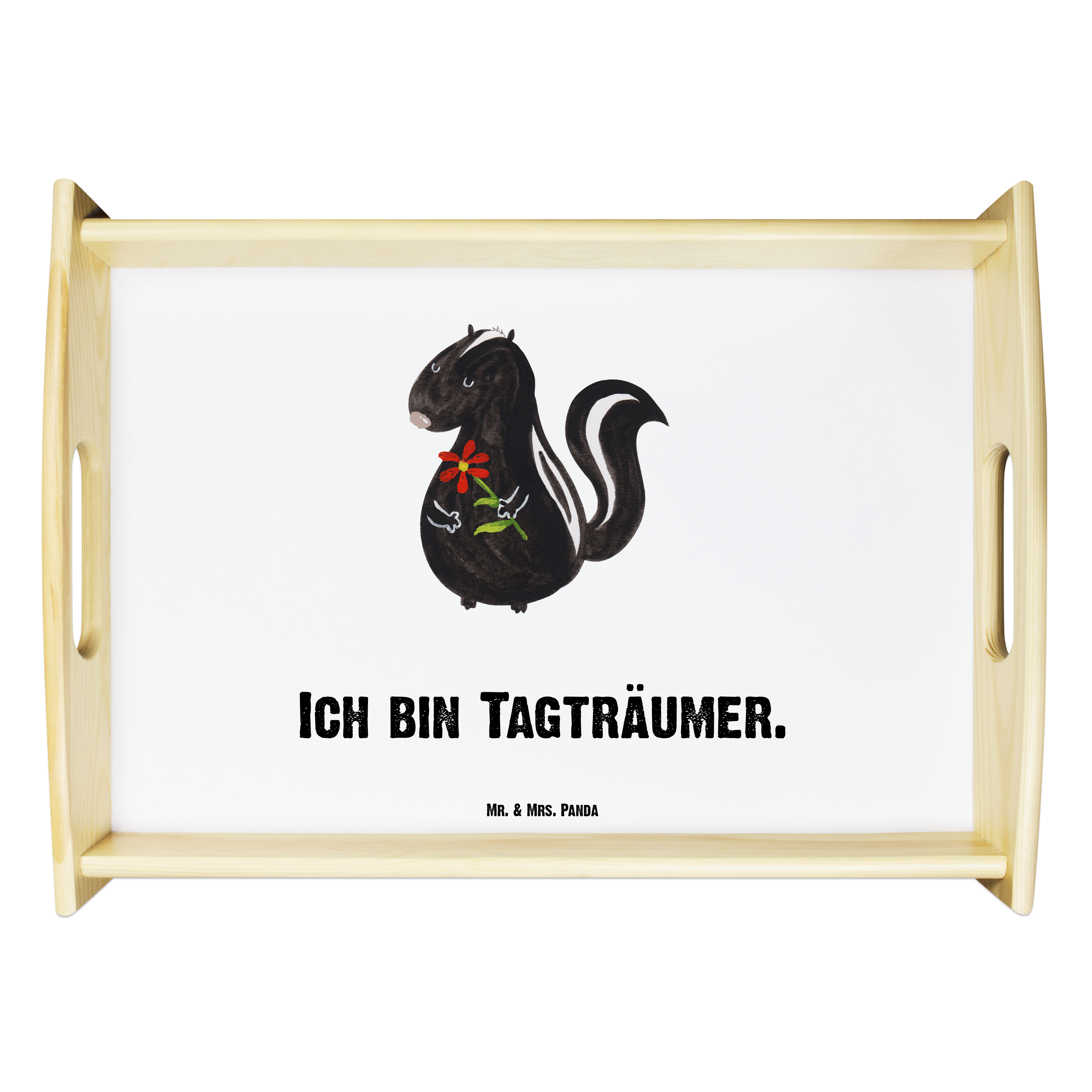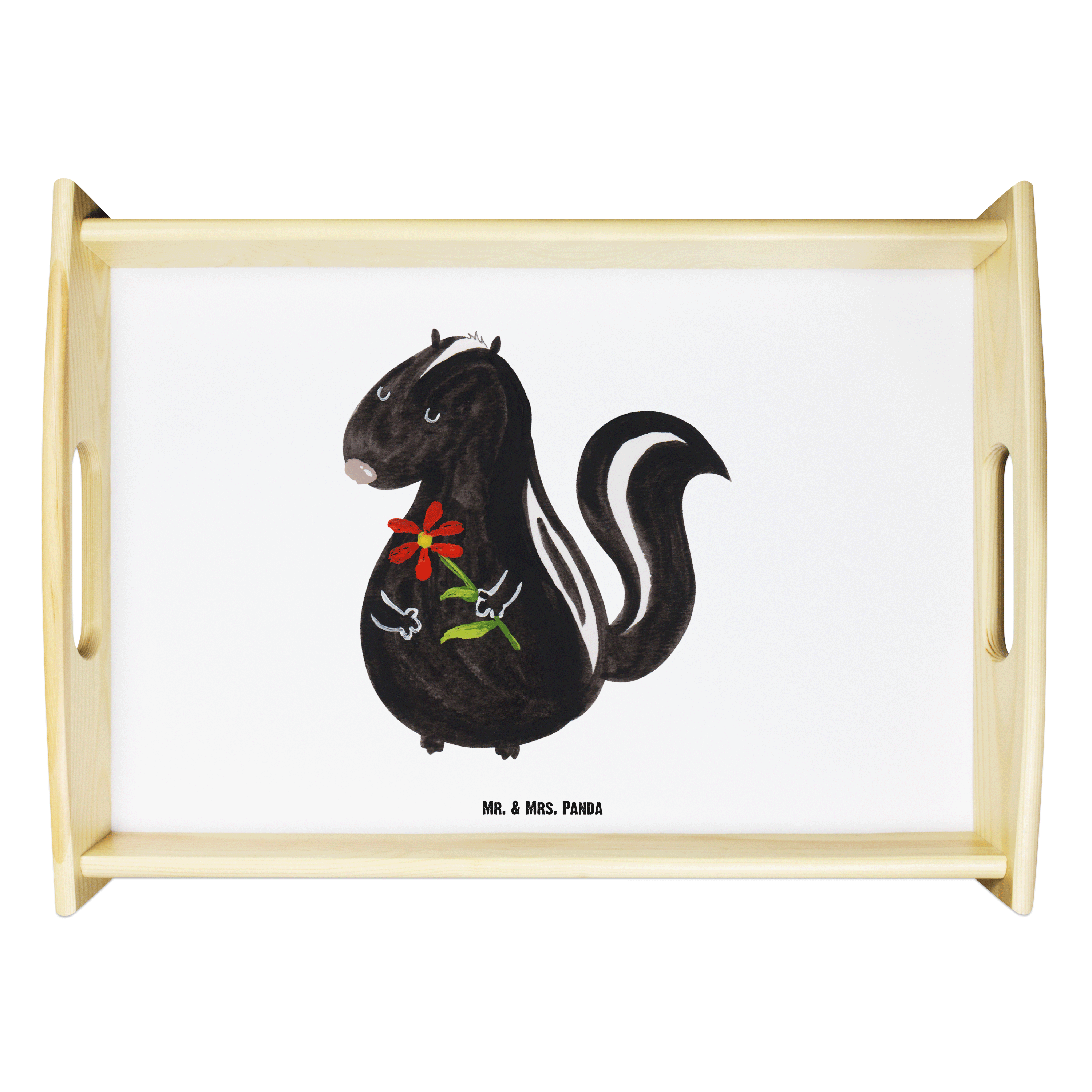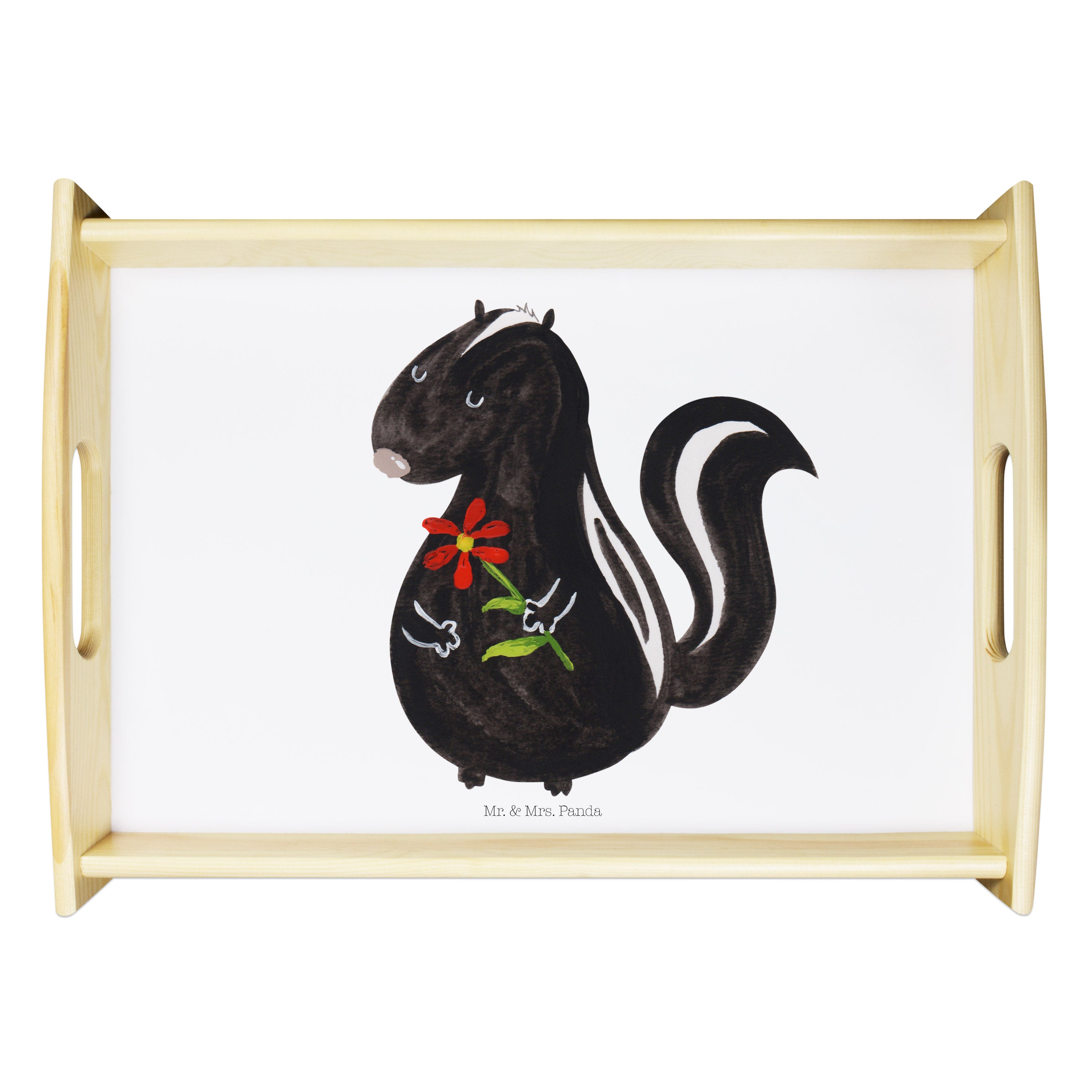 Serviertablett Stinktier Blume Tablett, Holztablett, Küchentablett, Dekotablett, Frühstückstablett, Stinktier, Skunk, Wildtier, Raubtier, Stinker, Stinki, Tagträumer, verträumt, Dreams, Träume