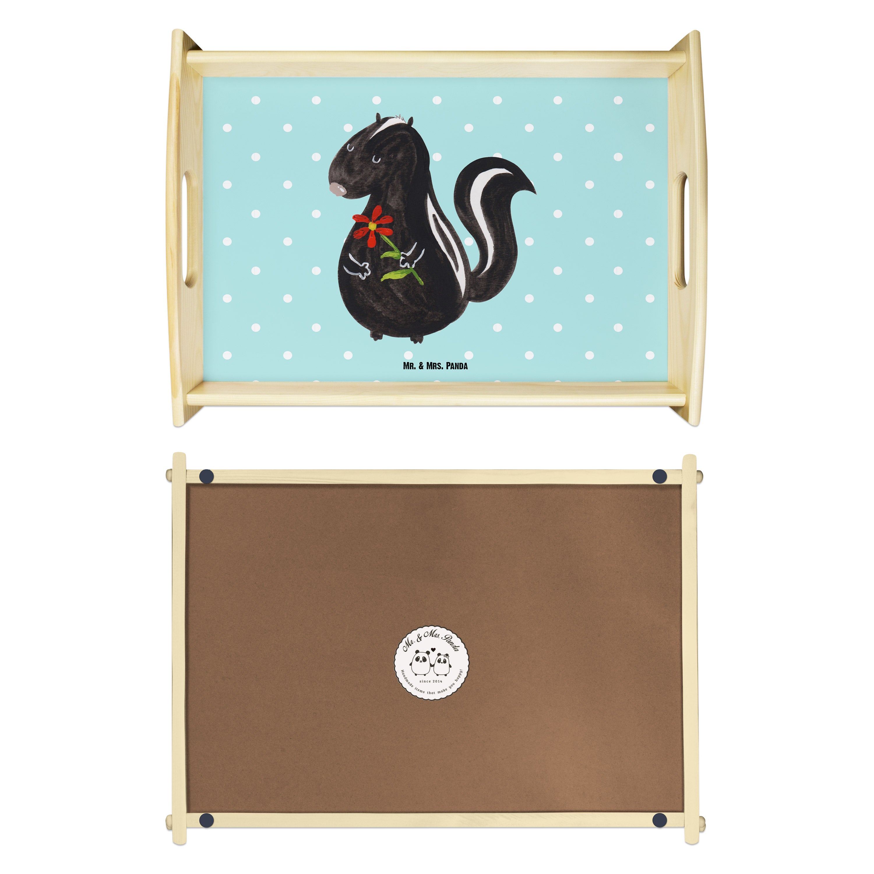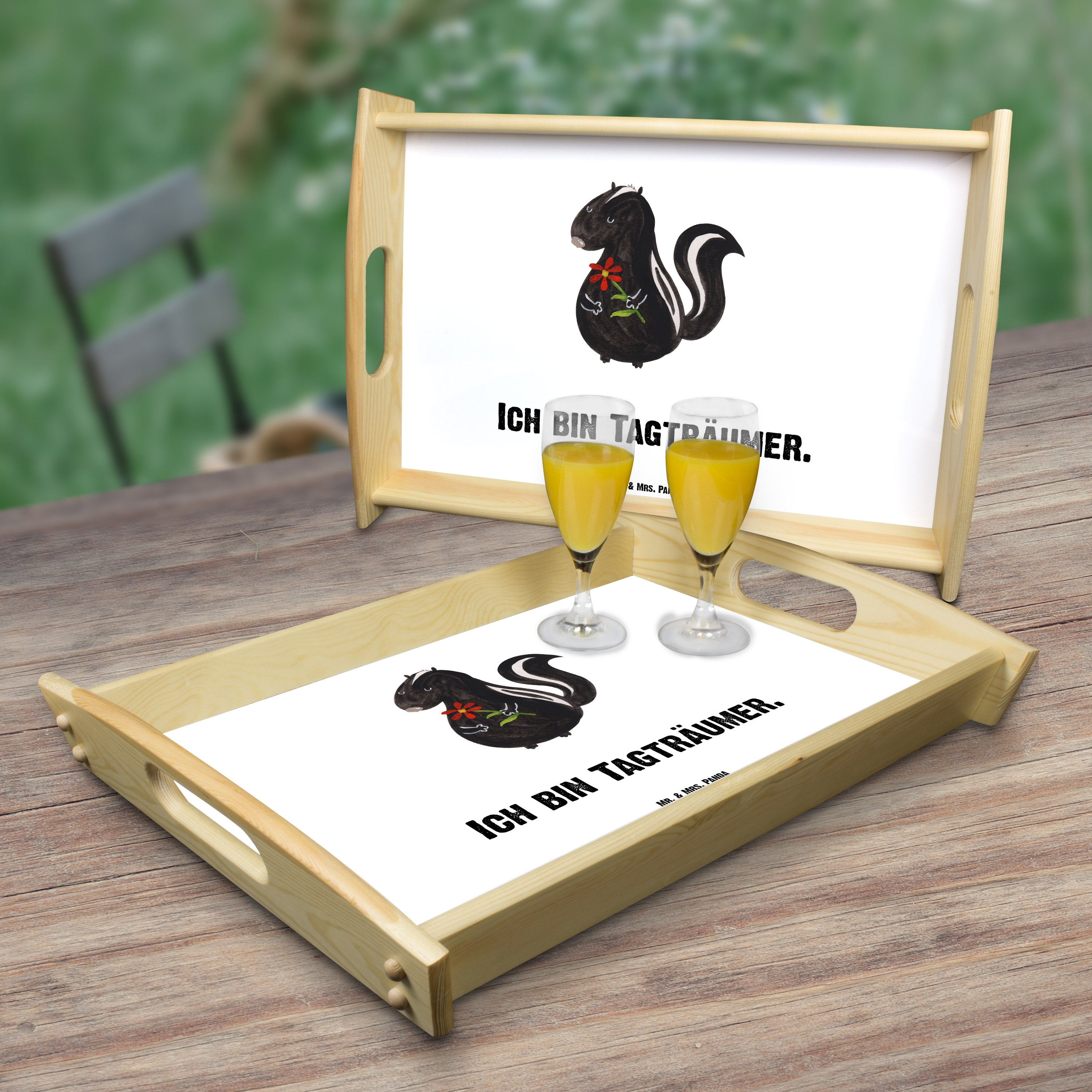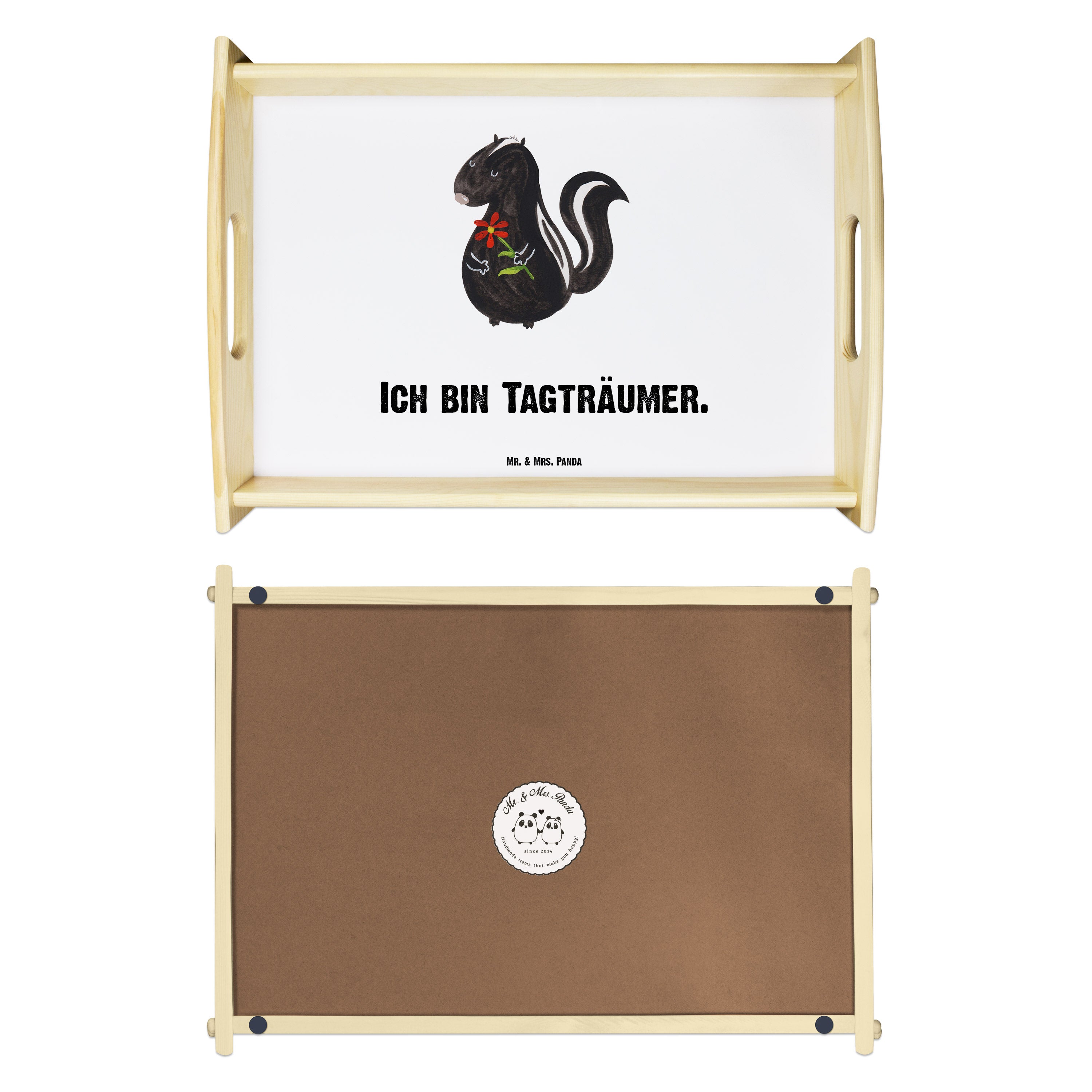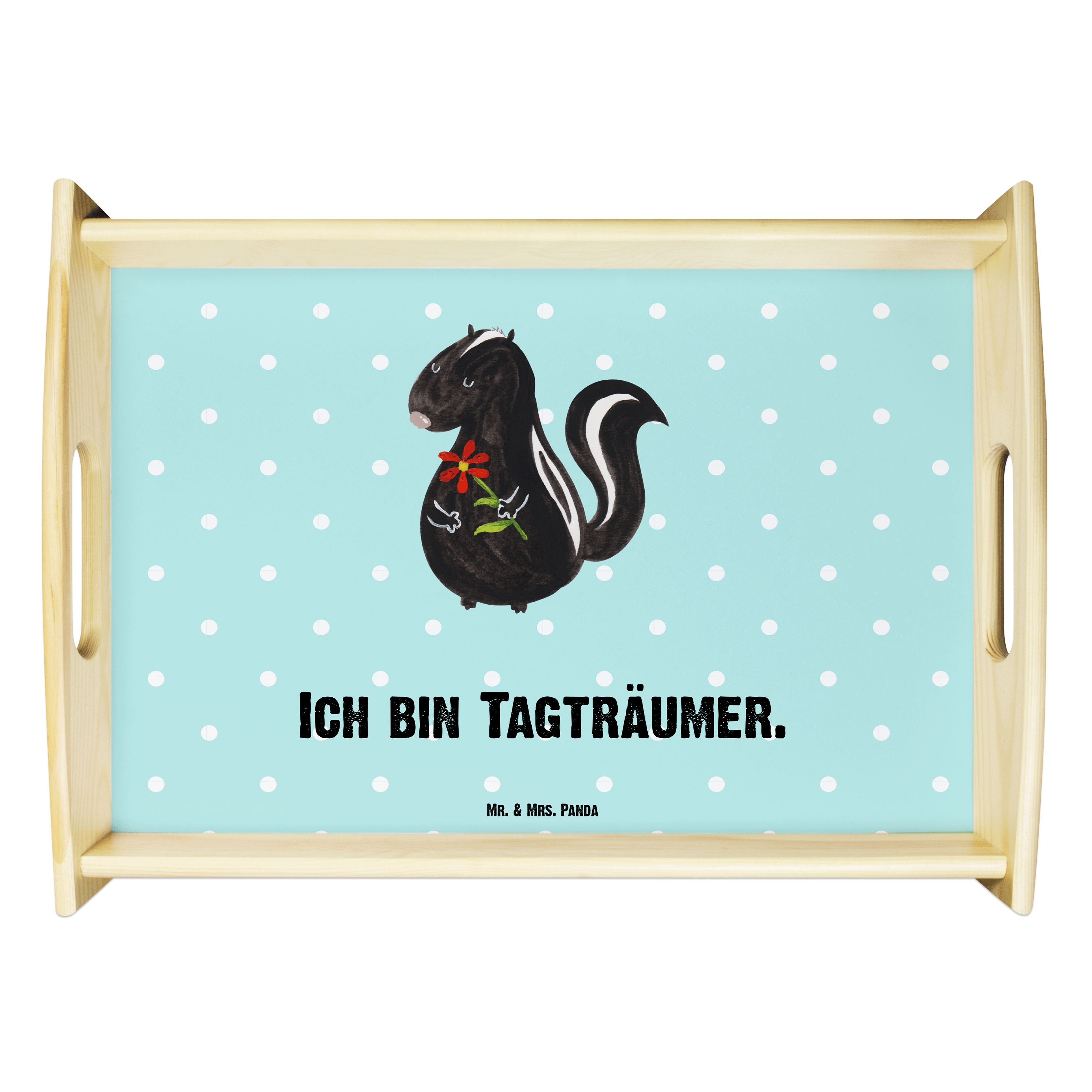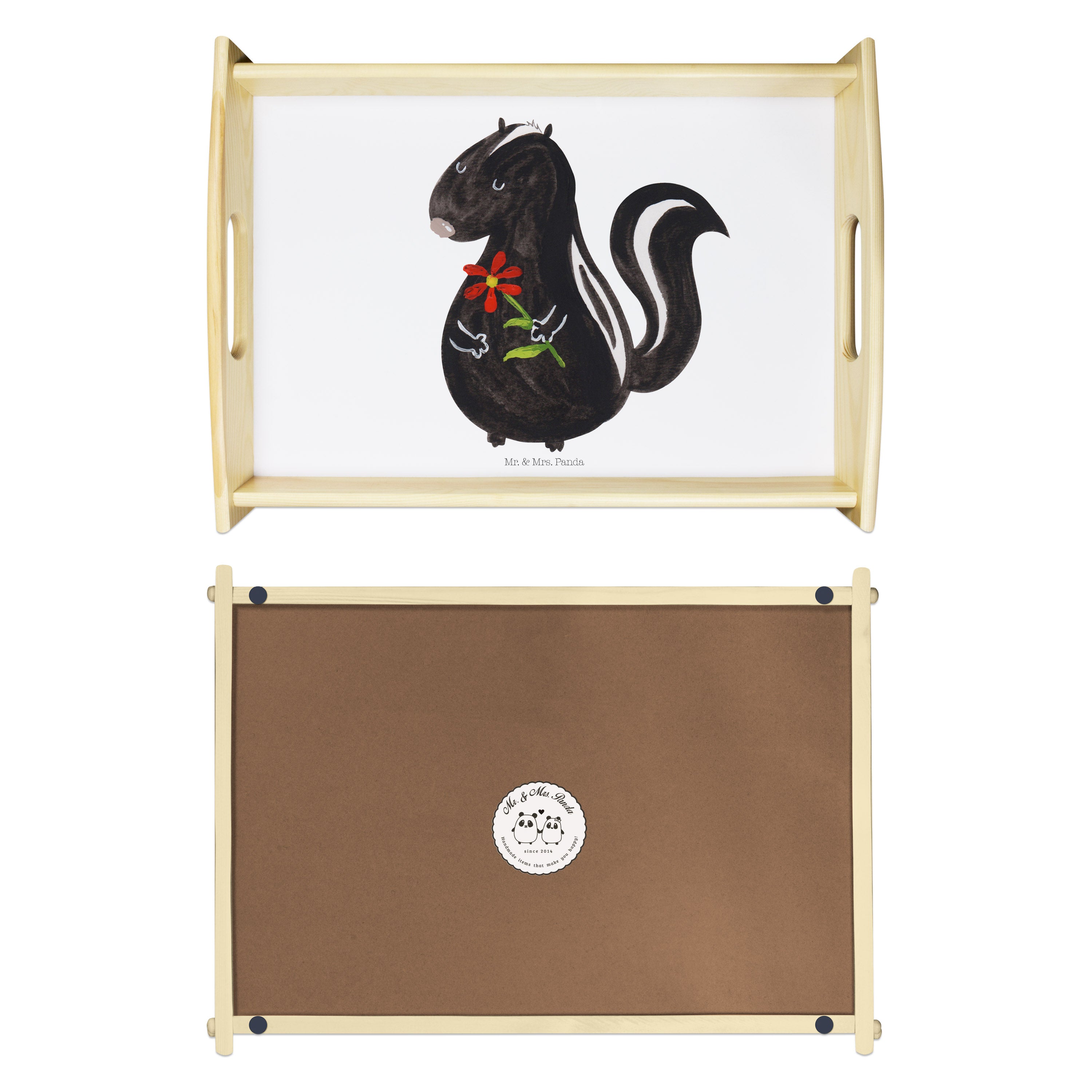 Serviertablett Stinktier Blume Tablett, Holztablett, Küchentablett, Dekotablett, Frühstückstablett, Stinktier, Skunk, Wildtier, Raubtier, Stinker, Stinki, Tagträumer, verträumt, Dreams, Träume
