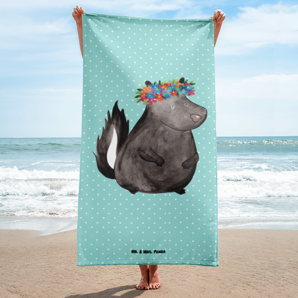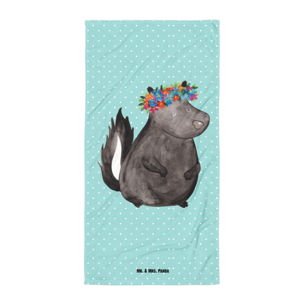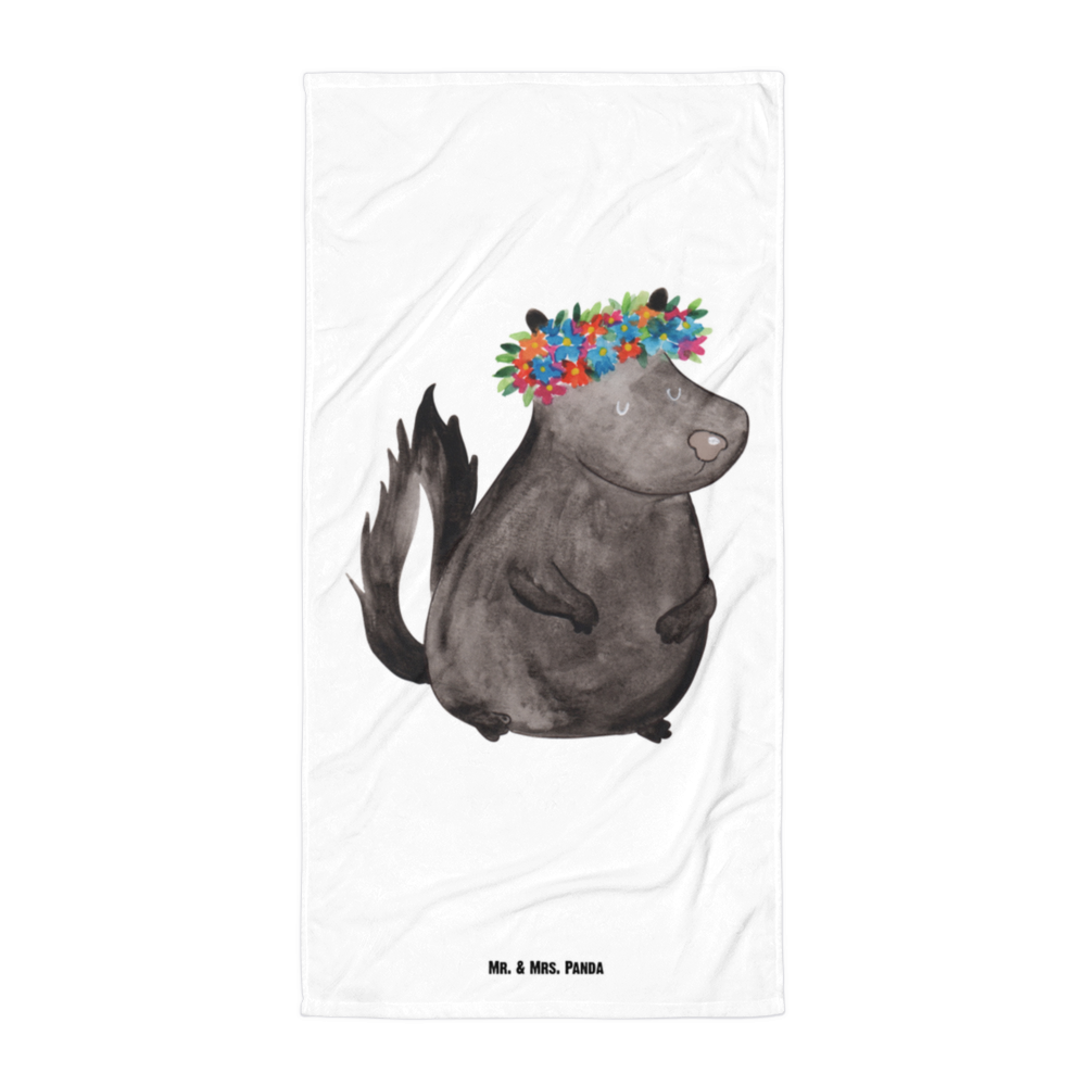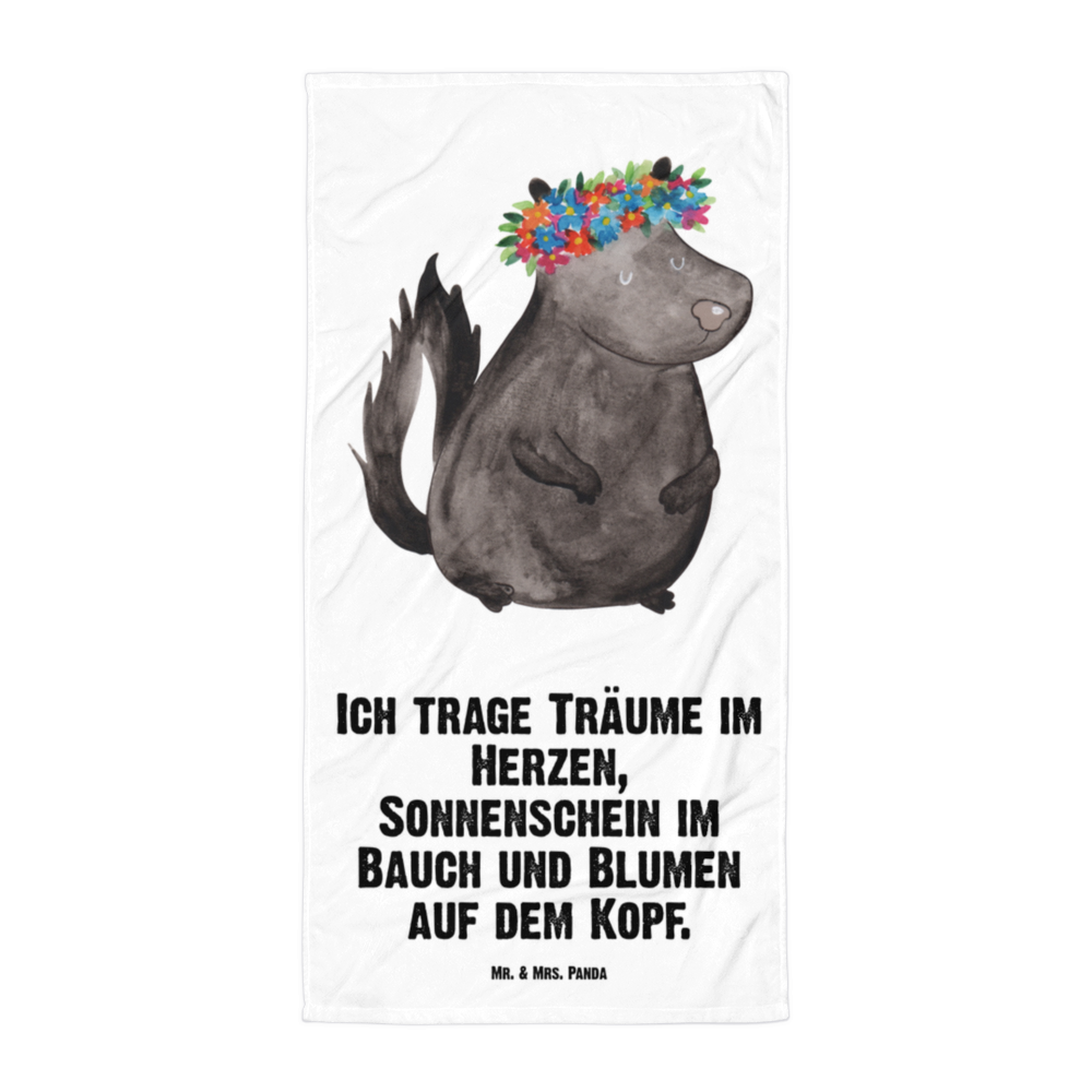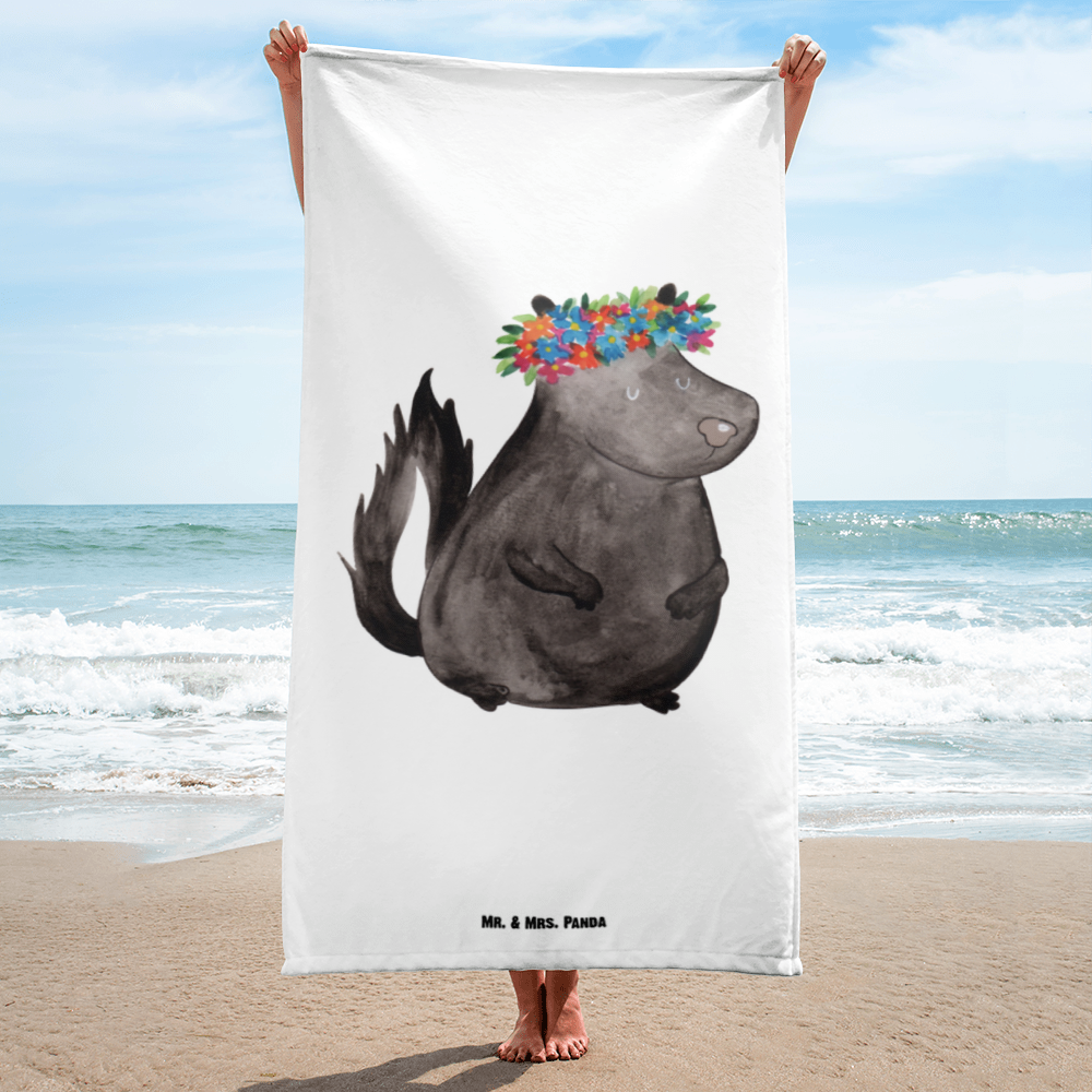 XL Badehandtuch Stinktier Blumenmaedchen - mit Spruch - Weiß