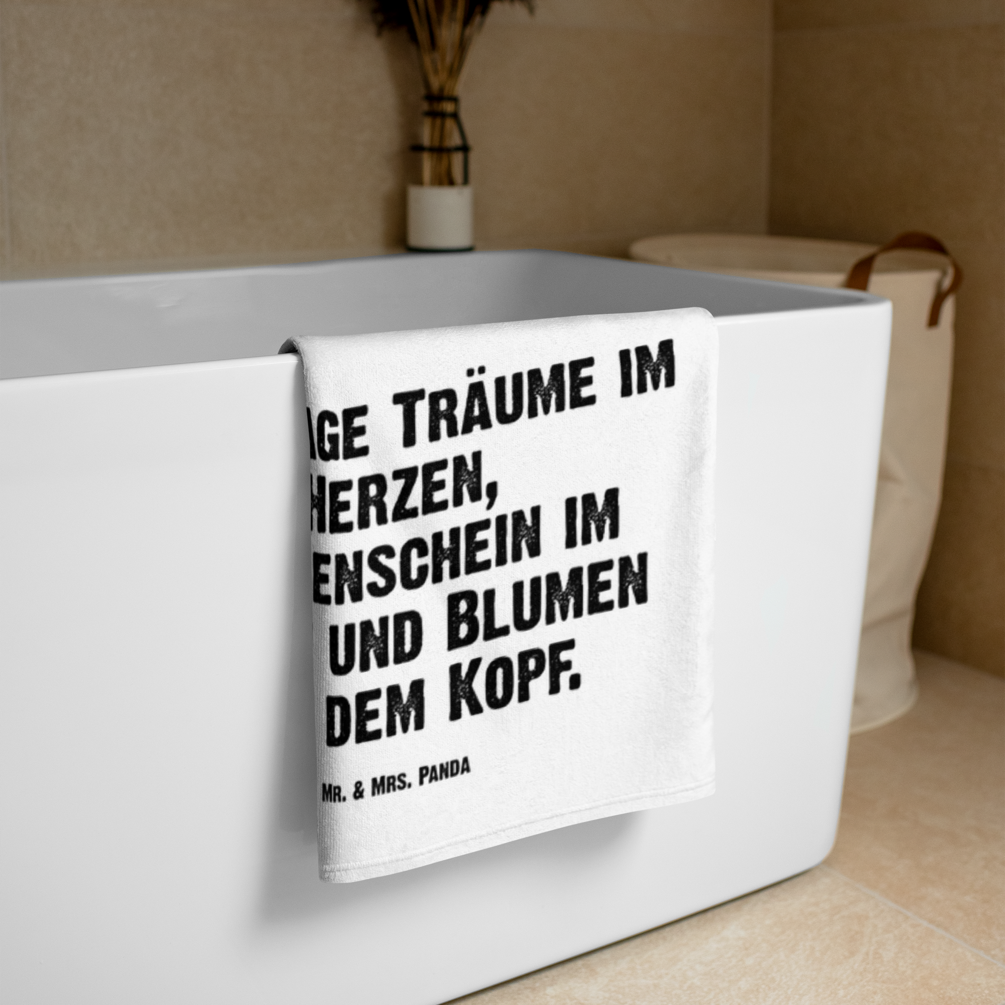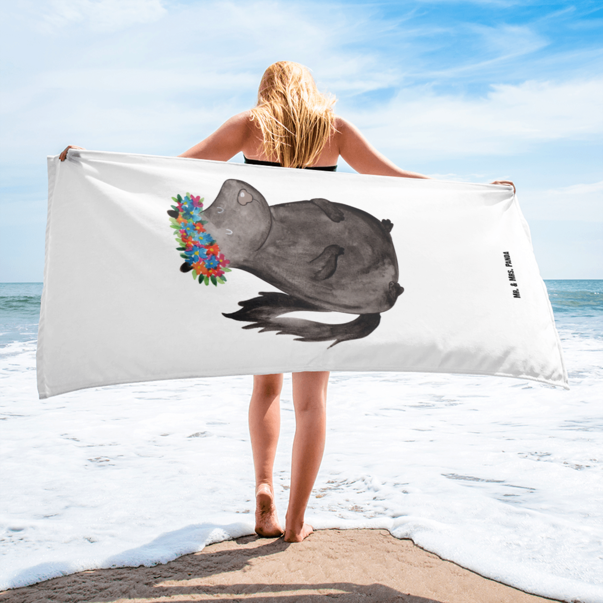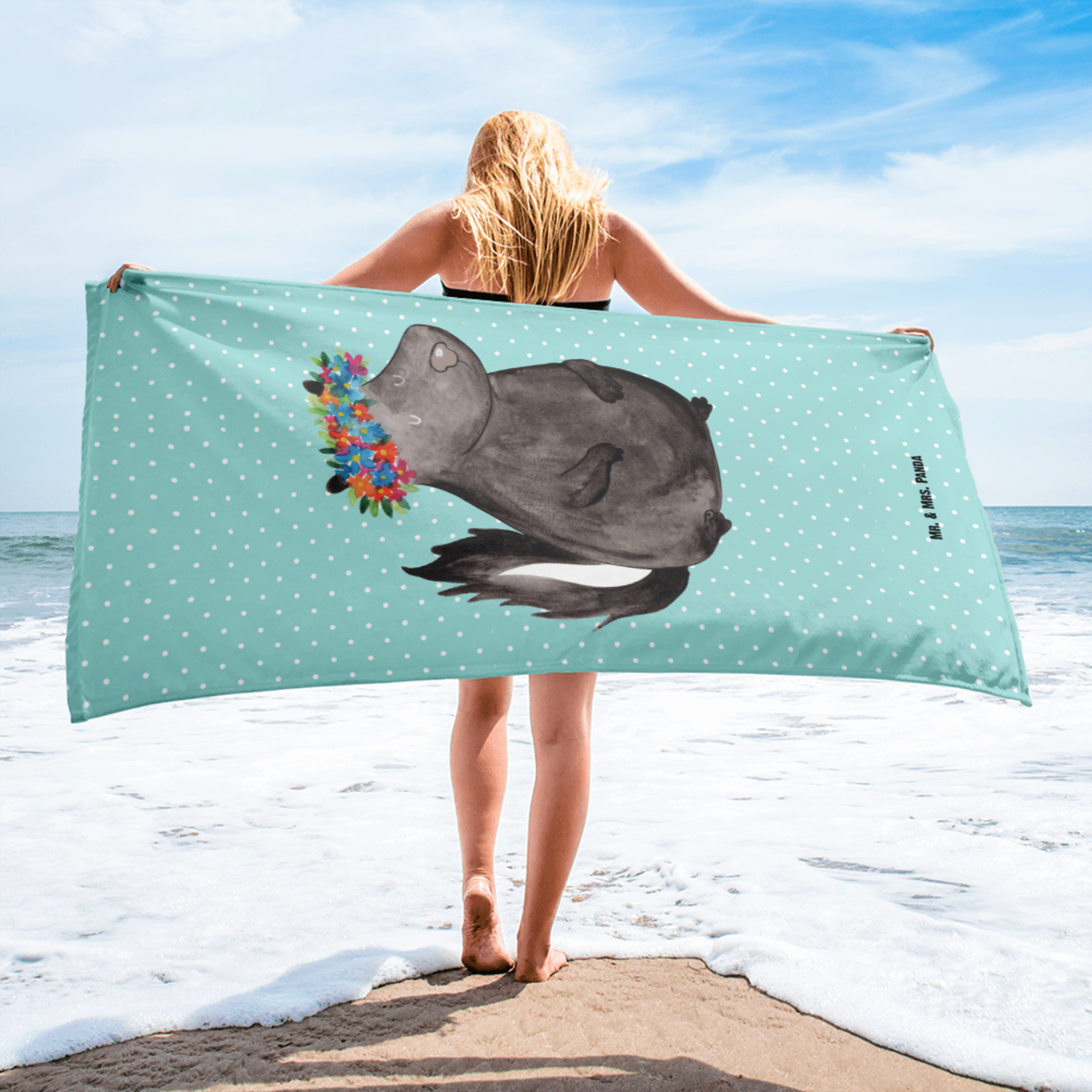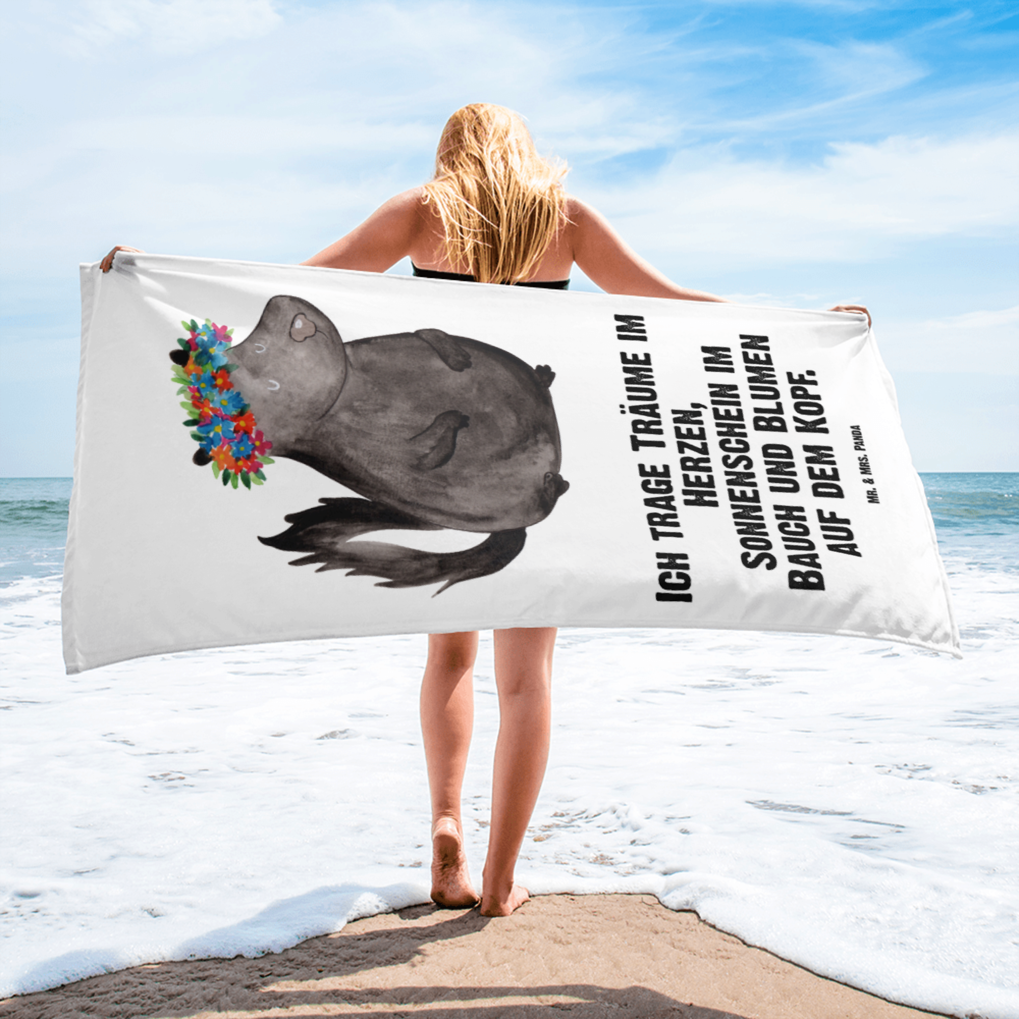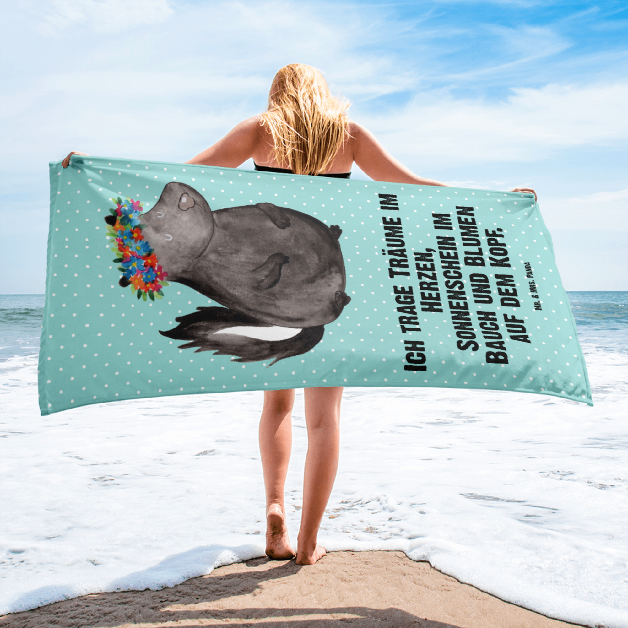 XL Badehandtuch Stinktier Blumenmaedchen - mit Spruch - Weiß