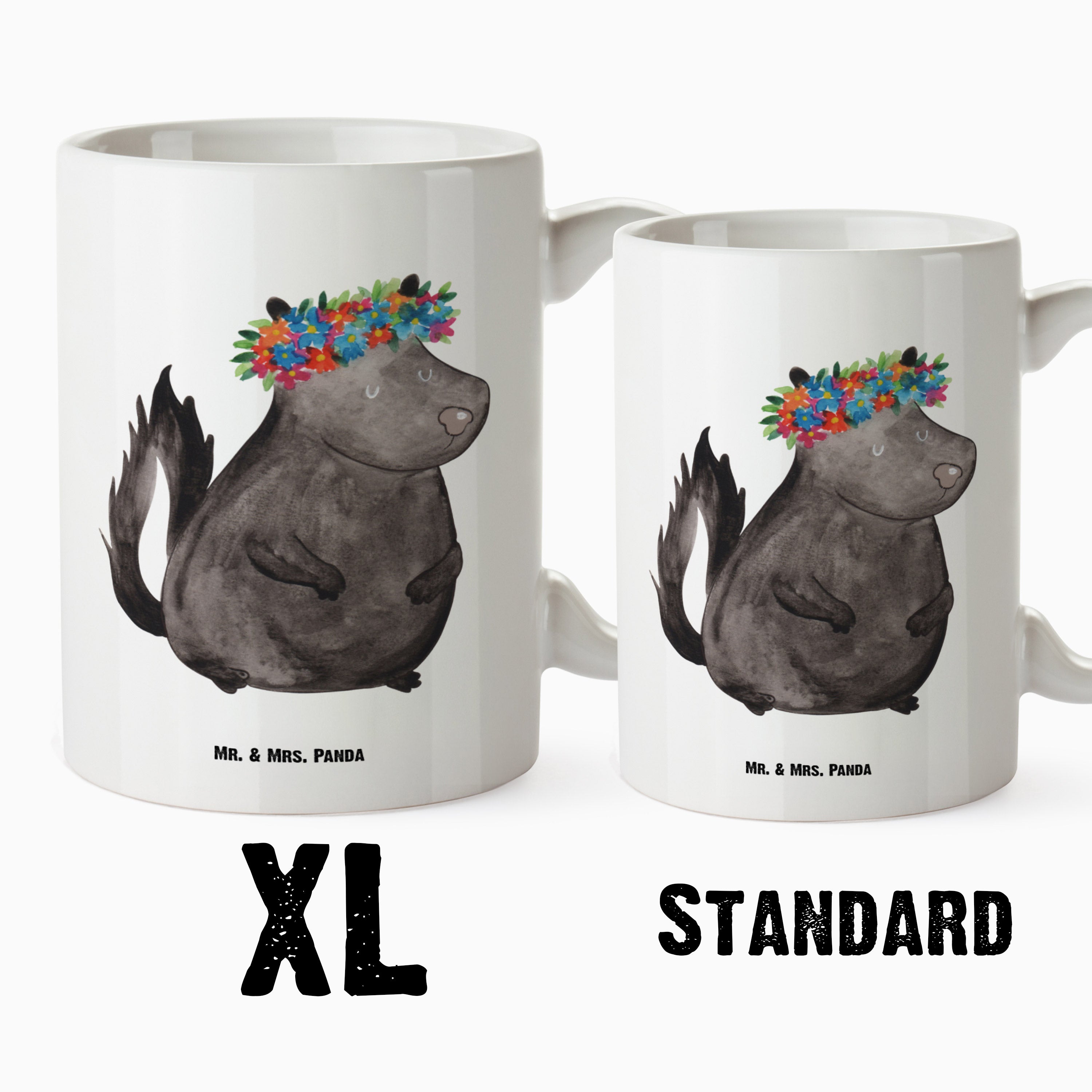 XL Tasse Stinktier Blumenmaedchen XL Tasse, Große Tasse, Grosse Kaffeetasse, XL Becher, XL Teetasse, spülmaschinenfest, Jumbo Tasse, Groß, Stinktier, Skunk, Wildtier, Raubtier, Stinker, Stinki, Yoga, Namaste, Lebe, Liebe, Lache