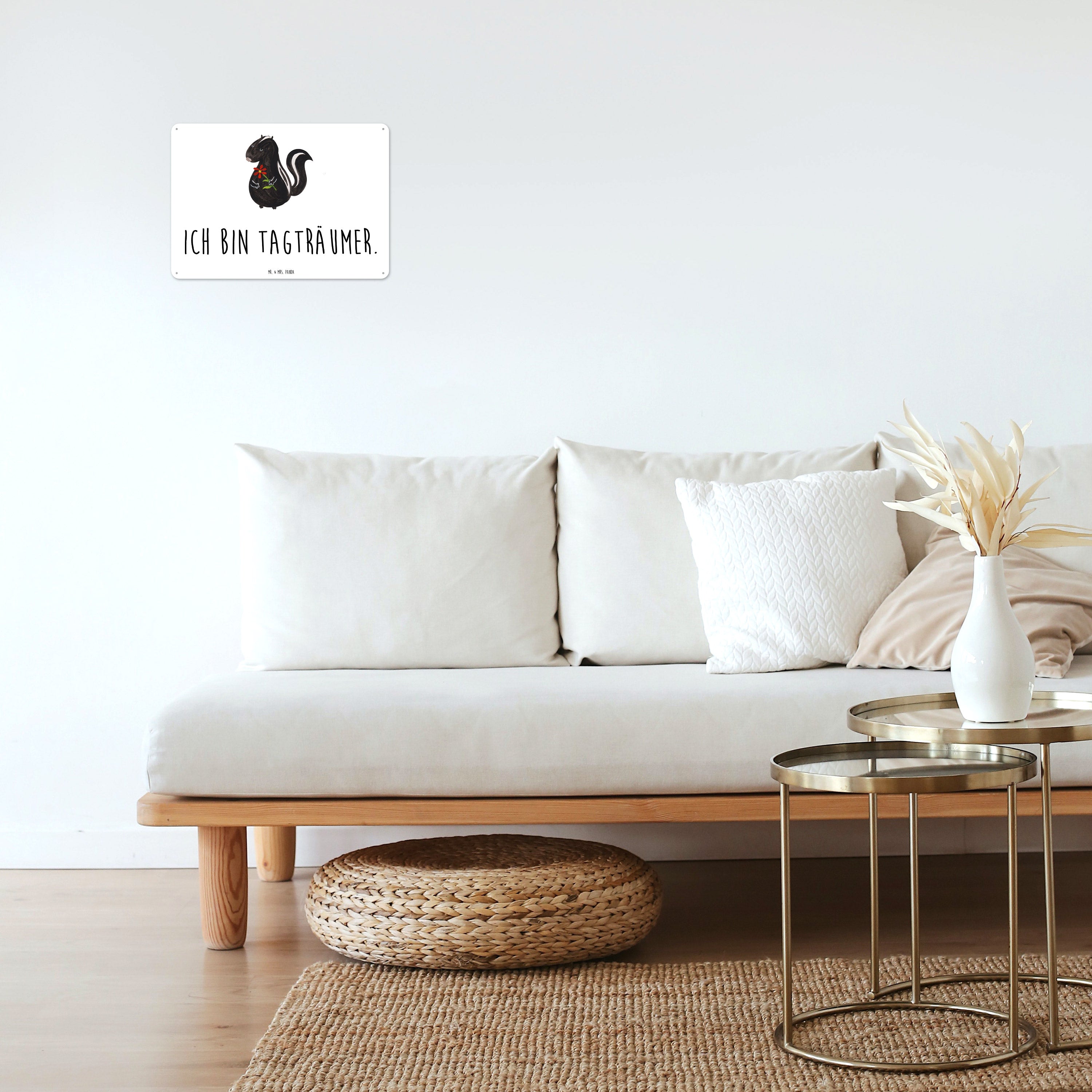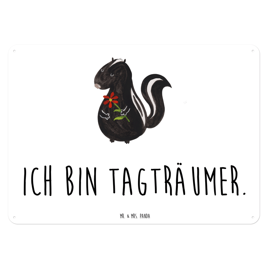 Blechschild Stinktier Blume Blechschild, Metallschild, Geschenk Schild, Schild, Magnet-Metall-Schild, Deko Schild, Wandschild, Wand-Dekoration, Türschild, Stinktier, Skunk, Wildtier, Raubtier, Stinker, Stinki, Tagträumer, verträumt, Dreams, Träume