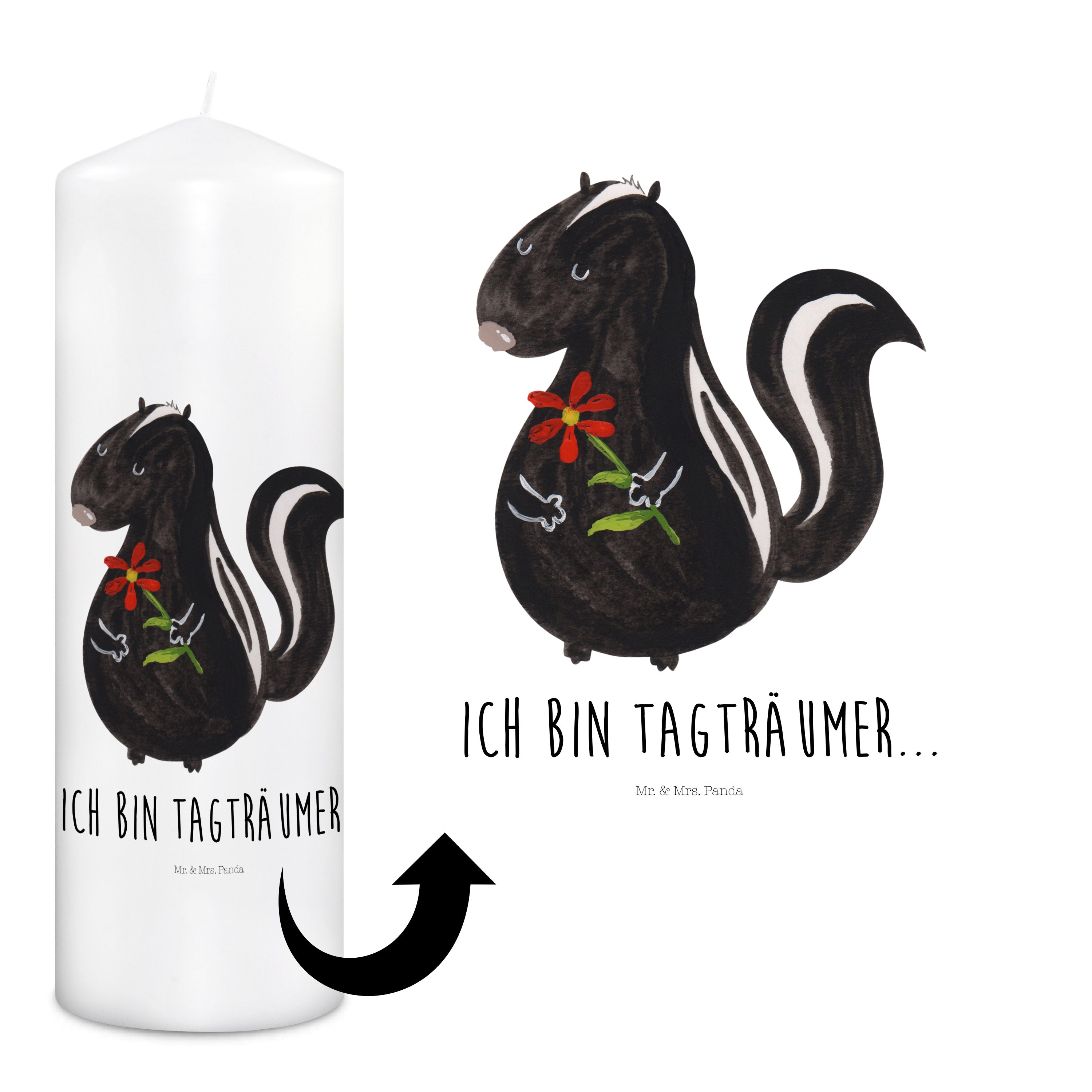 Kerze Stinktier Blume - 15 x 7 cm - mit Spruch