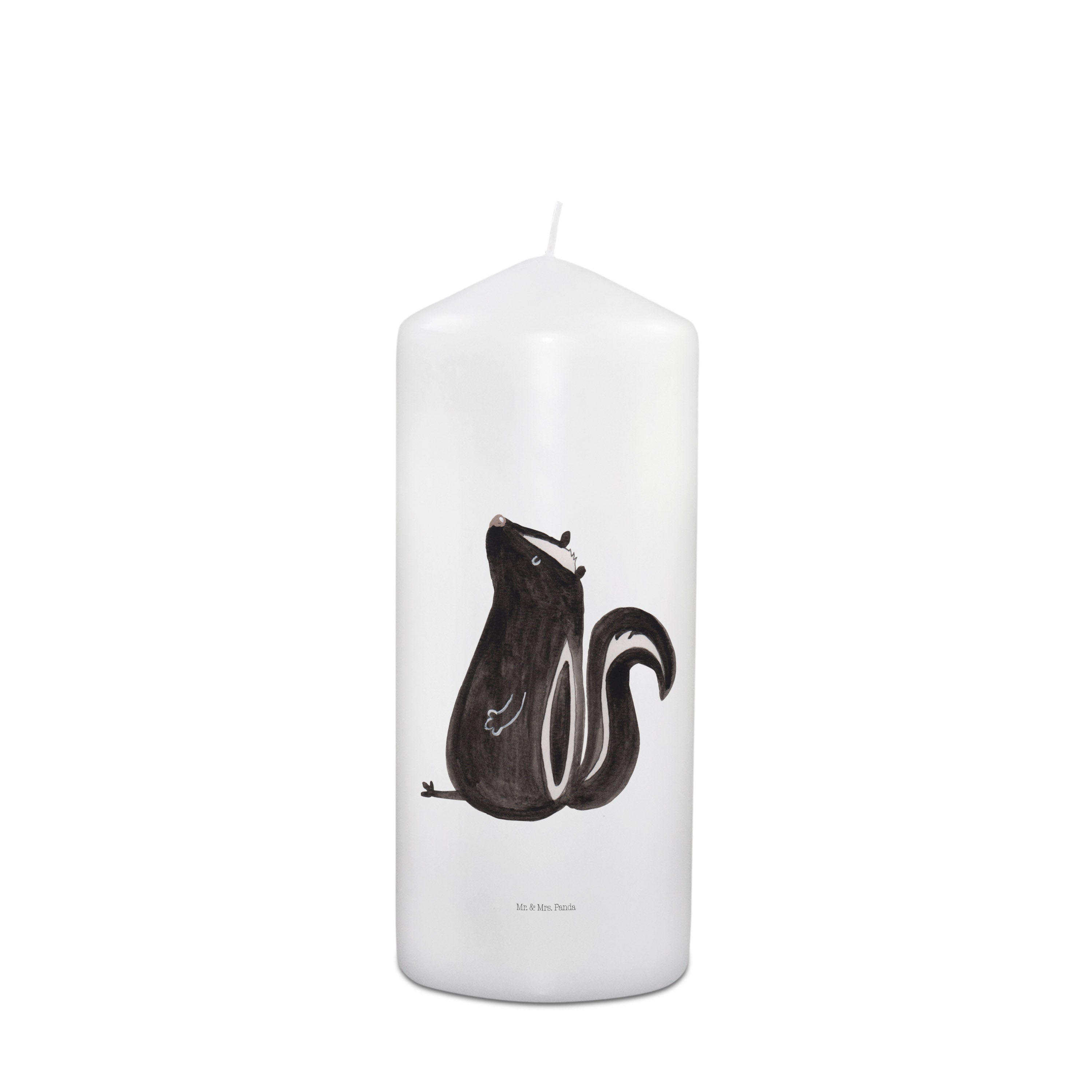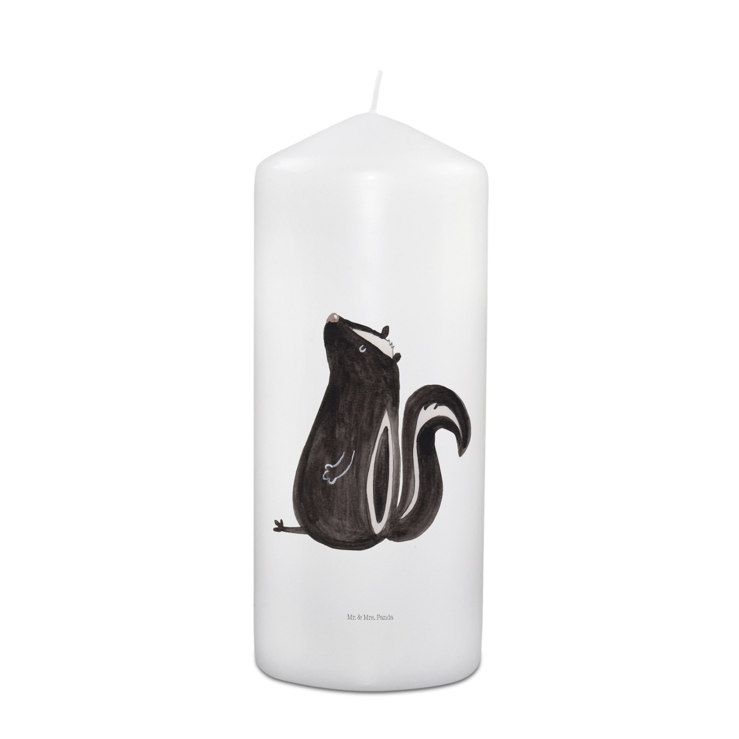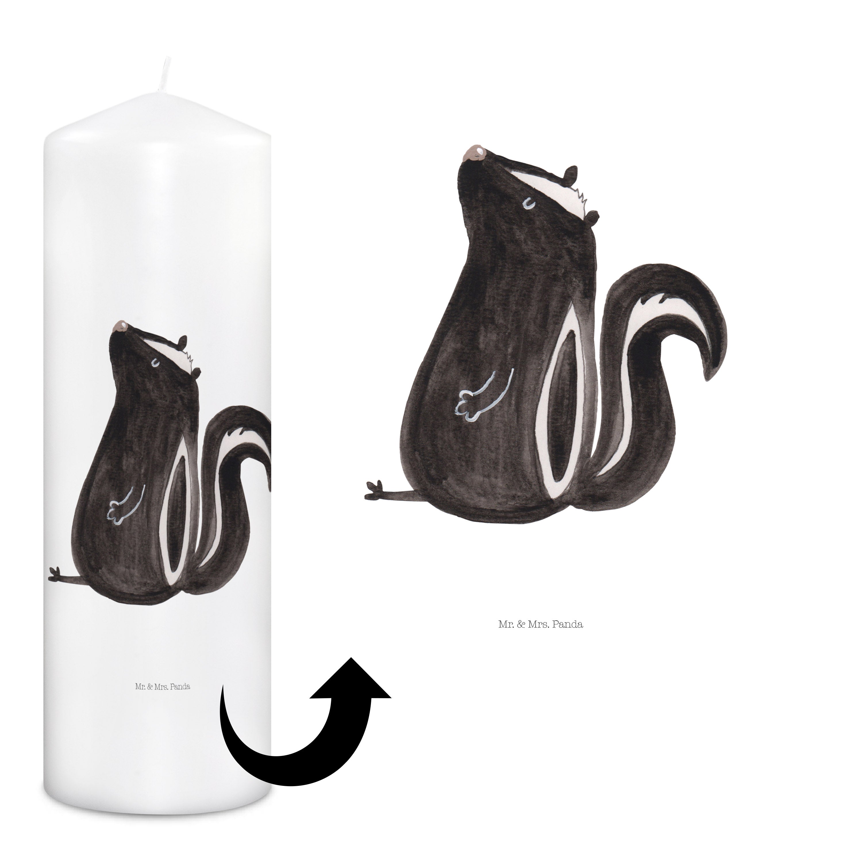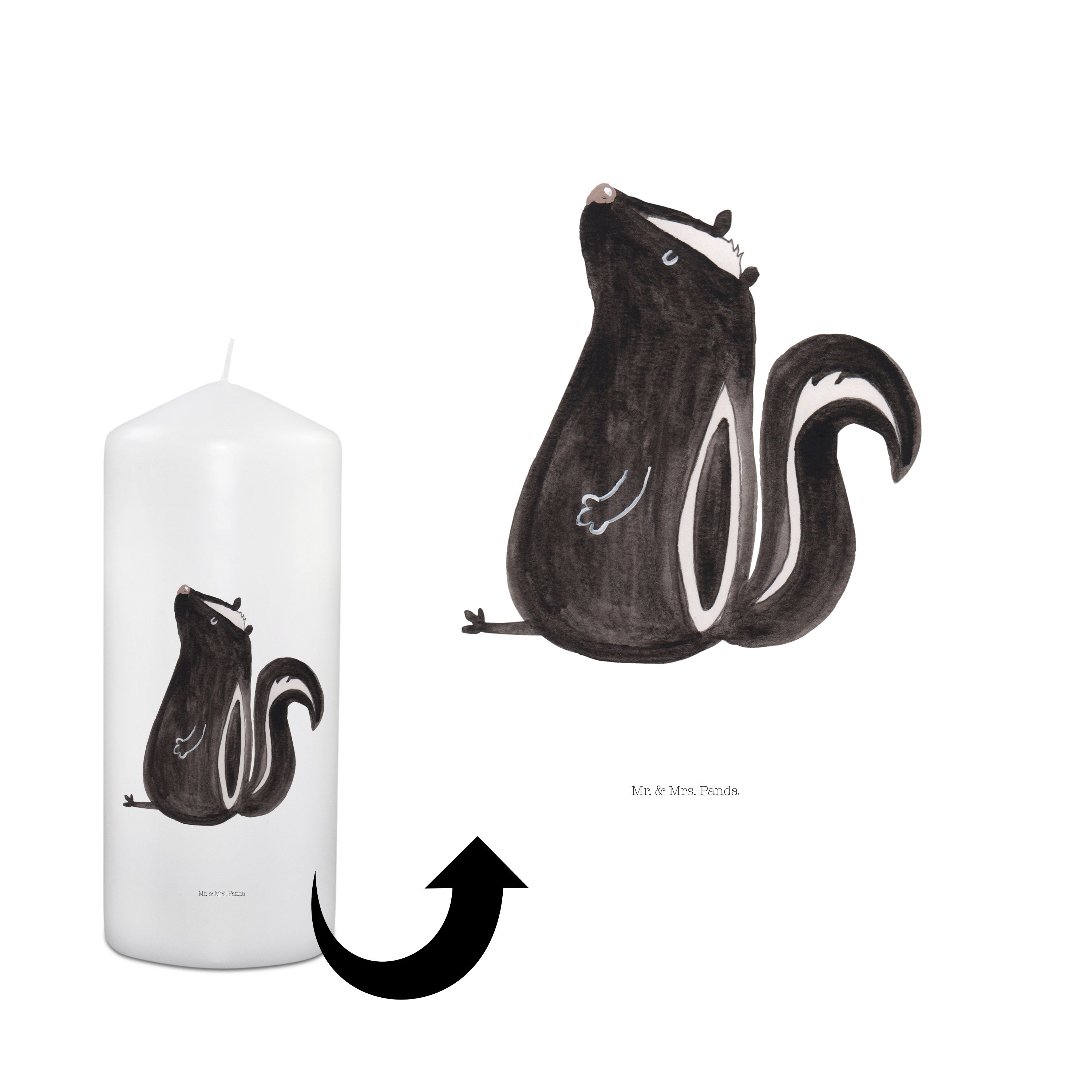 Kerze Stinktier sitzend - 15 x 7 cm - mit Spruch
