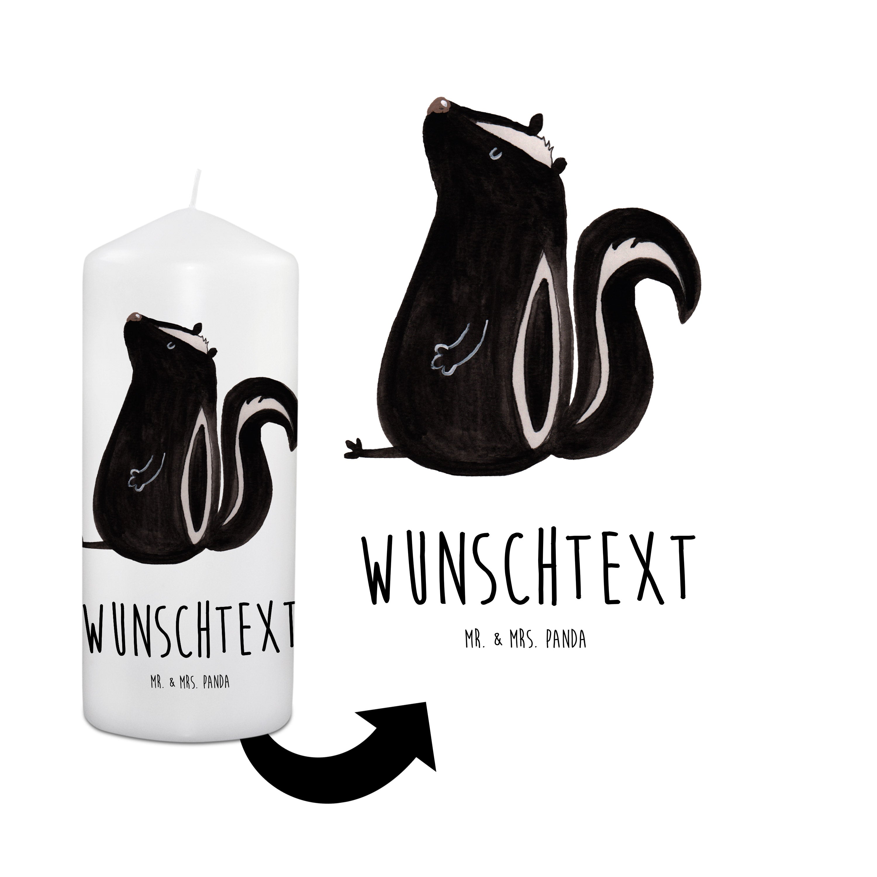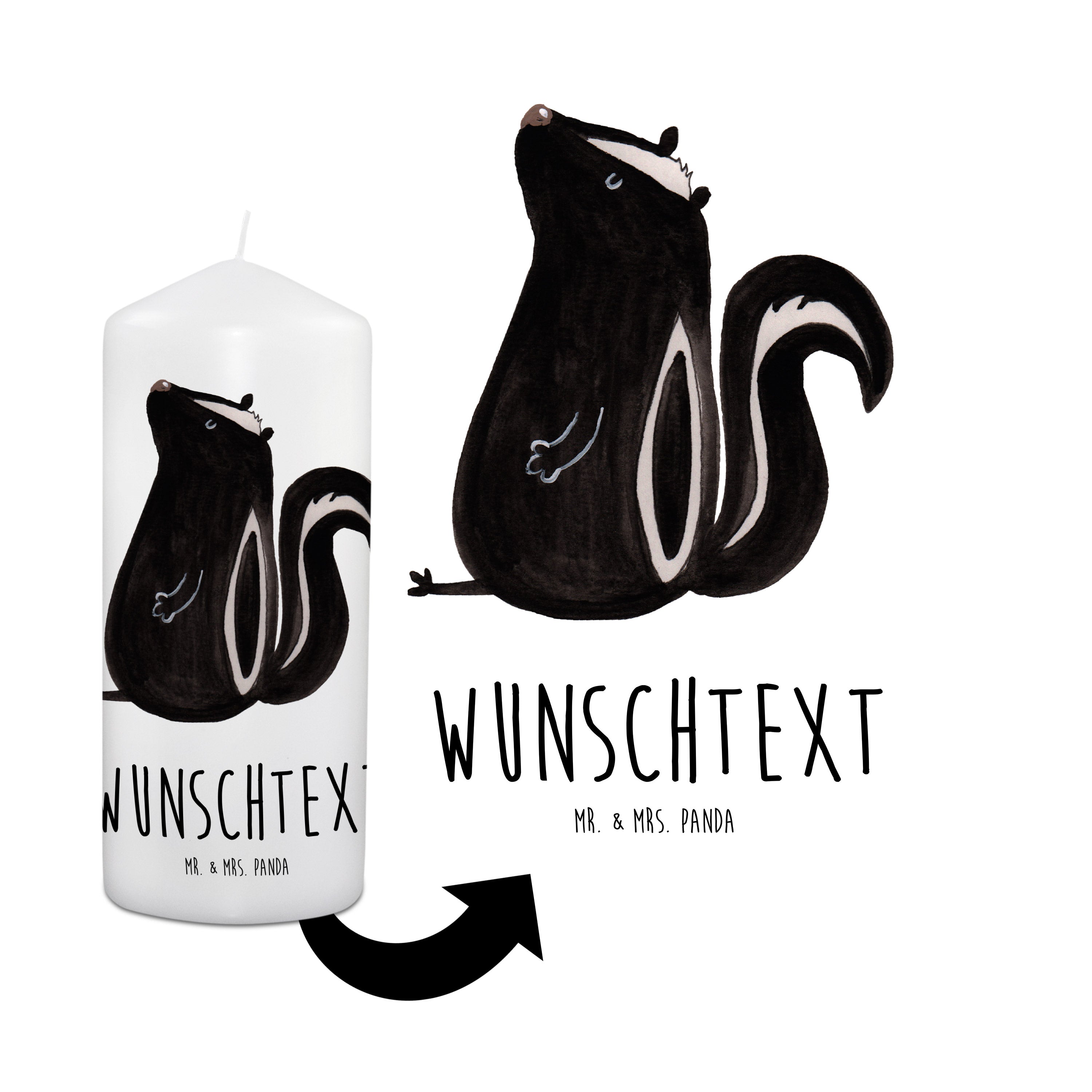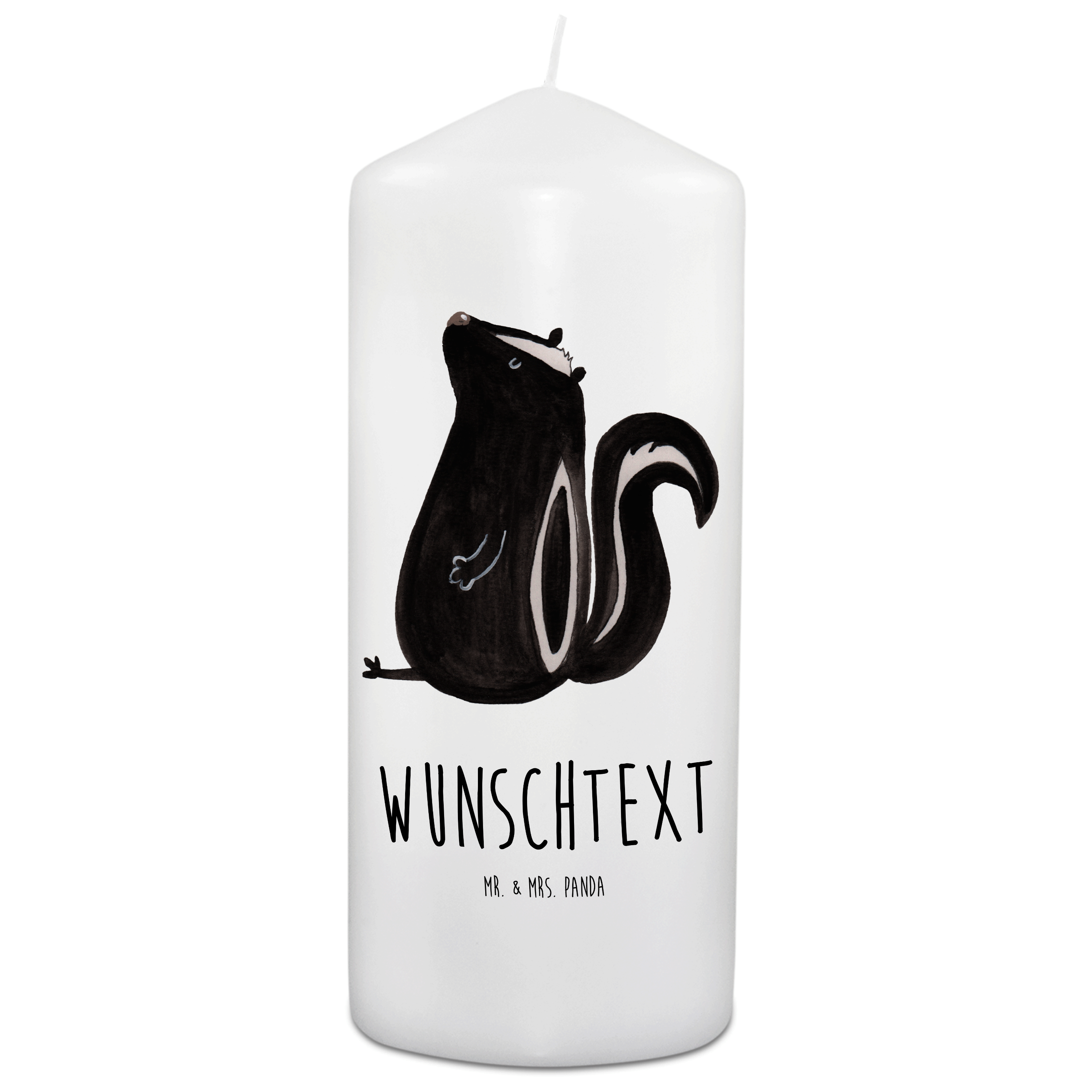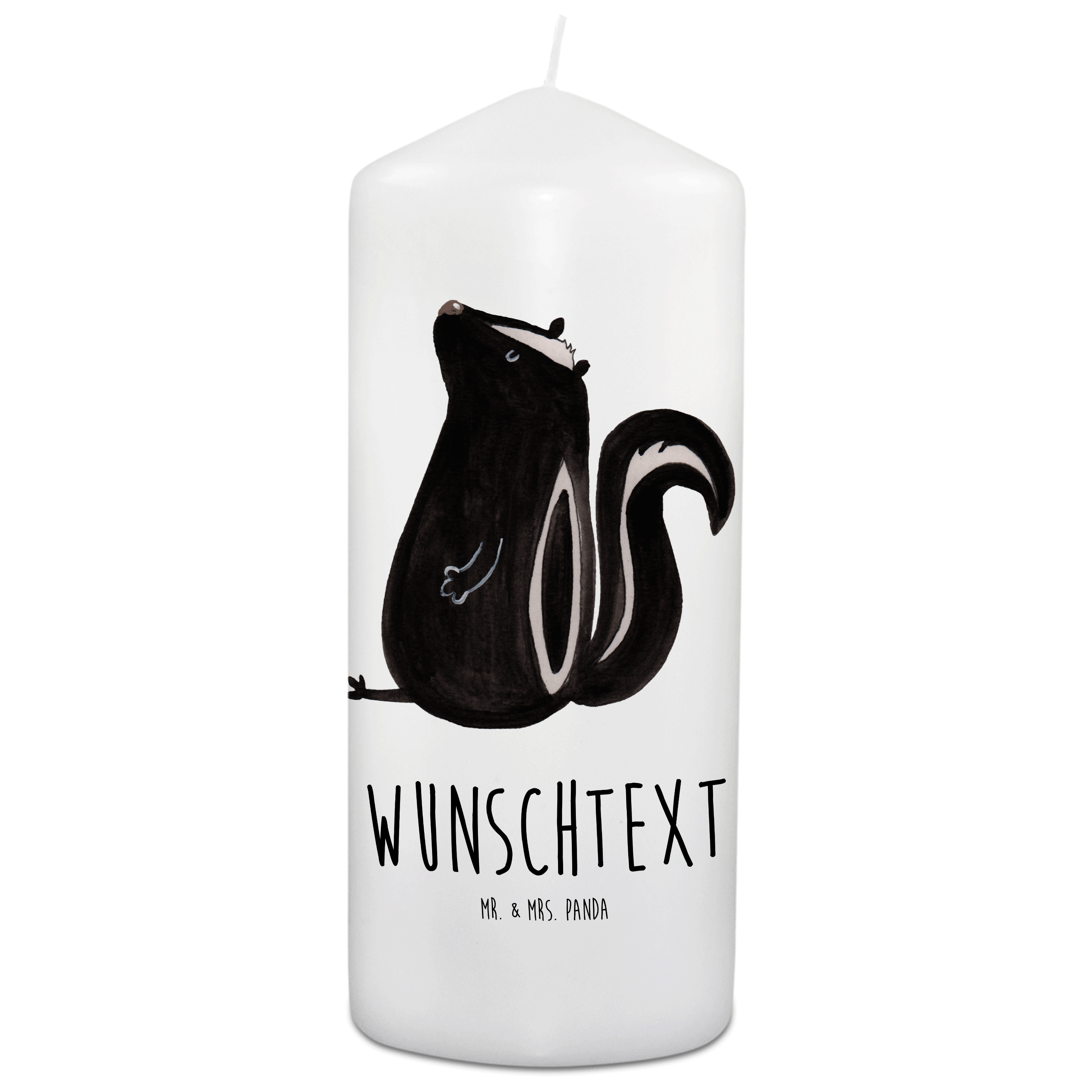 Personalisierte Kerze Stinktier sitzend - 15 x 7 cm