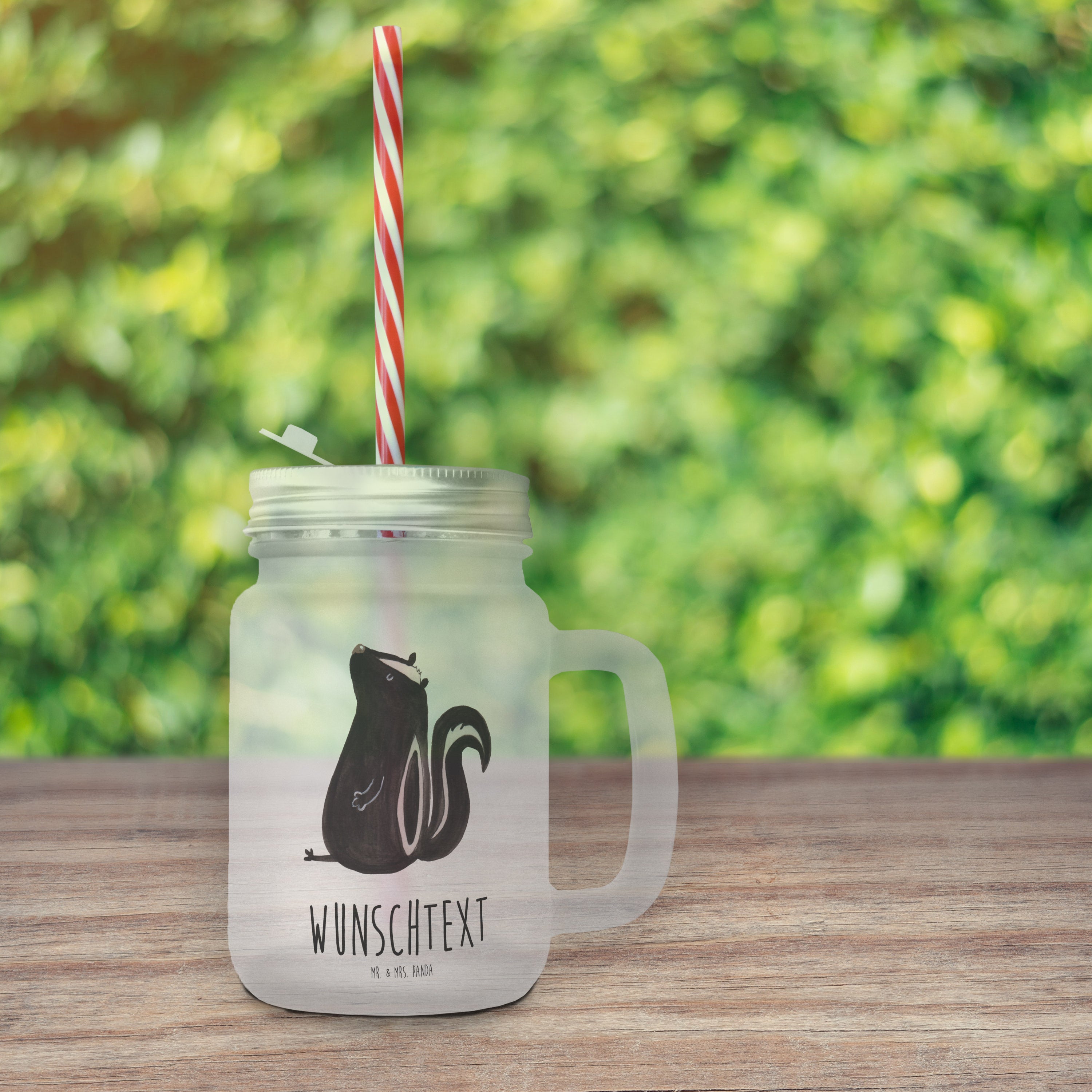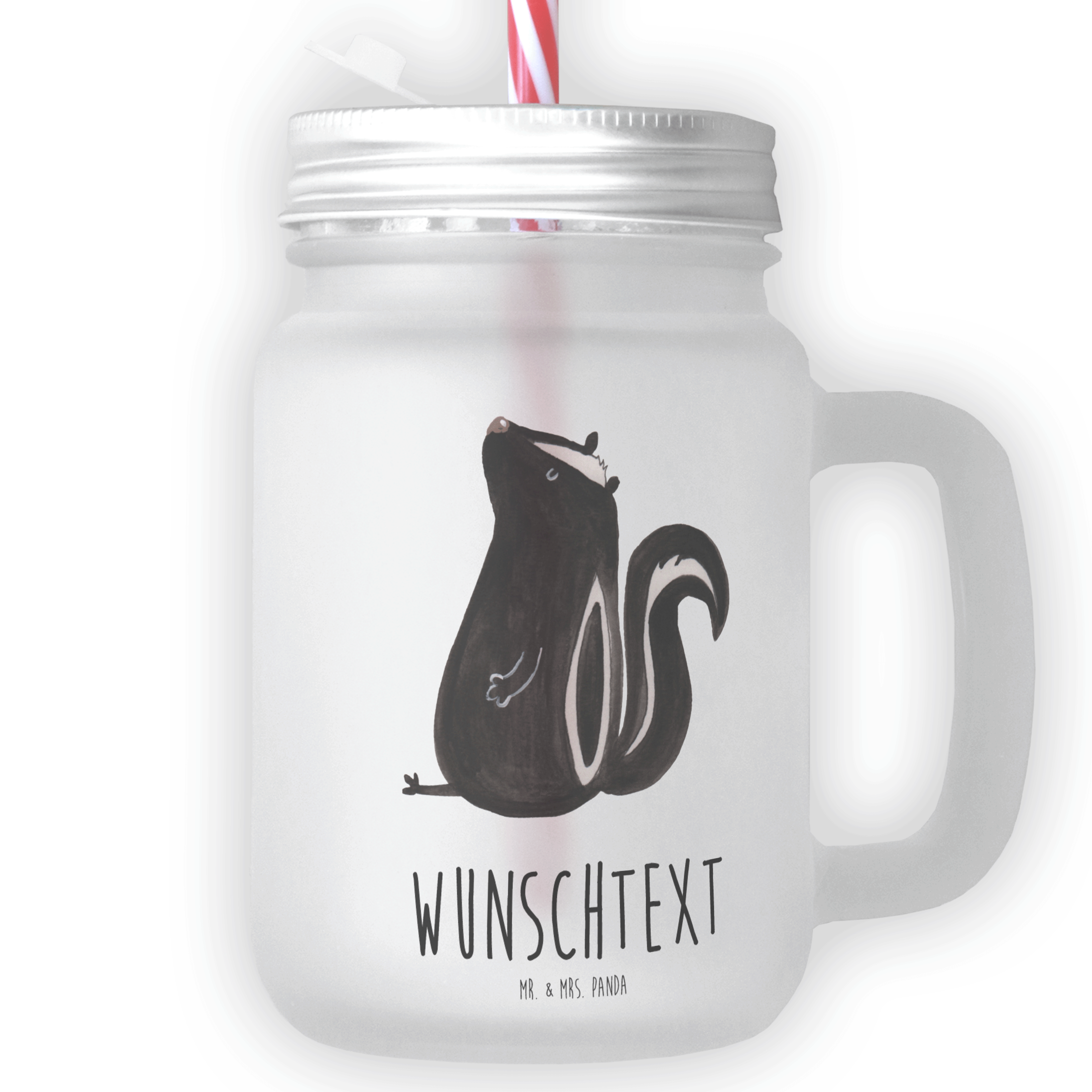 Personalisiertes Trinkglas Mason Jar Stinktier sitzend