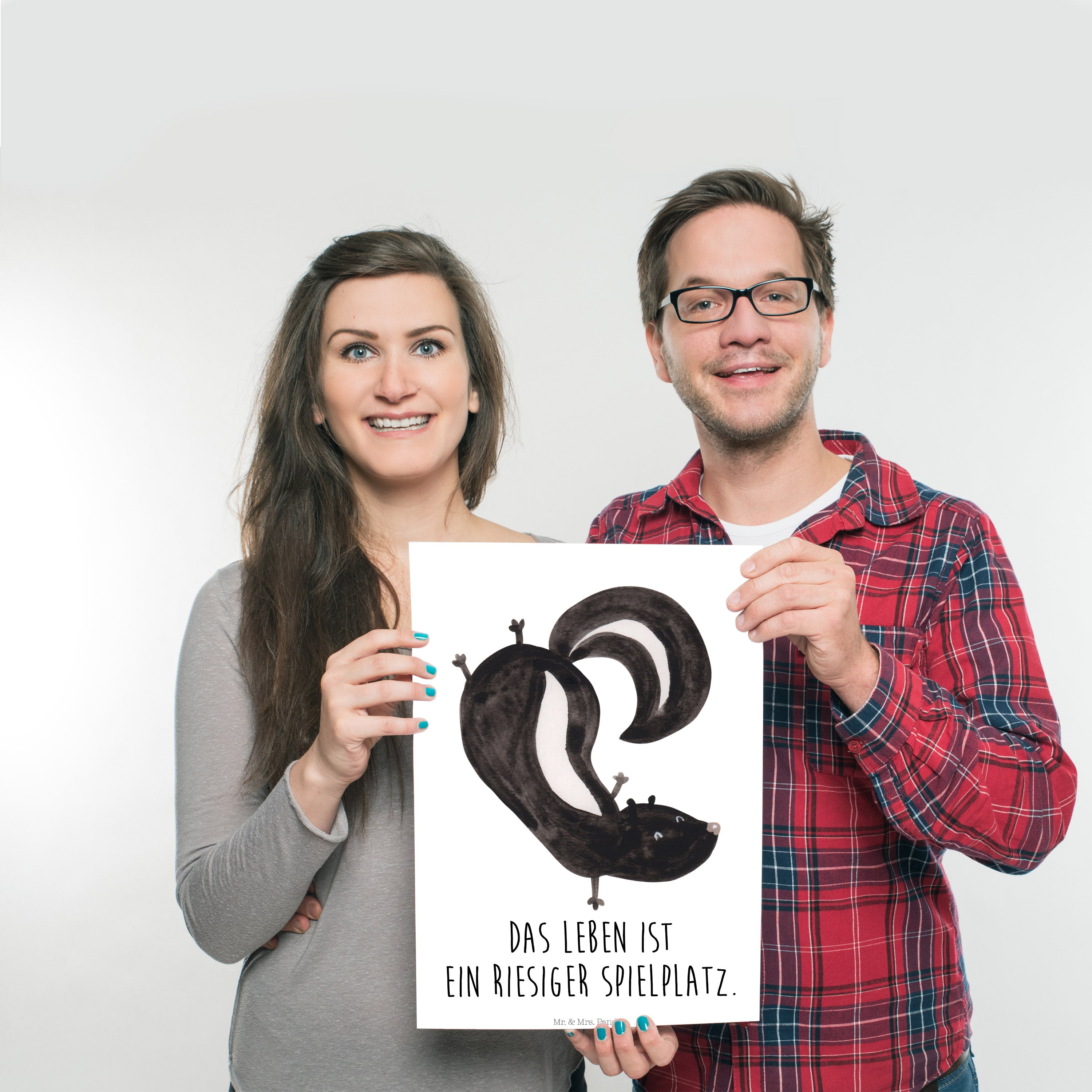 Du kannst einfach nicht genug bekommen von Stinktieren? Dann ist das Stinktier Handstand Motiv von Mr. & Mrs. Panda genau das Richtige für Dich. Das süße Stinktier zeigt Dir, wie man auf sportliche Art einen Handstand hinlegt. Mit seinen liebenswerten Augen und dem typischen Stinktier-Look schaut es Dich dabei an und vermittelt Dir das richtige Sommerfeeling. Das Motiv wurde für Dich in liebevoller Handarbeit mit Aquarellfarben gemalt und zieht sicherlich viele Blicke auf sich.
