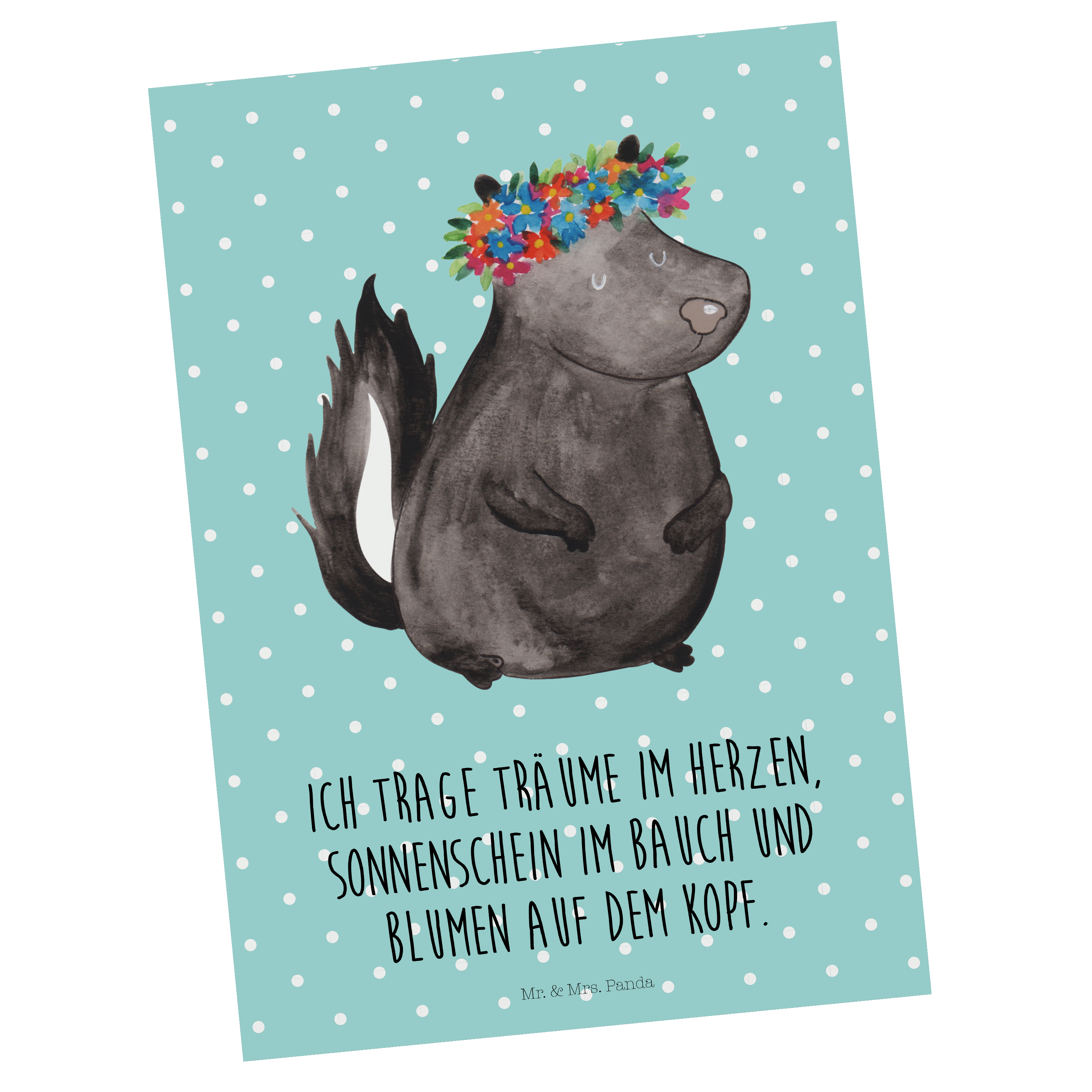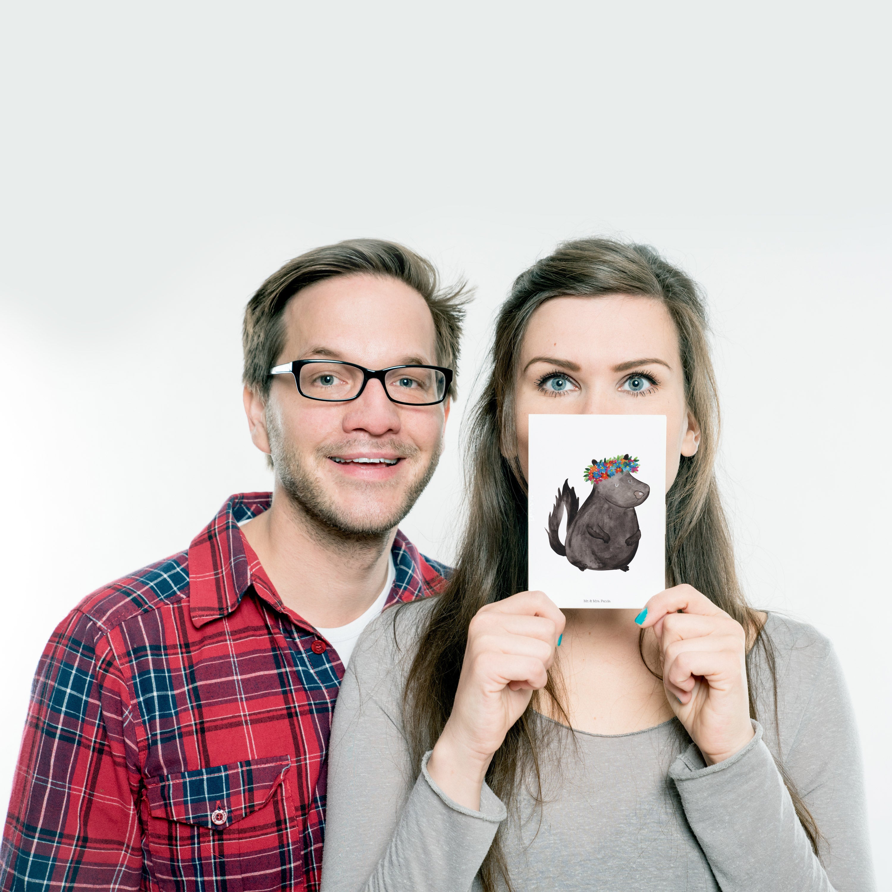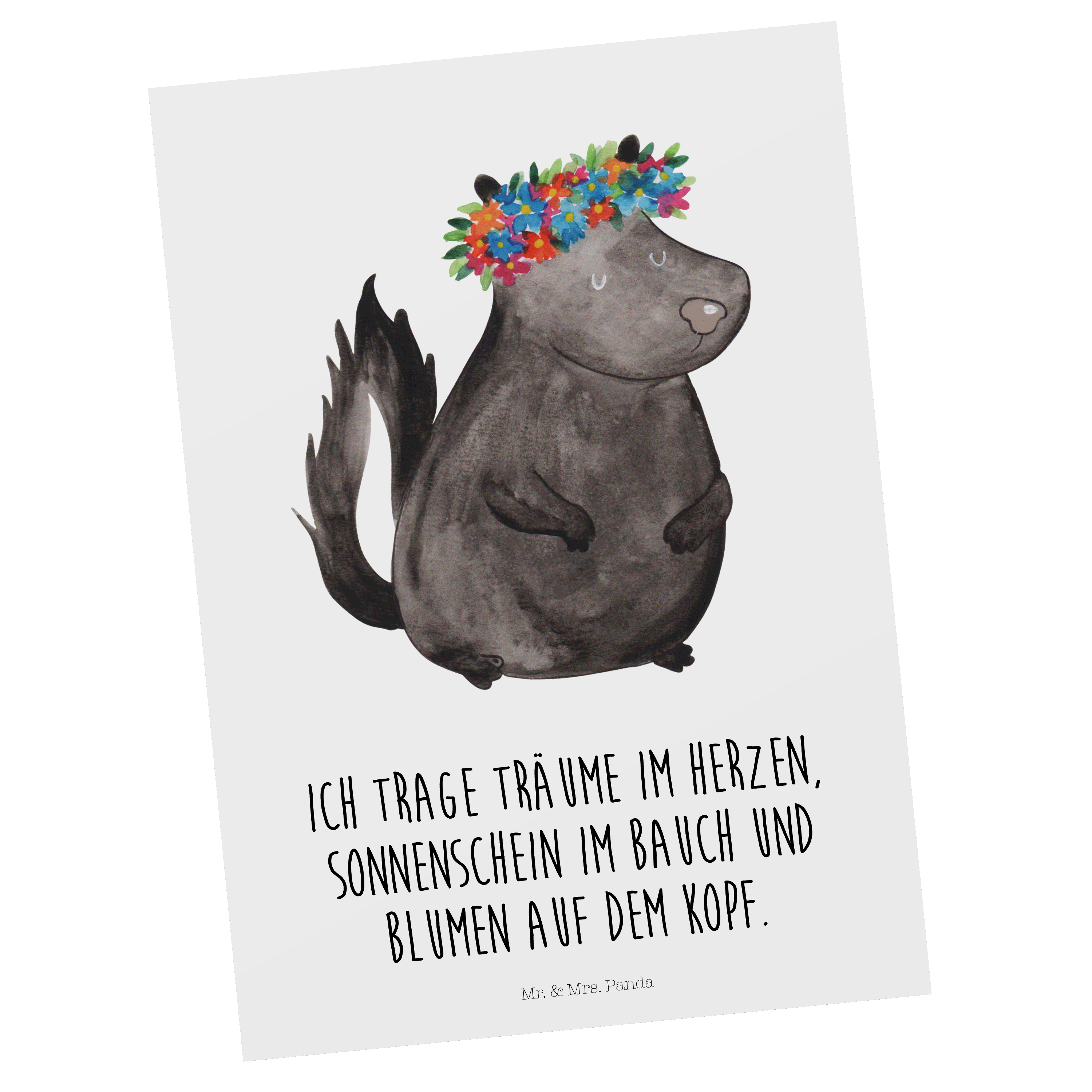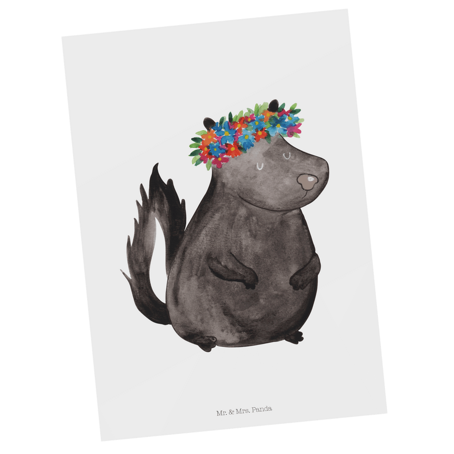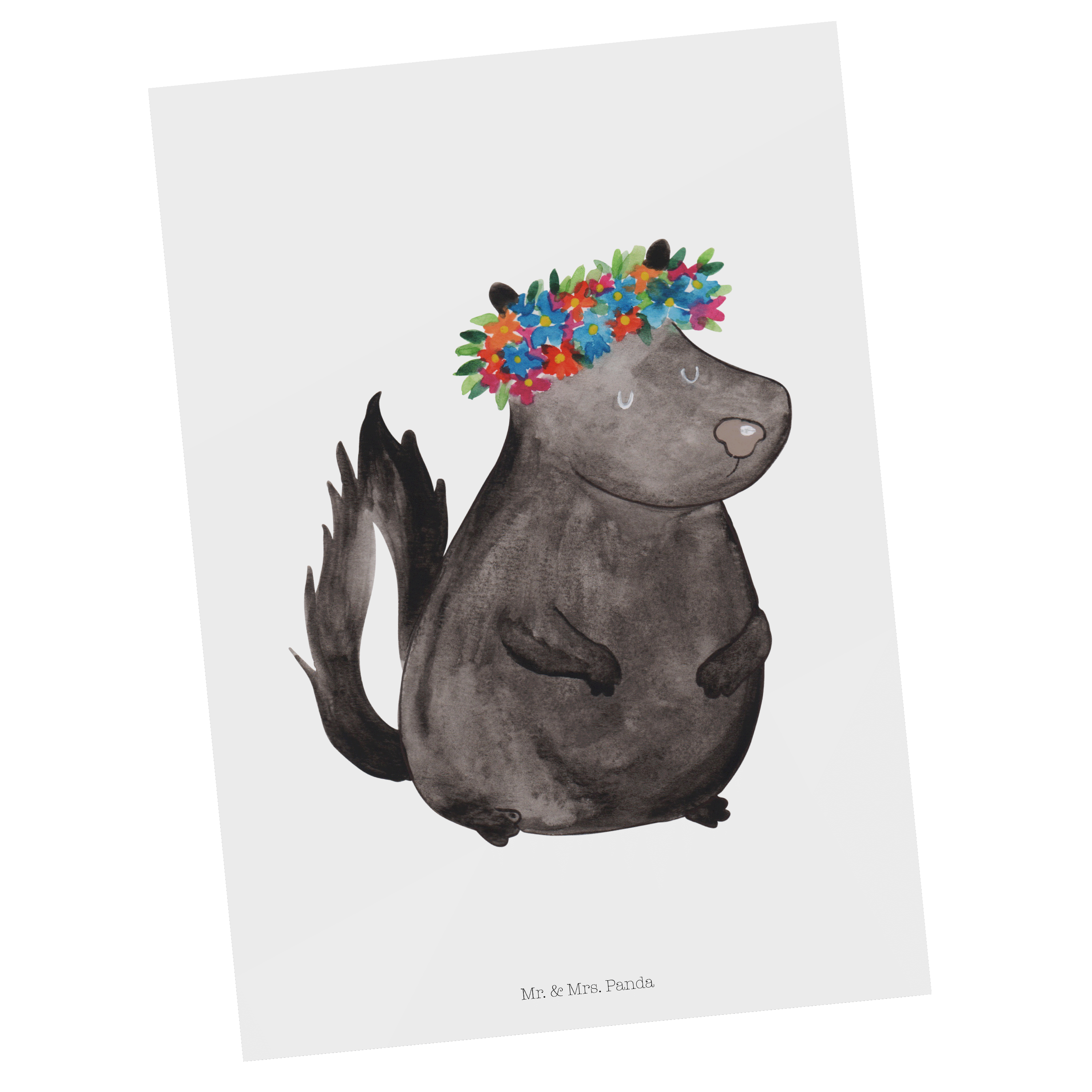 Postkarte Stinktier Blumenmaedchen - ohne Spruch - Weiß