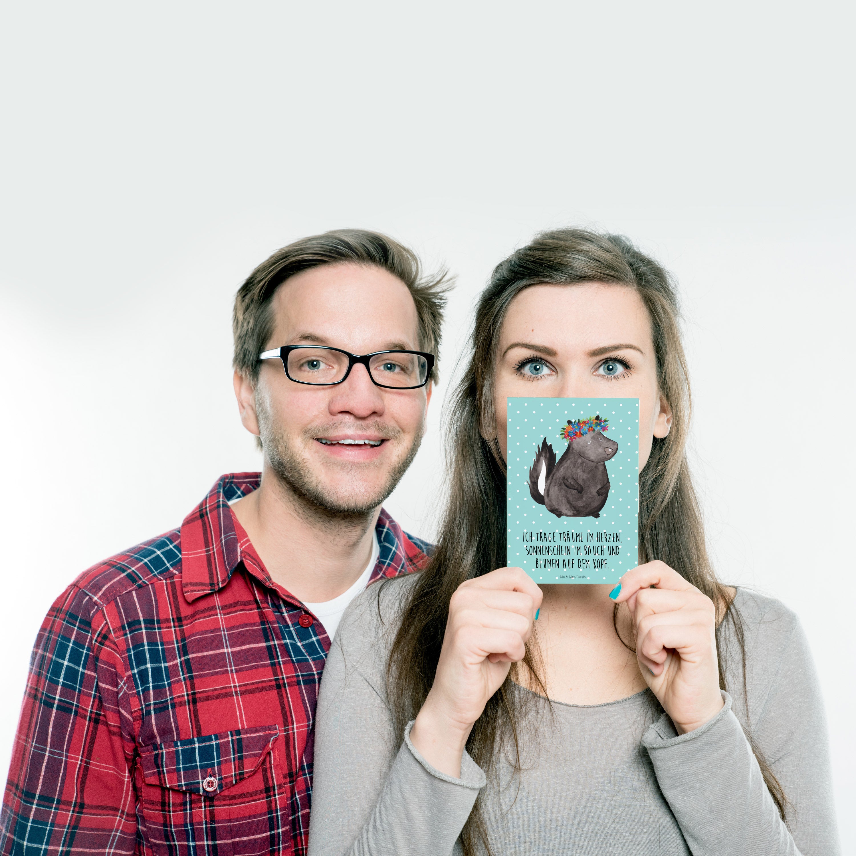 Es gibt nichts Schöneres, als die Natur in ihrer puren Form zu erleben. Das Stinktier Blumenmädchen-Motiv von Mr. & Mrs. Panda präsentiert die wundervolle Natur auf eine besondere und einzigartige Art und Weise. Das süße Stinktier mit einem bunten Blumenkranz auf dem Kopf erfüllt Dich mit Freude und ihm zu begegnen, macht Deinen Tag einzigartig. Es ist nicht nur ein Kunstwerk, sondern auch ein Symbol der Schönheit, die in der Natur zu finden ist.