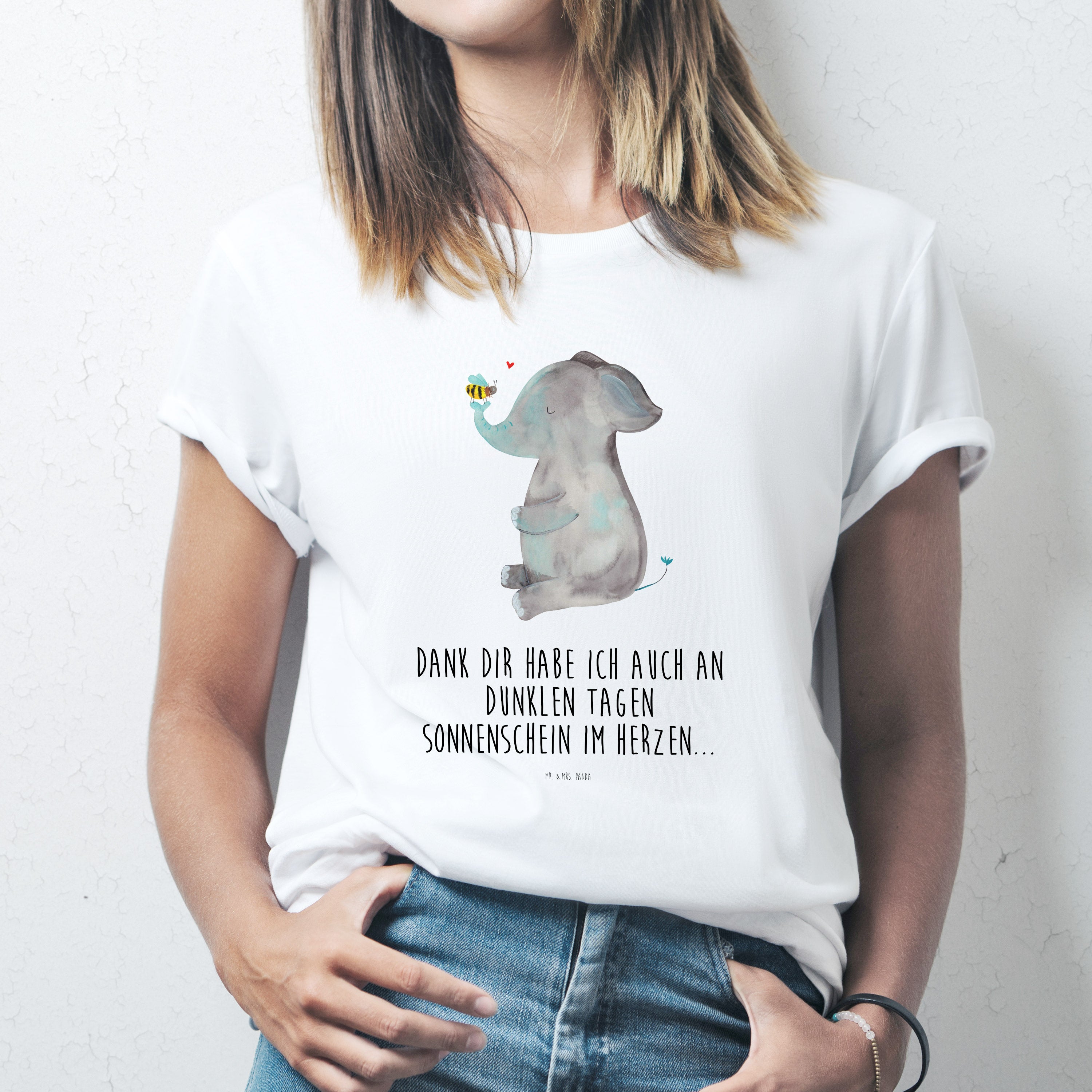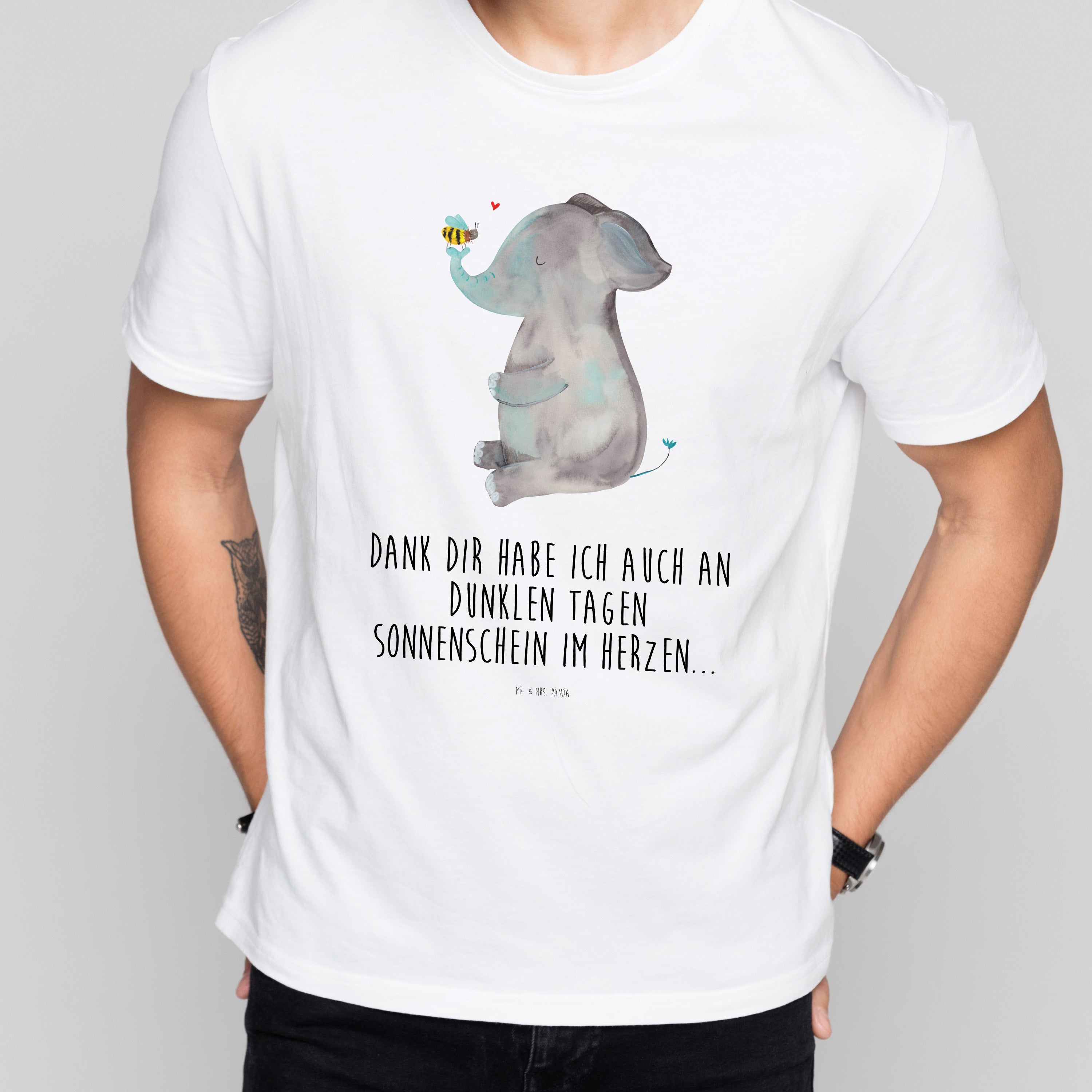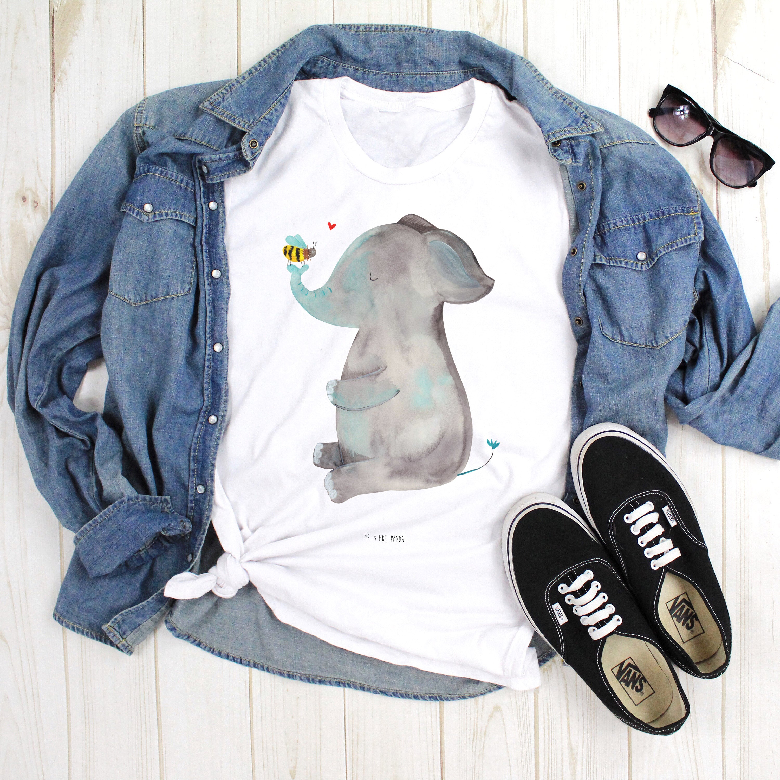 Größe S T-Shirt Elefant & Biene - mit Spruch - Weiß