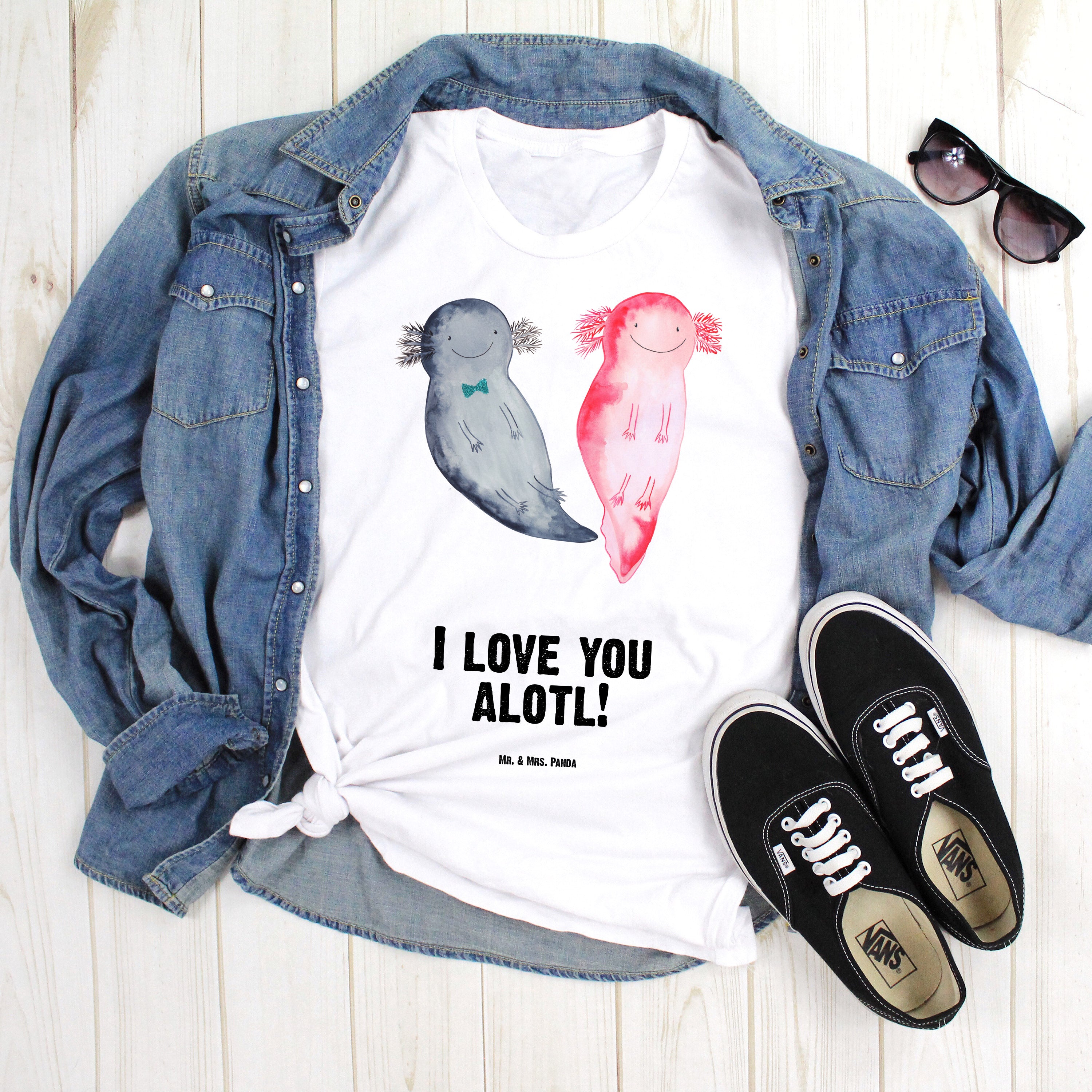 Größe L T-Shirt Axolotl Liebe - Weiß