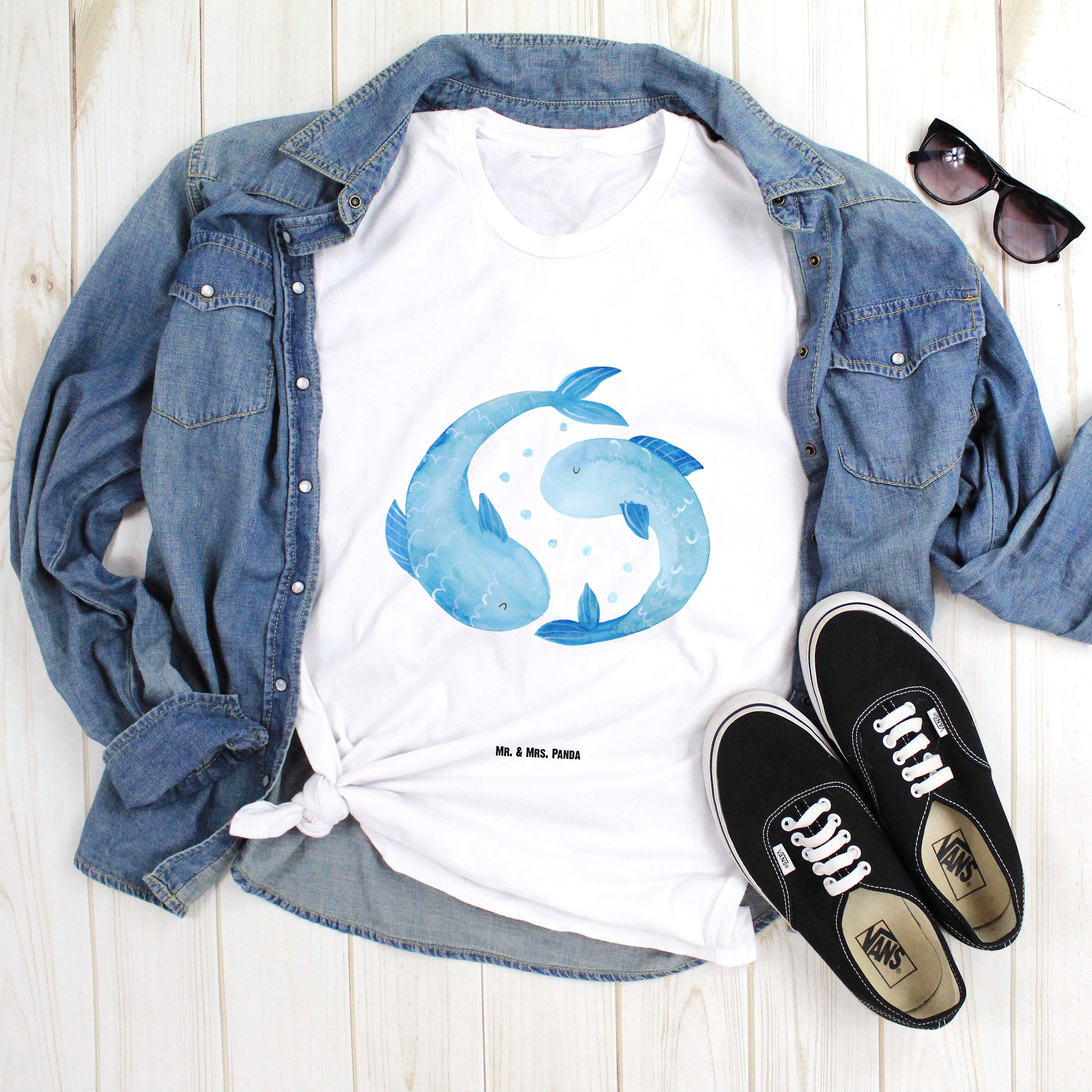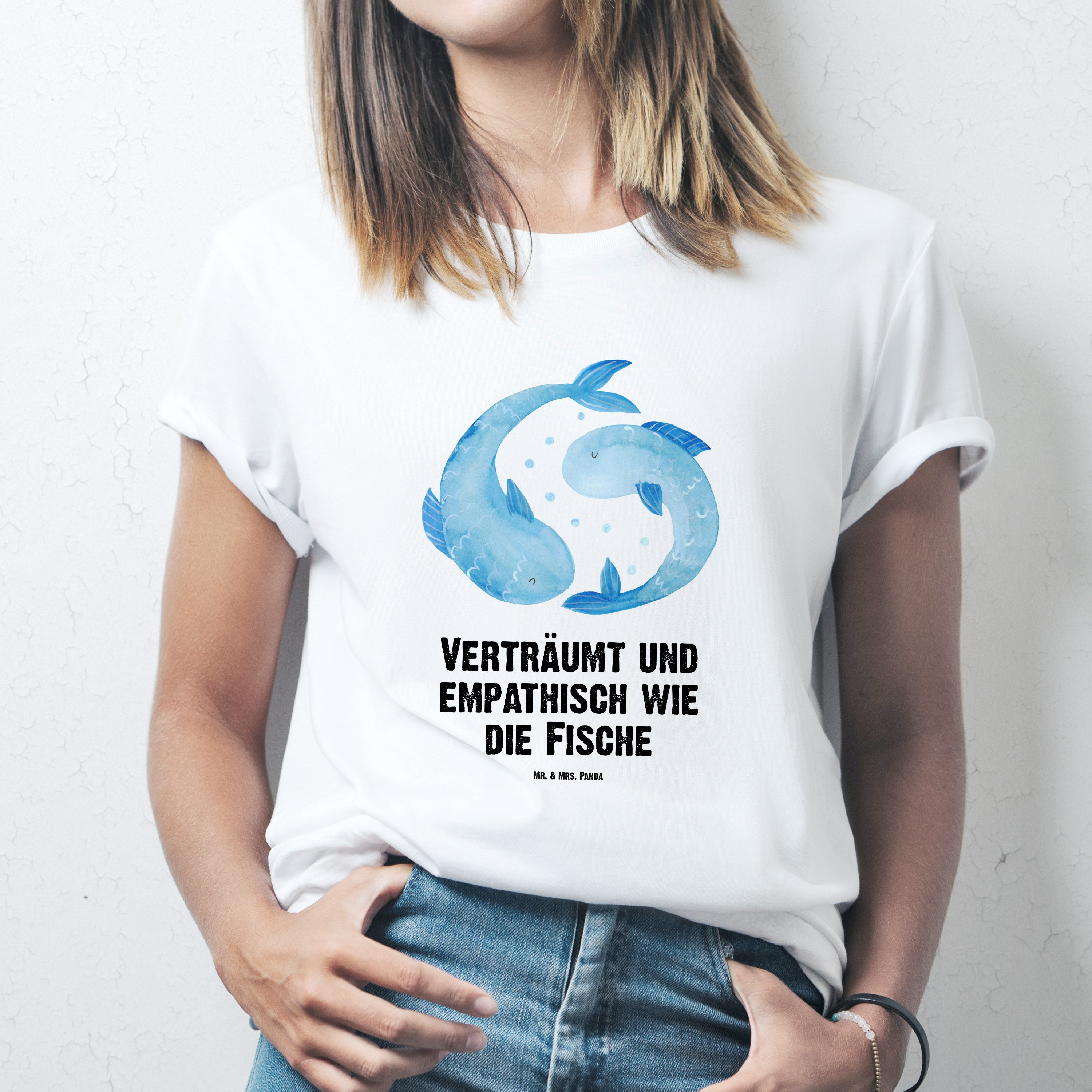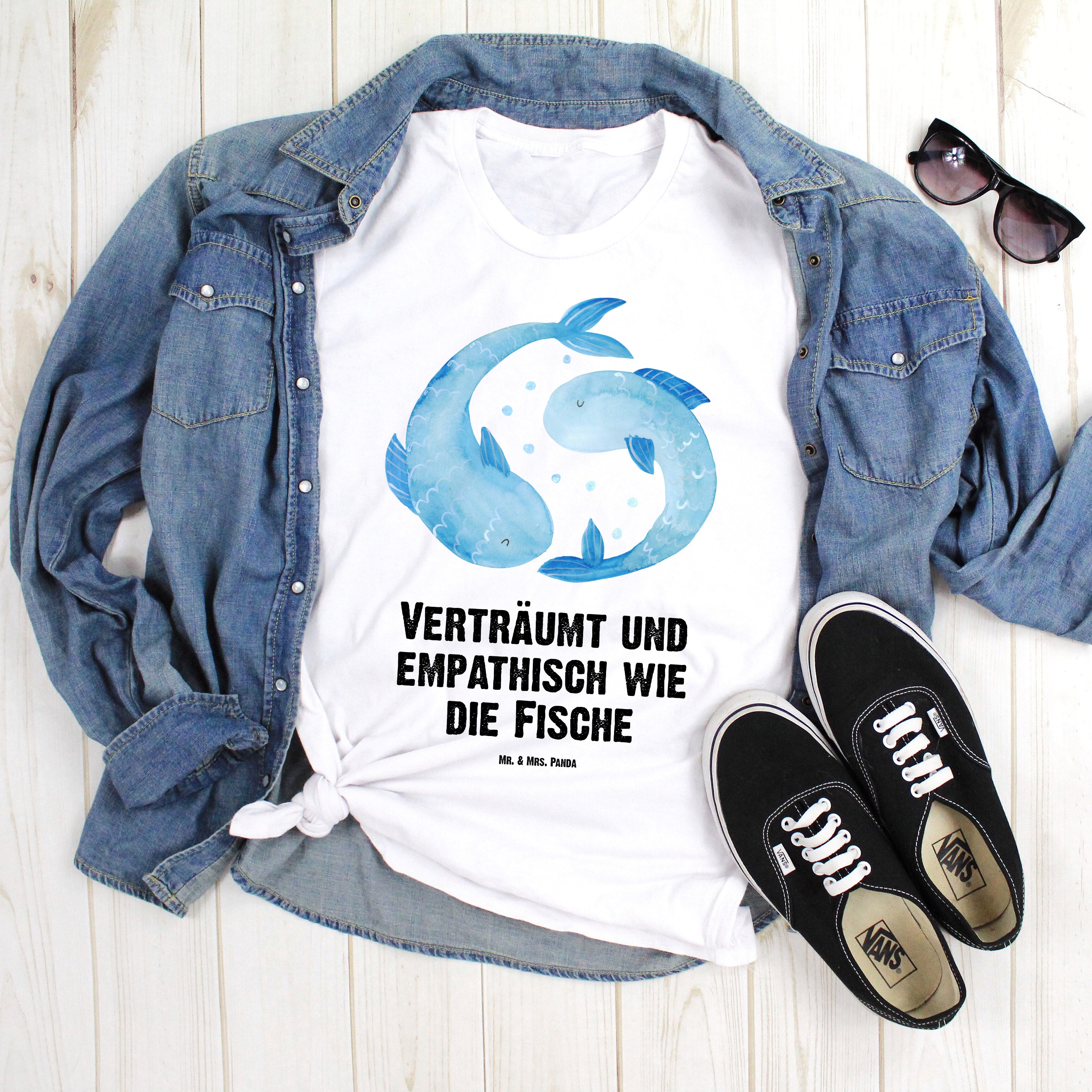 Größe XL T-Shirt Sternzeichen Fische - mit Spruch - Weiß