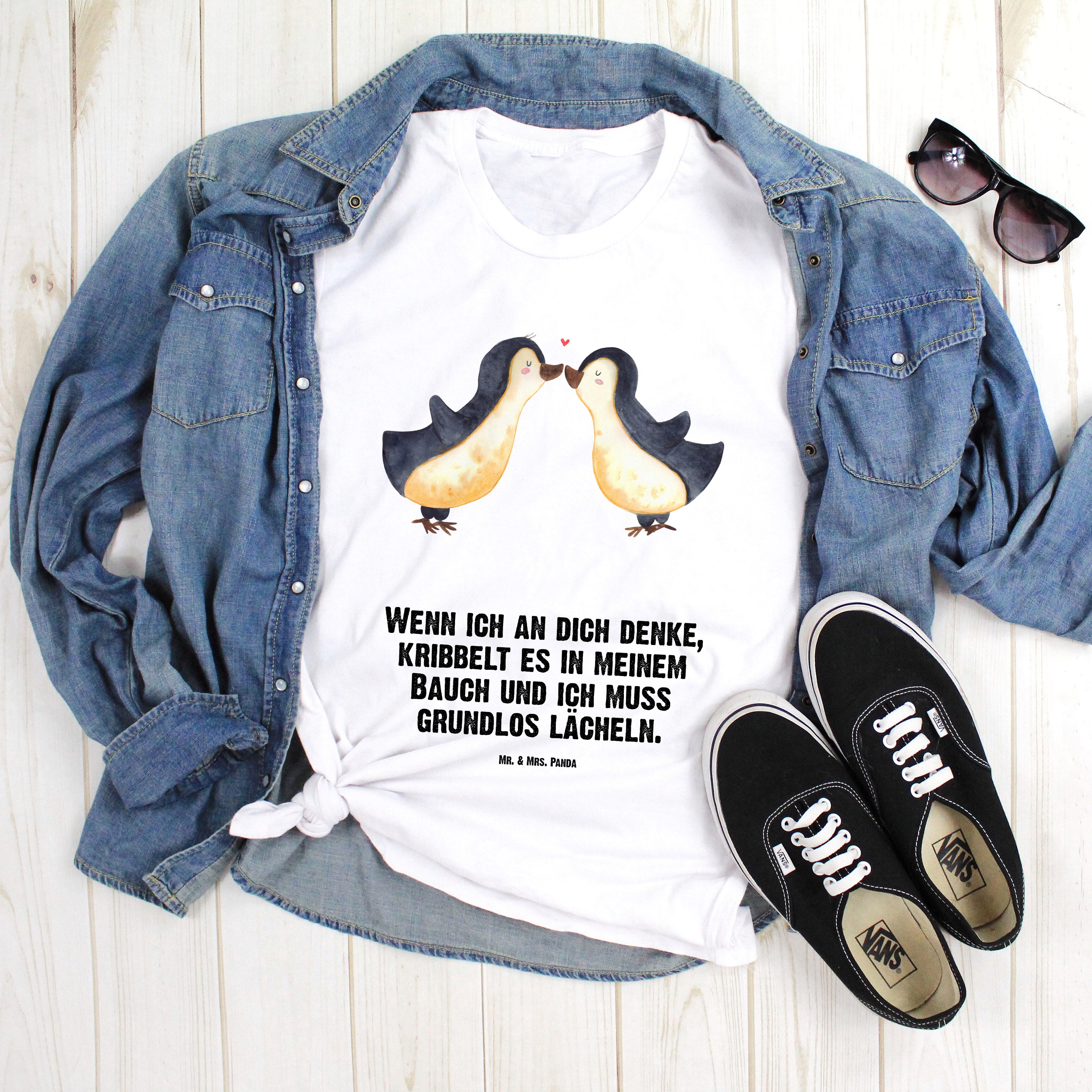 Größe L T-Shirt Pinguine Kuss - Weiß