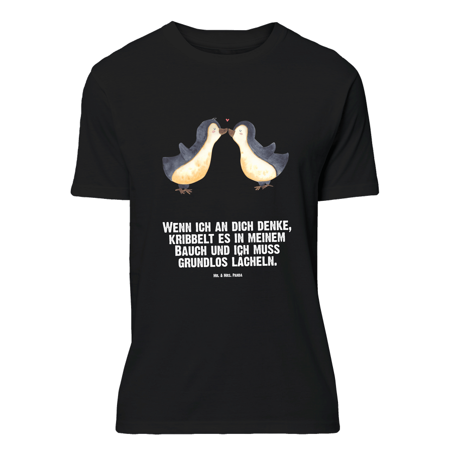 Größe L T-Shirt Pinguine Kuss - Schwarz