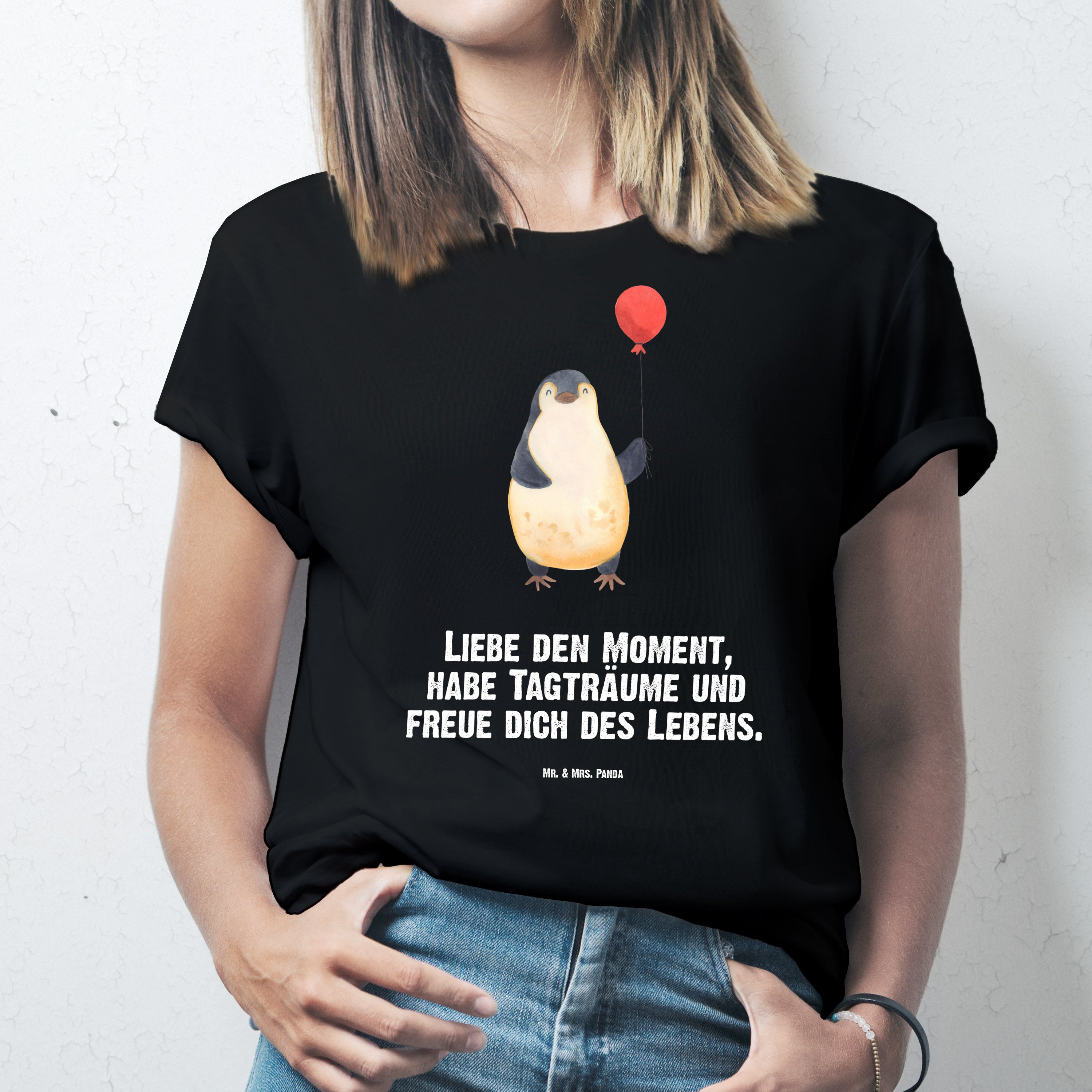 Größe M T-Shirt Pinguin Luftballon - mit Spruch - Schwarz
