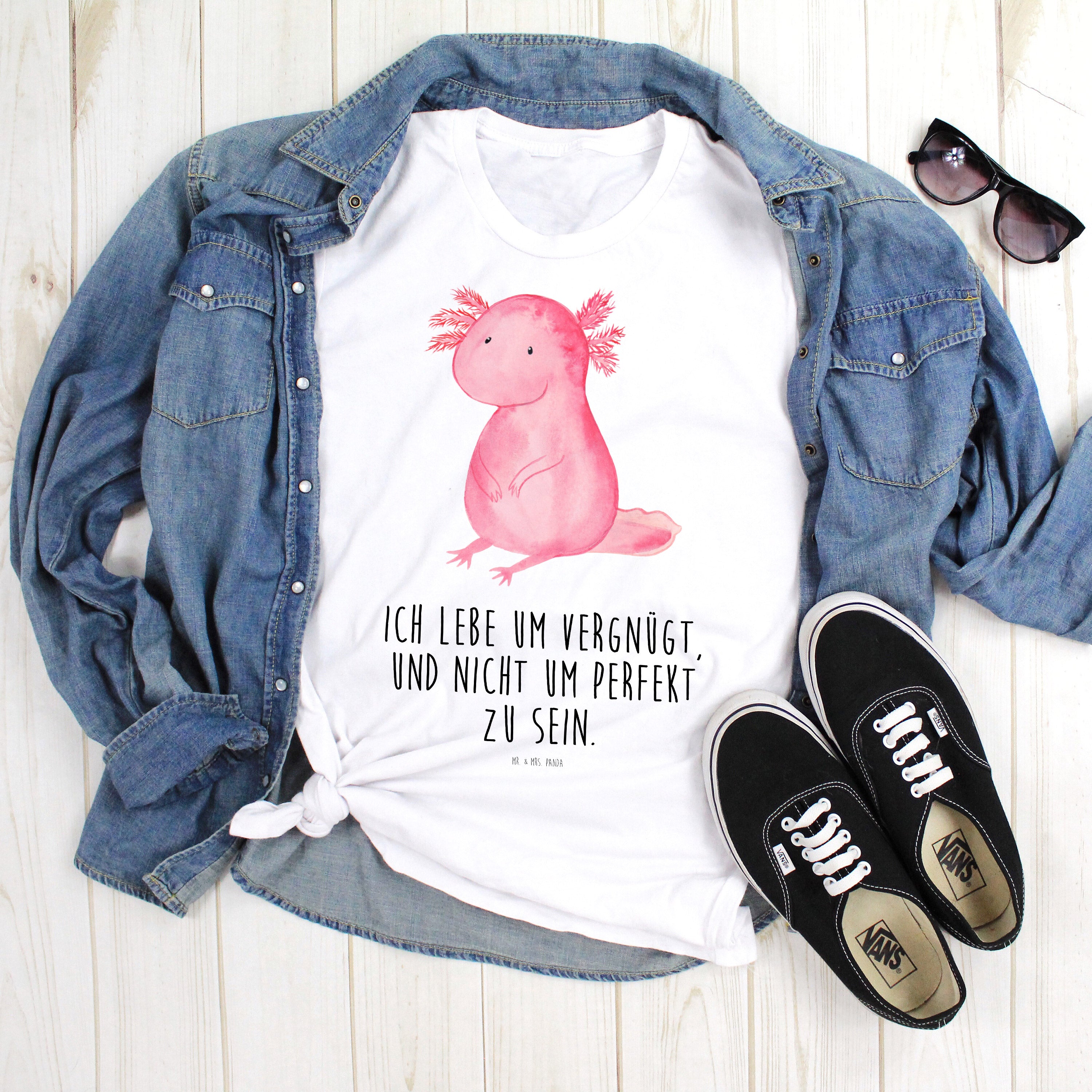 Jeder der sich einen Axolotl kaufen möchte, kann ihn sich bei uns lieber als wunderschönes Axolotl Produkt nach Hause holen, denn wir haben die schönsten Axolotl Produkte, Geschenke und Motive. Unsere Axolotl Motive werden mit einzigartigen Sprüchen in Szene gesetzt. Natürlich sind alle Axolotl Bilder von Mrs. Panda selbst gezeichnet und mit viel Liebe gefertigt. Finde bei uns die schönsten Geschenke mit Tiermotiven aus der Unterwasserwelt.