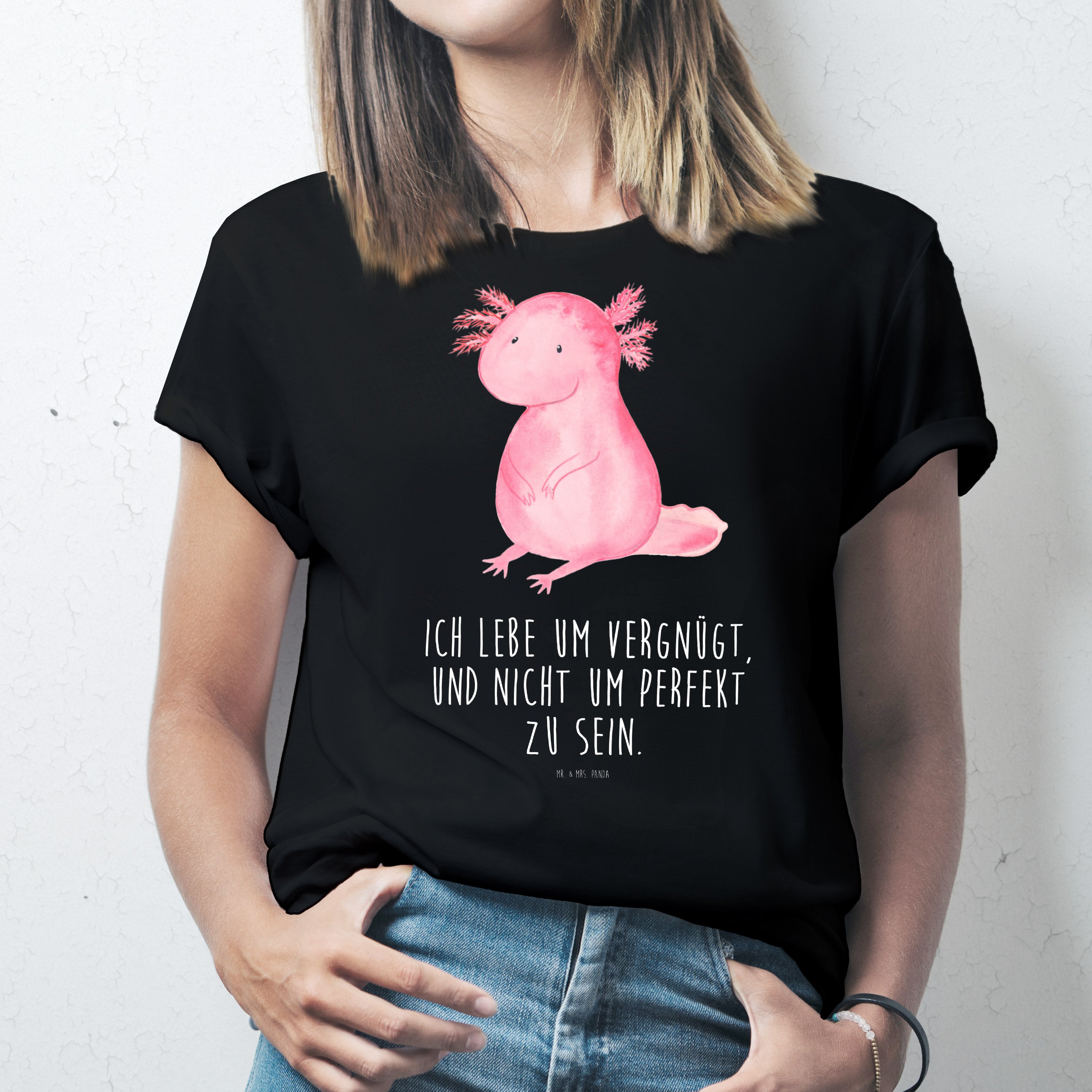 Größe S T-Shirt Axolotl - mit Spruch - Schwarz