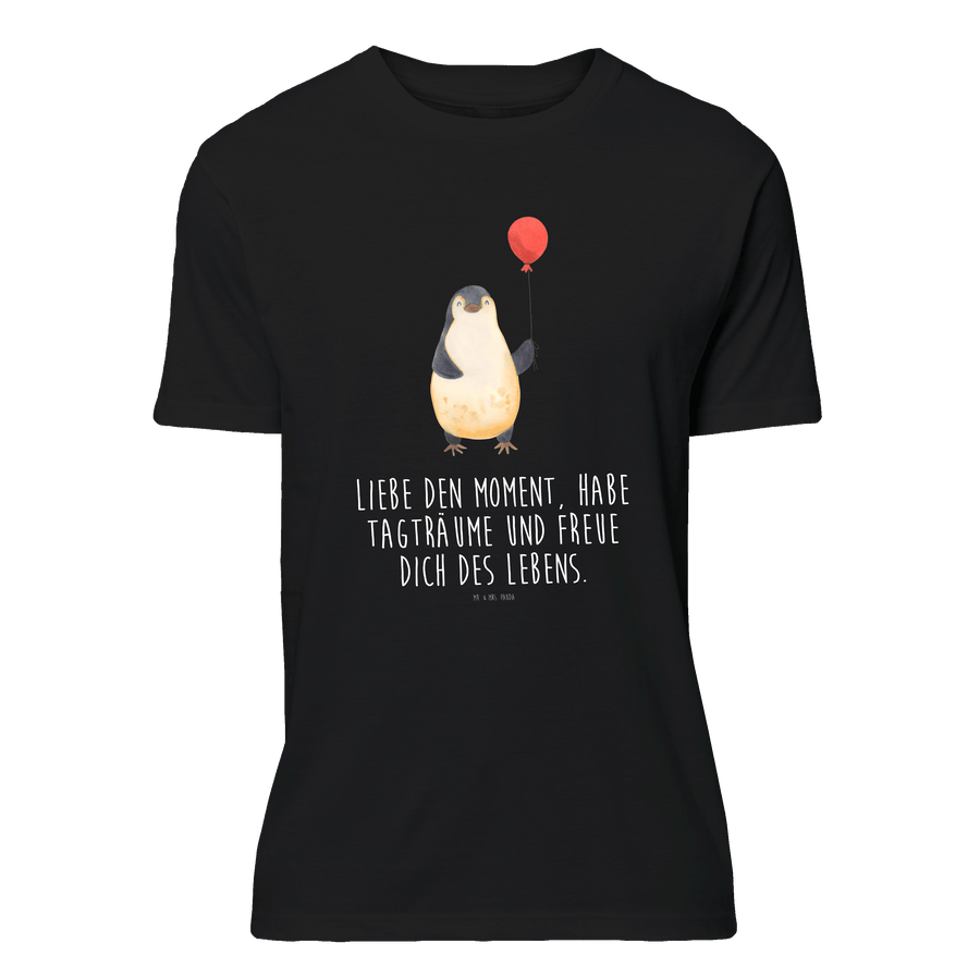 Größe S T-Shirt Pinguin Luftballon - mit Spruch - Schwarz