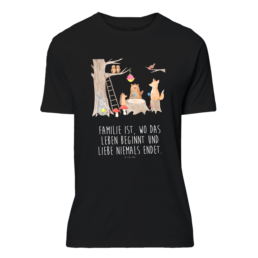 Größe S T-Shirt Waldtiere Picknick - mit Spruch - Schwarz