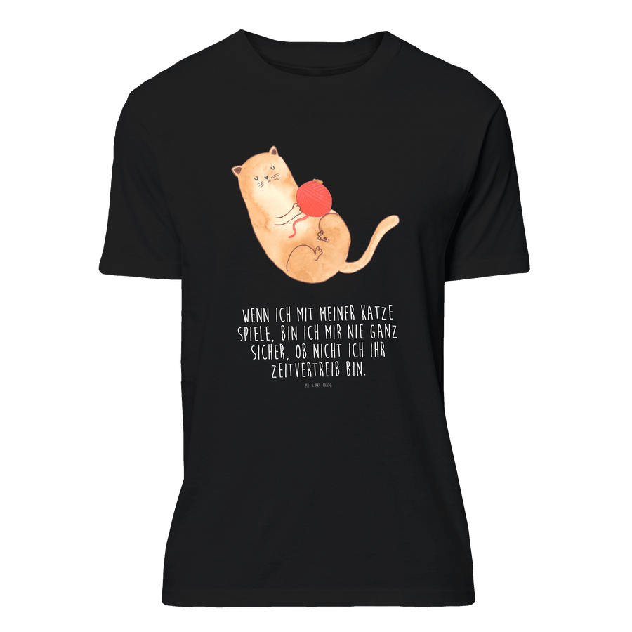Größe S T-Shirt Katzen Wollknäul - mit Spruch - Schwarz