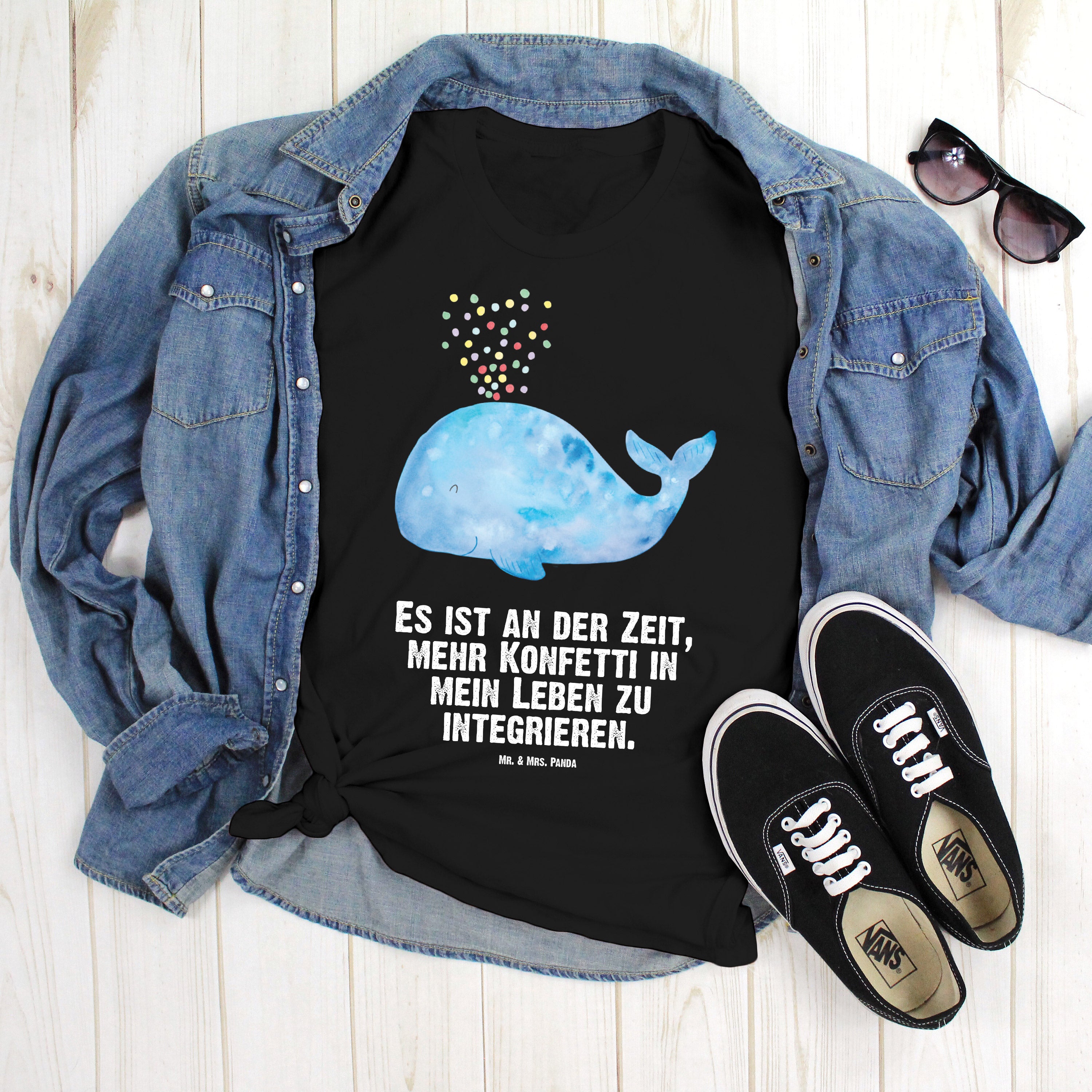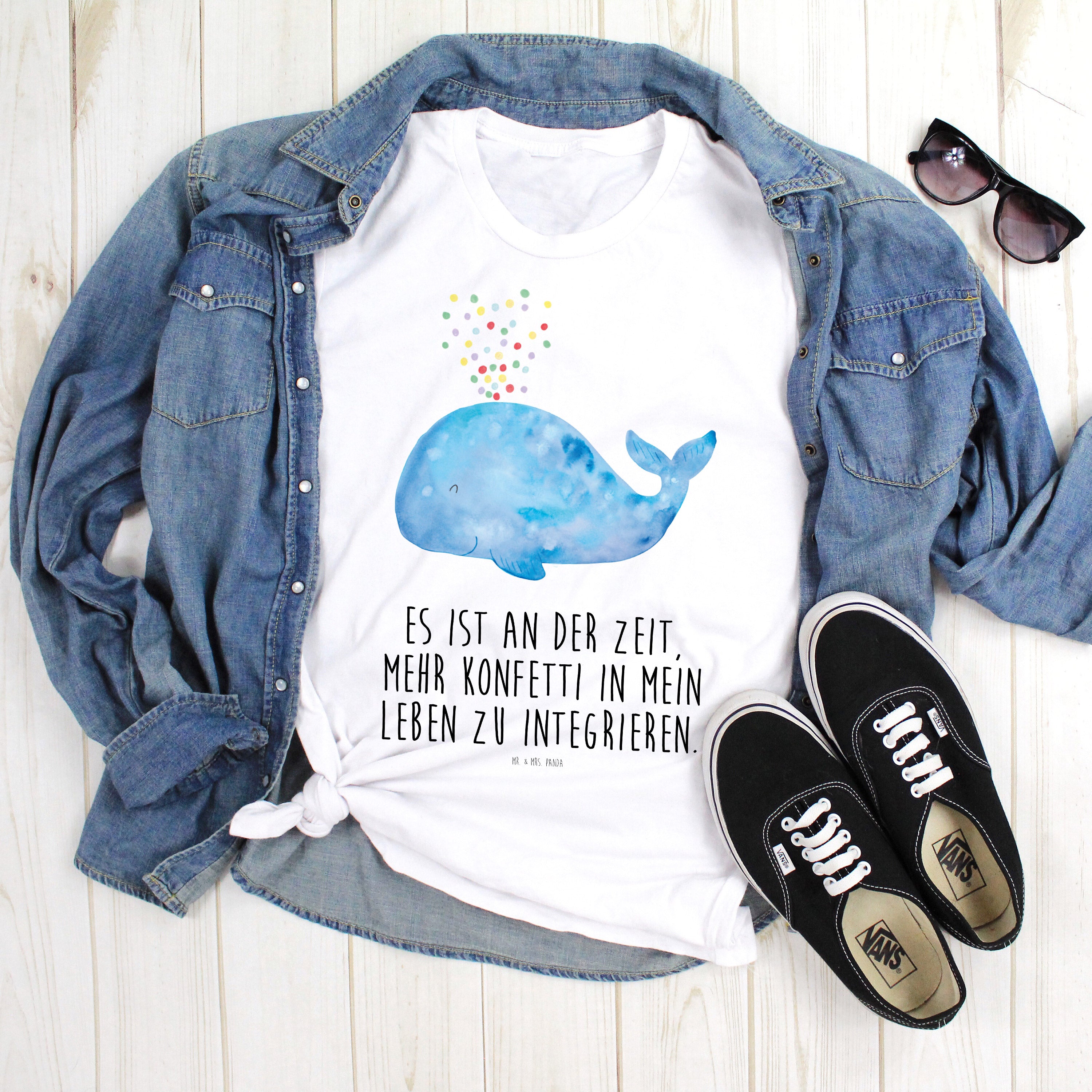 Größe S T-Shirt Wal Konfetti - mit Spruch - Weiß