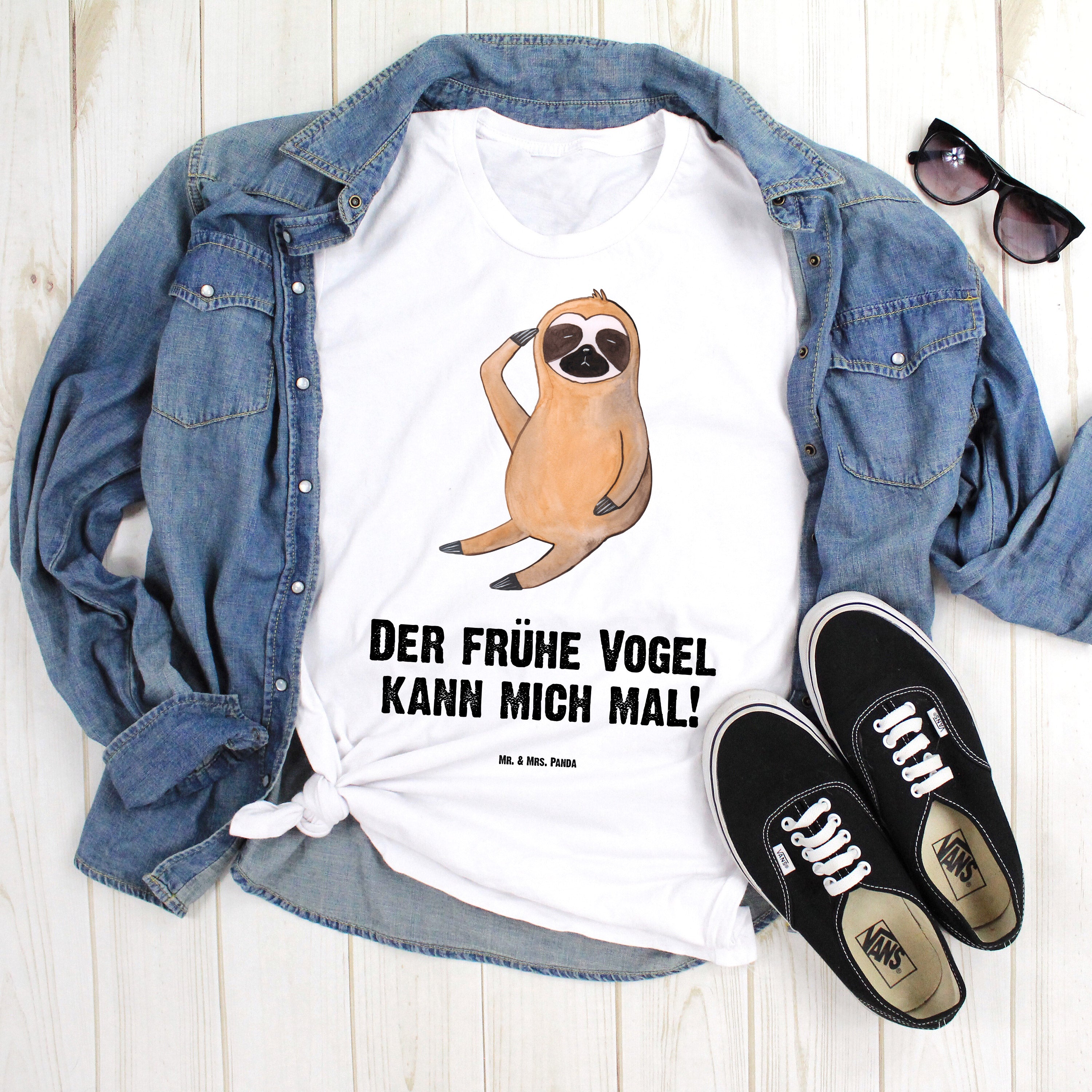 Größe XXL T-Shirt Faultier Vogel zeigen - mit Spruch - Weiß
