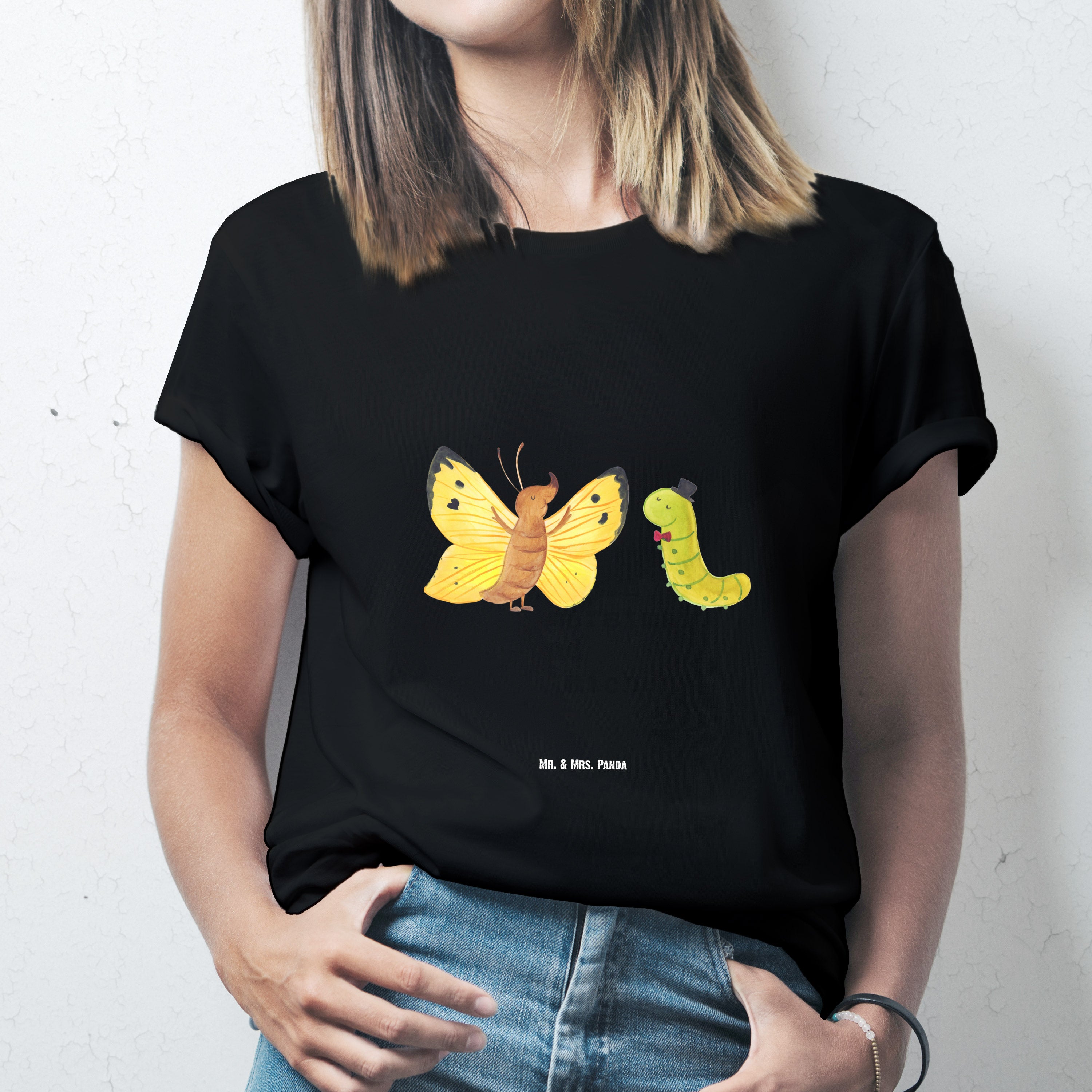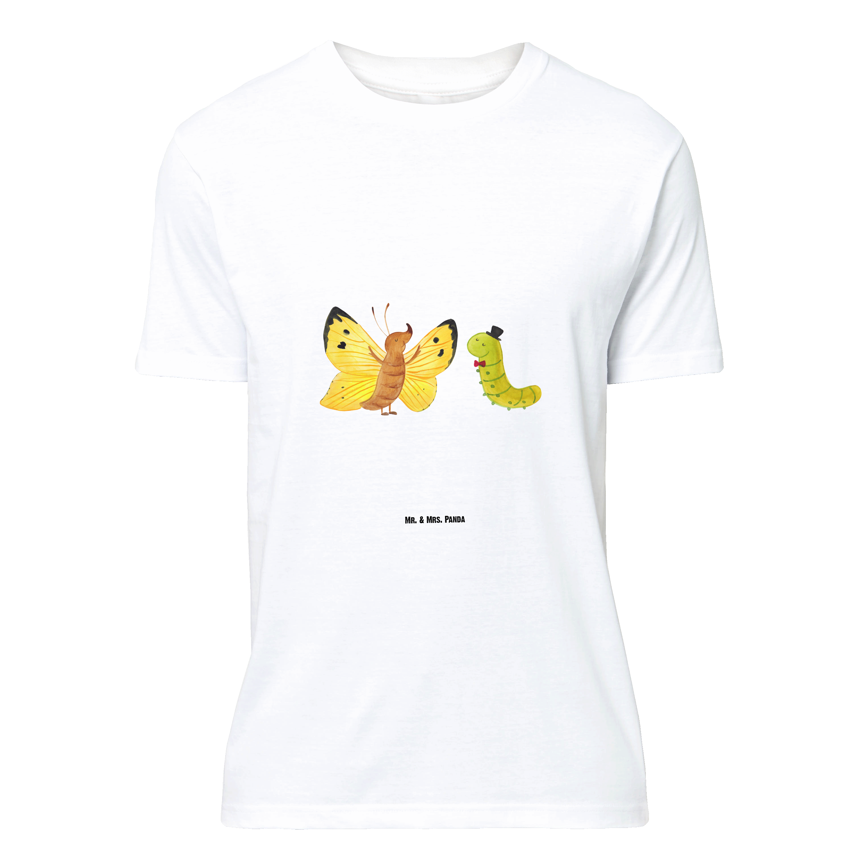 Größe L T-Shirt Raupe & Schmetterling - mit Spruch - Weiß