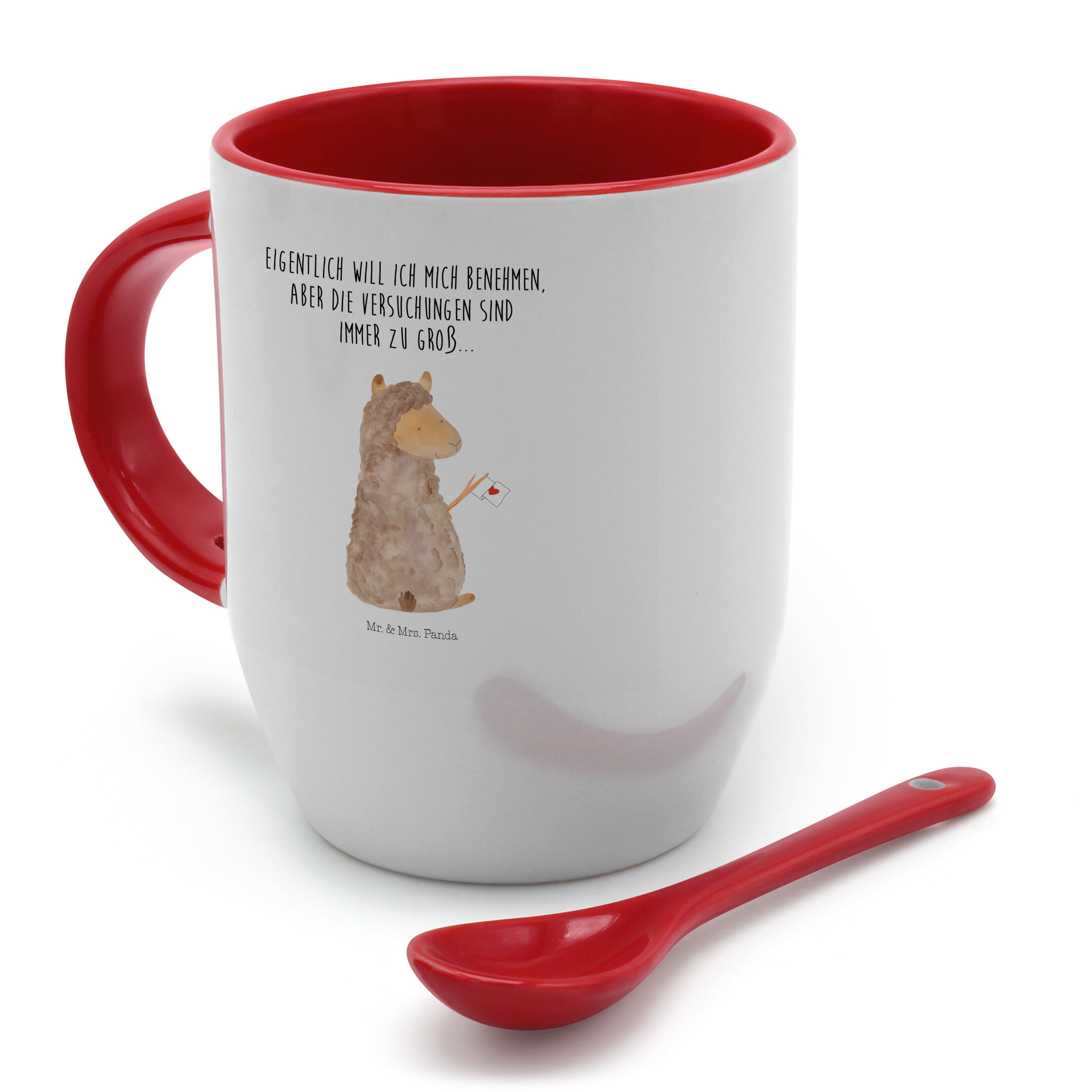 Tasse mit Löffel Alpaka Fahne - mit Spruch