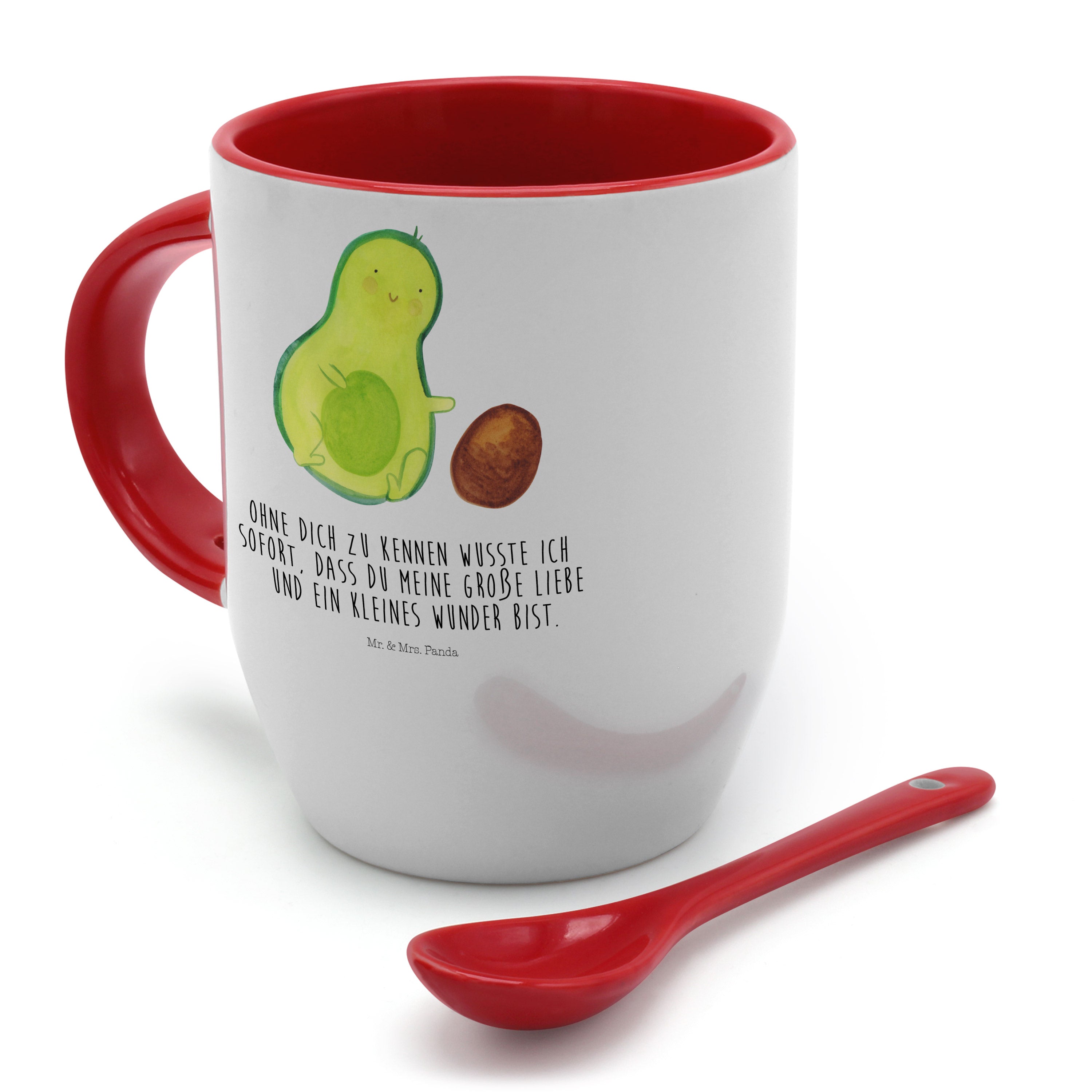Tasse mit Löffel Avocado rollt Kern - mit Spruch