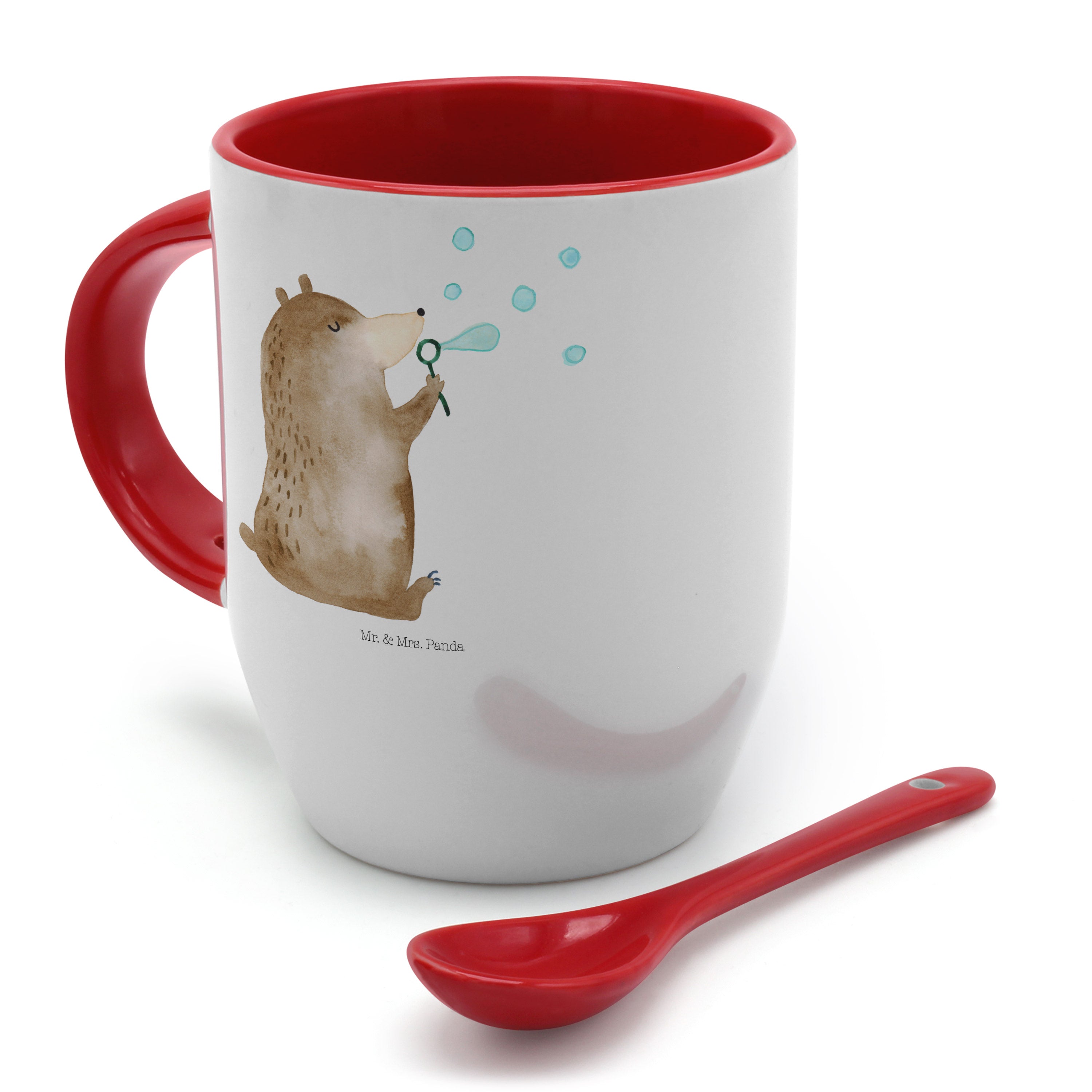 Tasse mit Löffel Bär Seifenblasen Tasse, Kaffeetasse, Tassen, Tasse mit Spruch, Kaffeebecher, Tasse mit Löffel, Bär, Teddy, Teddybär, Seifenblasen Bär Lustig Sein Glücklich Traurig Happy