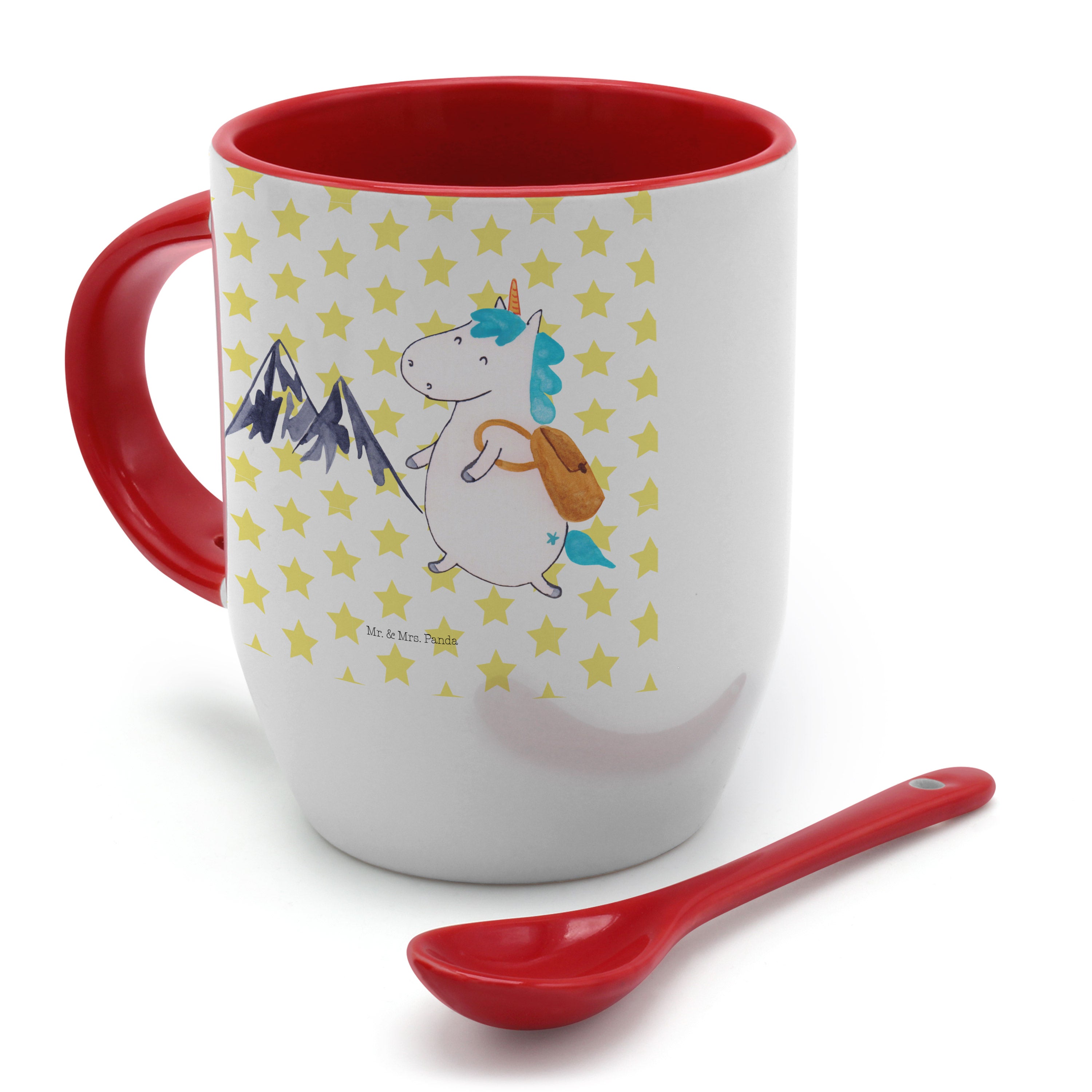 Tasse mit Löffel Einhorn Bergsteiger - mit Spruch