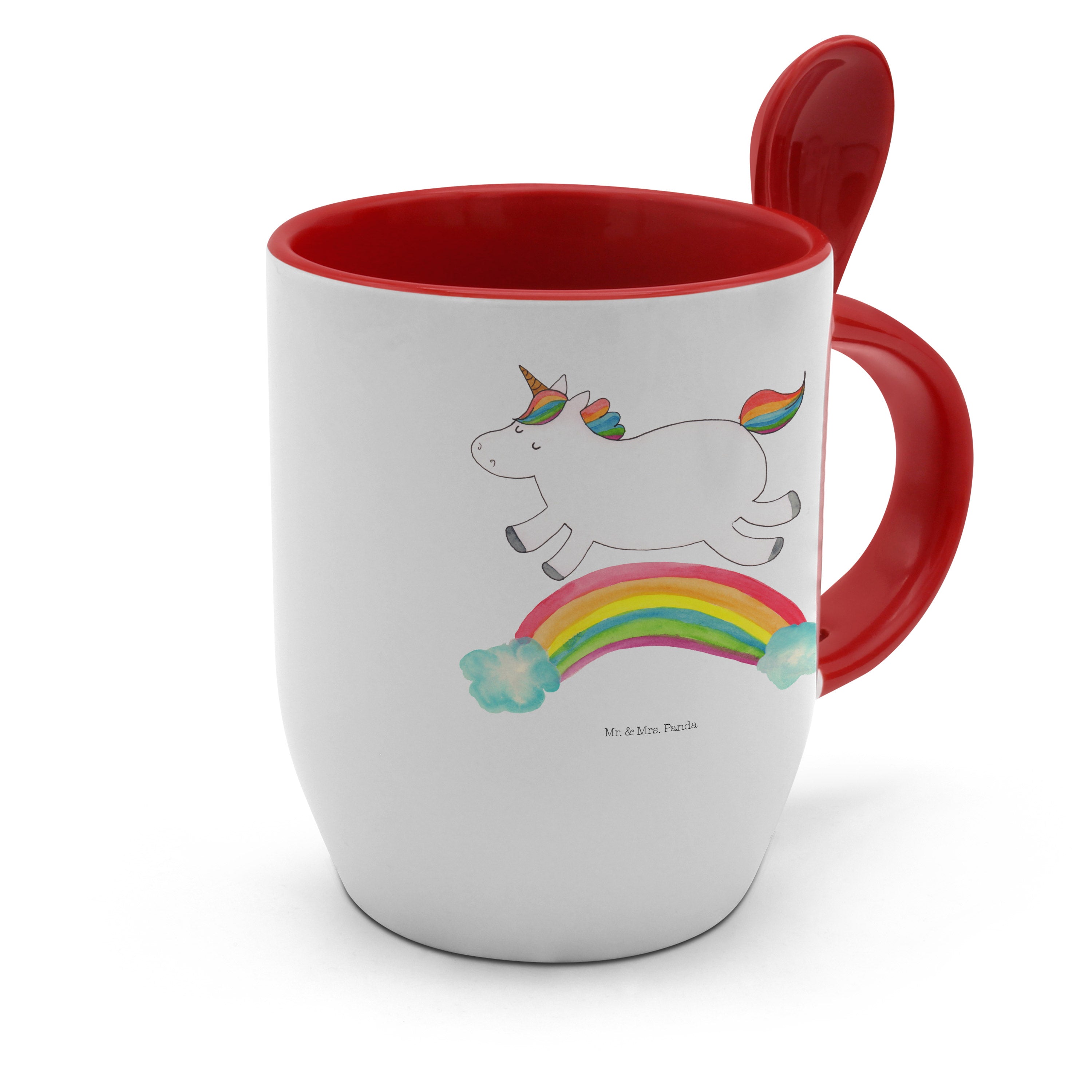 Tasse mit Löffel Einhorn Regenbogen - mit Spruch