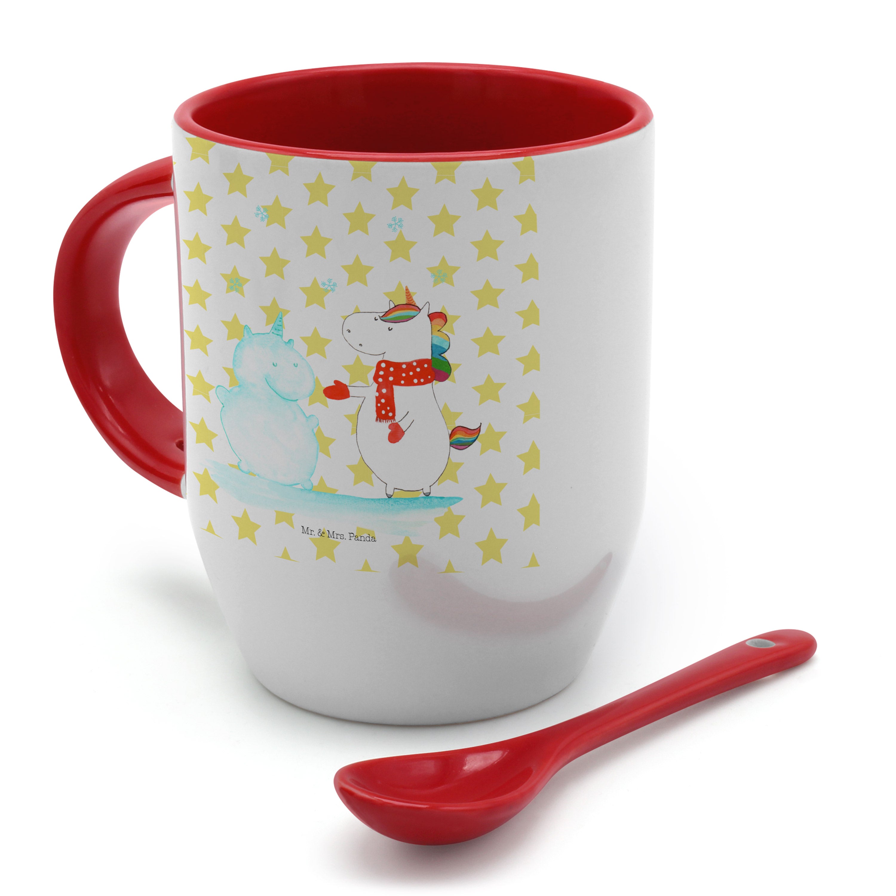 Tasse mit Löffel Einhorn Schneemann - mit Spruch