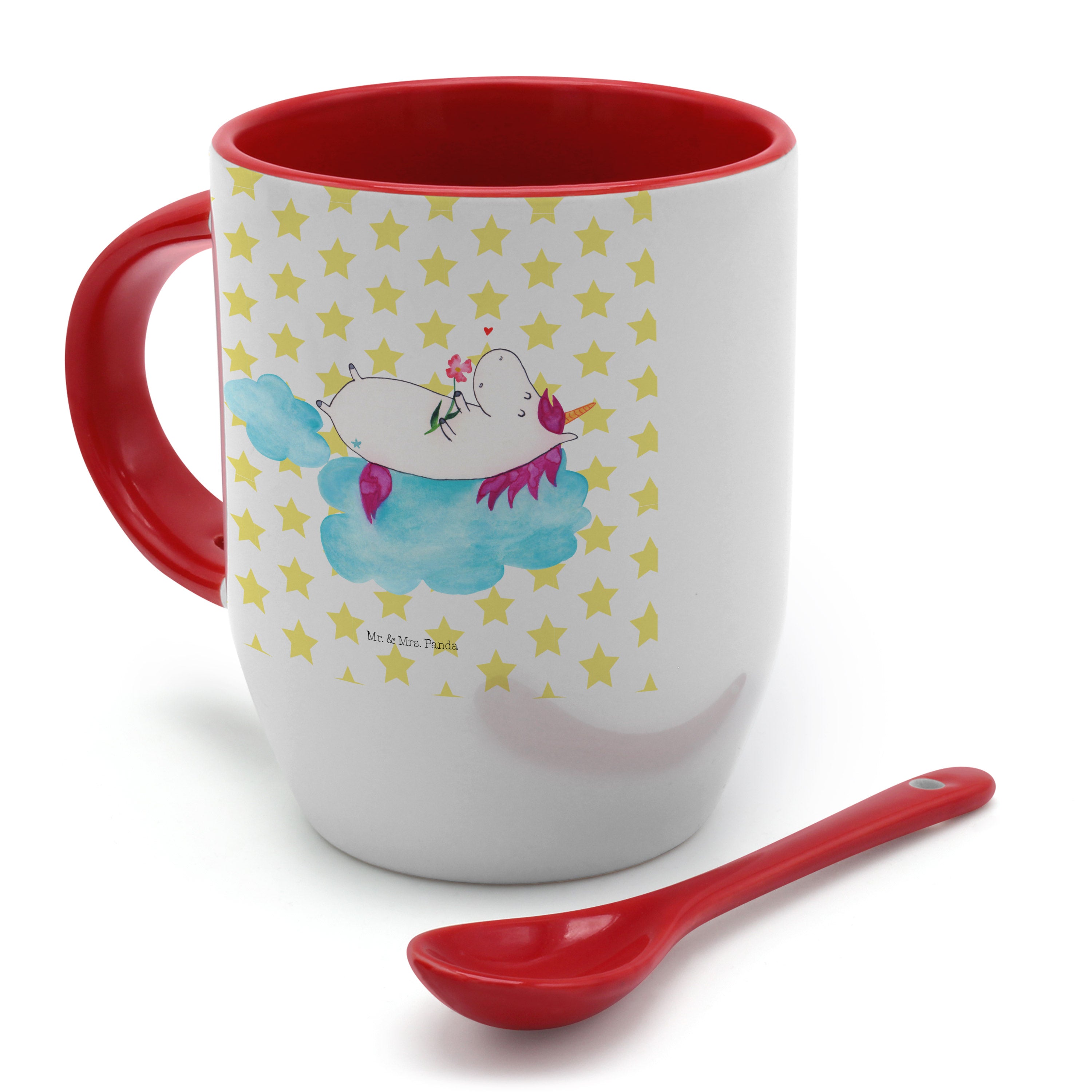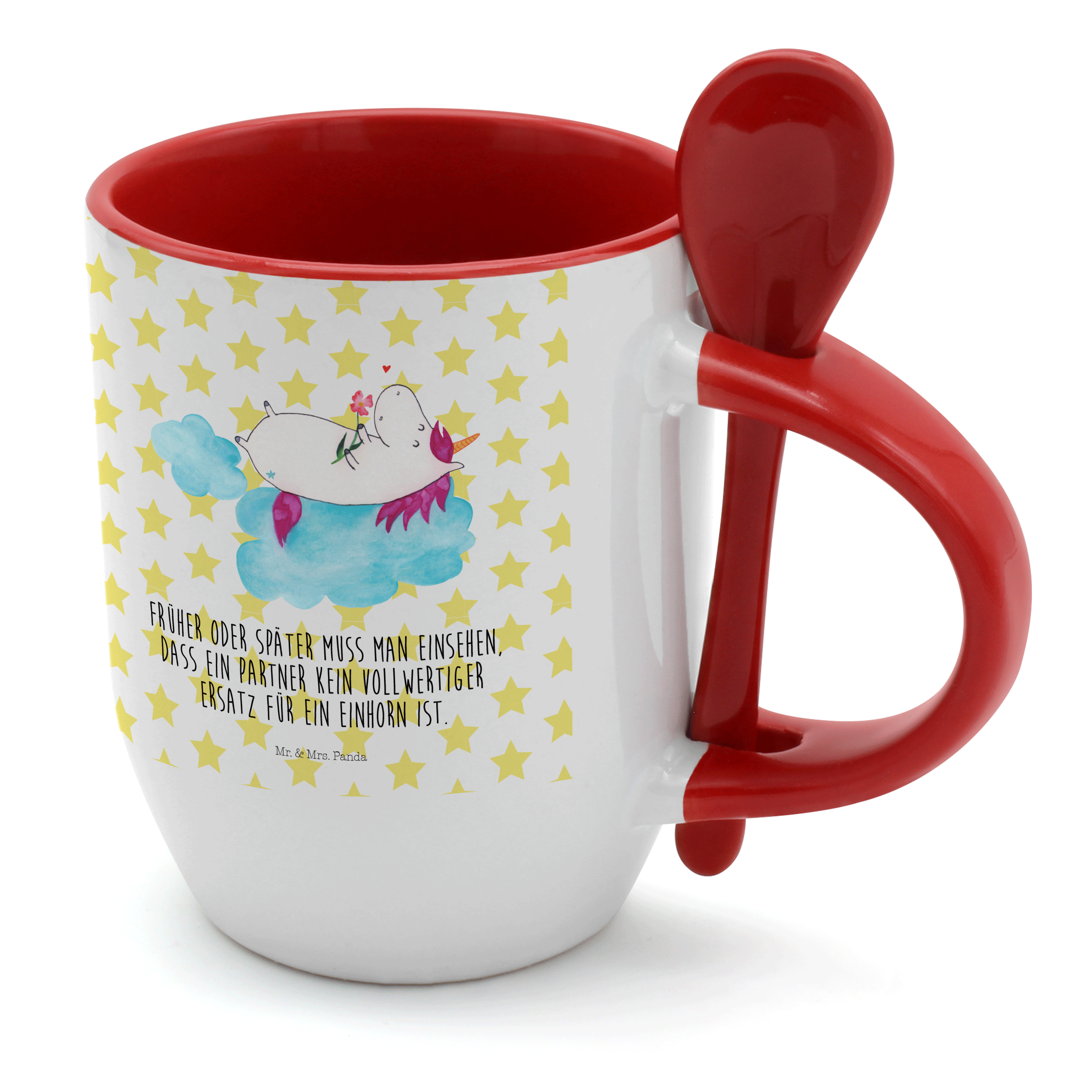 Tasse mit Löffel Einhorn verliebt auf Wolke - mit Spruch