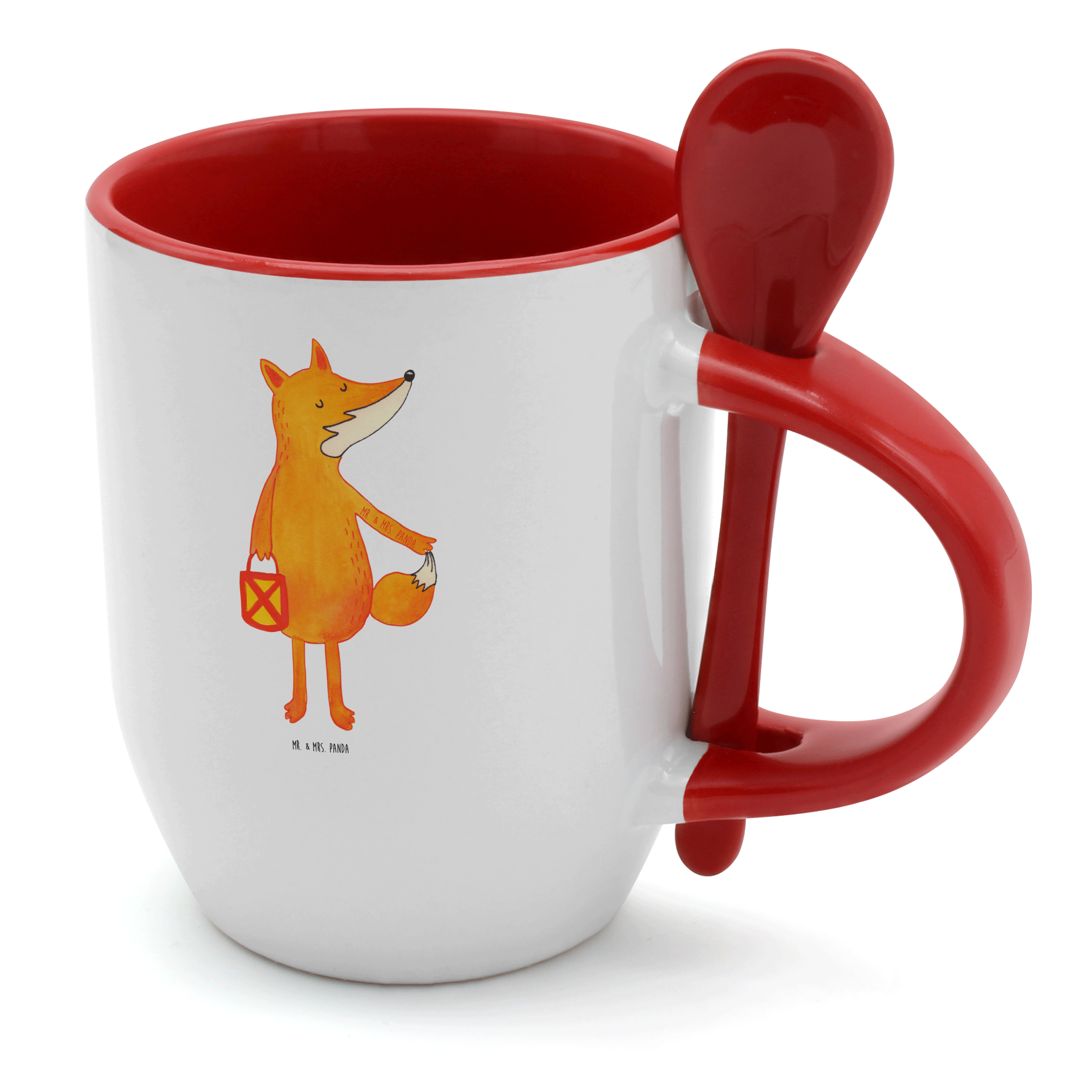 Tasse mit Löffel Fuchs Laterne Tasse, Kaffeetasse, Tassen, Tasse mit Spruch, Kaffeebecher, Tasse mit Löffel, Fuchs, Füchse, Spruch trösten, Liebeskummer Spruch, Laterne, Sankt Martin, Laternenumzug, Aufmuntern, Cäsar Otto Hugo Flaischlen
