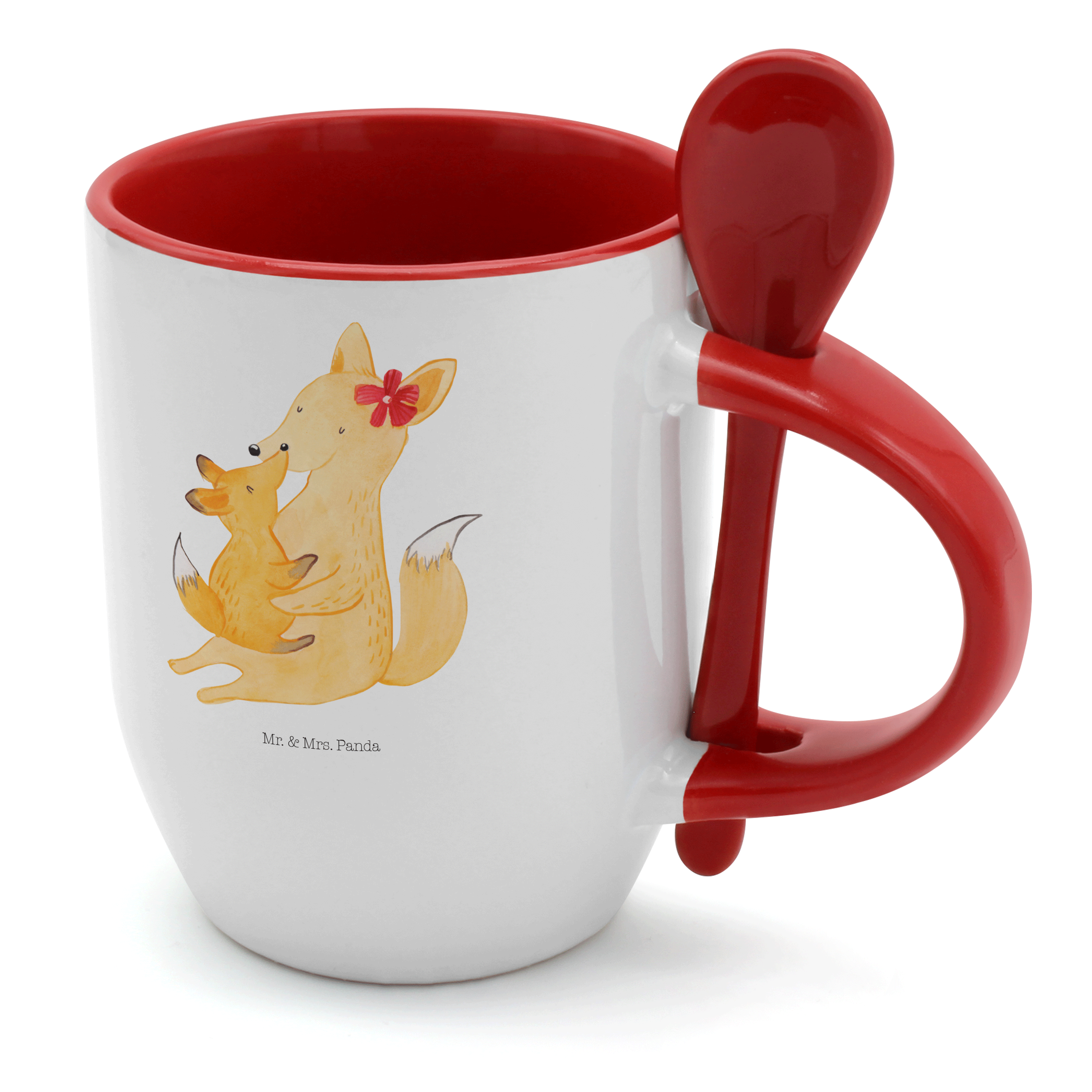 Tasse mit Löffel Fuchs Mama & Kind Tasse, Kaffeetasse, Tassen, Tasse mit Spruch, Kaffeebecher, Tasse mit Löffel, Familie, Vatertag, Muttertag, Bruder, Schwester, Mama, Papa, Oma, Opa, Mutter, Tochter, Lieblingstochter, Beste Tochter, Geschenk