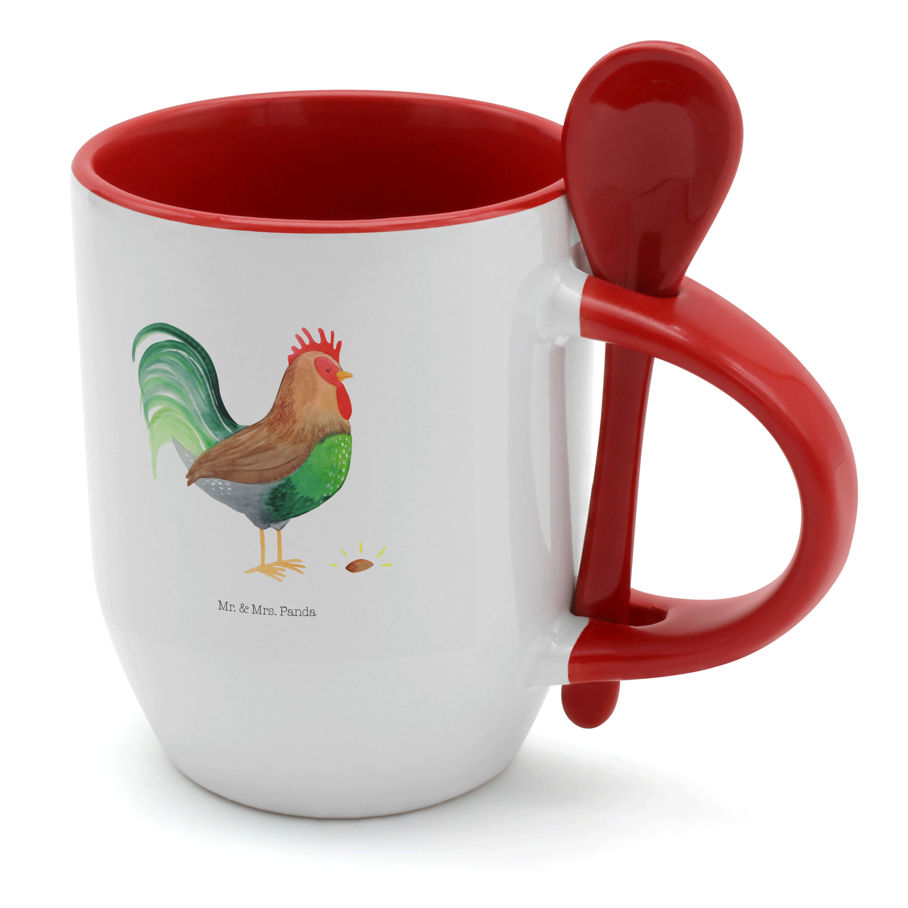 Tasse mit Löffel Hahn mit Korn Tasse, Kaffeetasse, Tassen, Tasse mit Spruch, Kaffeebecher, Tasse mit Löffel, Bauernhof, Hoftiere, Landwirt, Landwirtin, Hahn, Korn, Henne, Eier, Natur