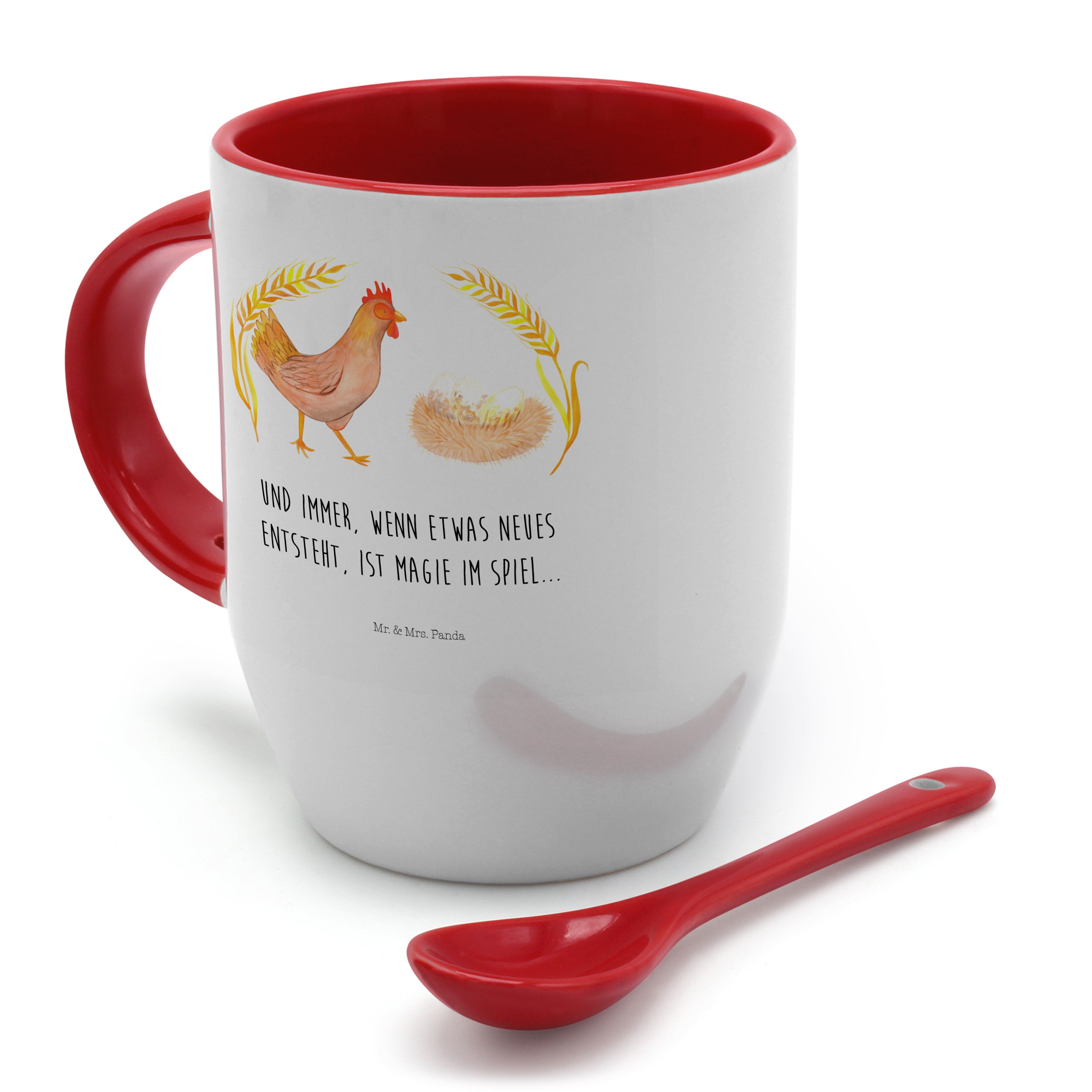 Tasse mit Löffel Huhn stolz - mit Spruch