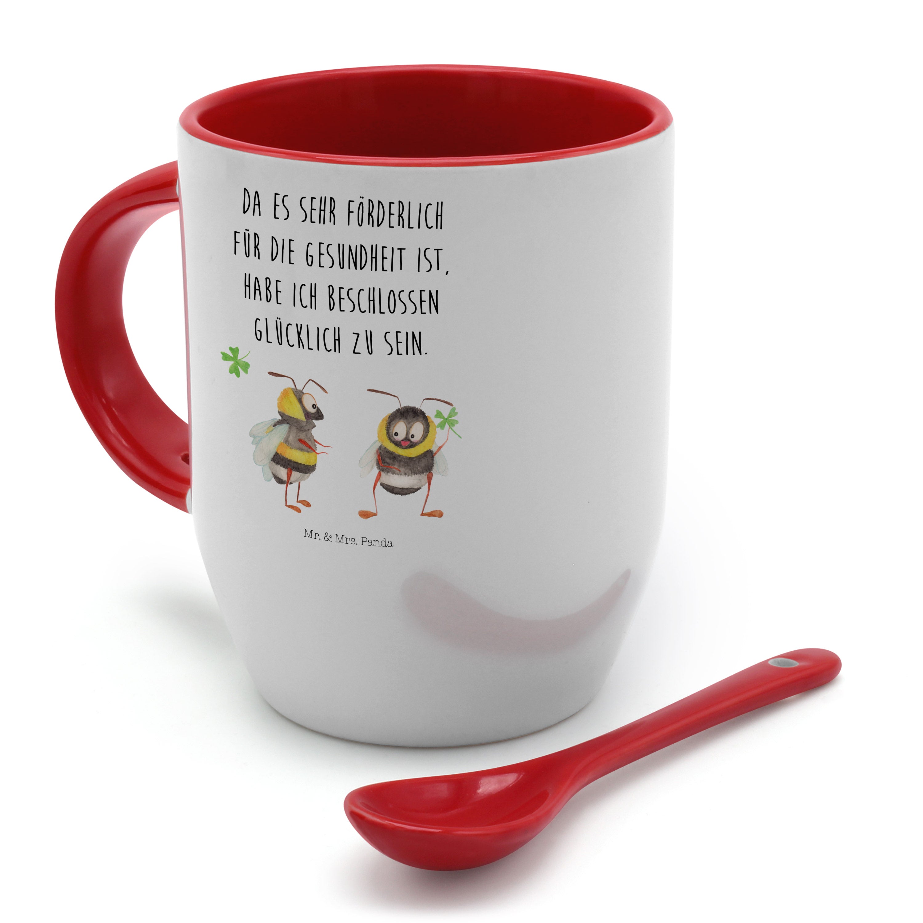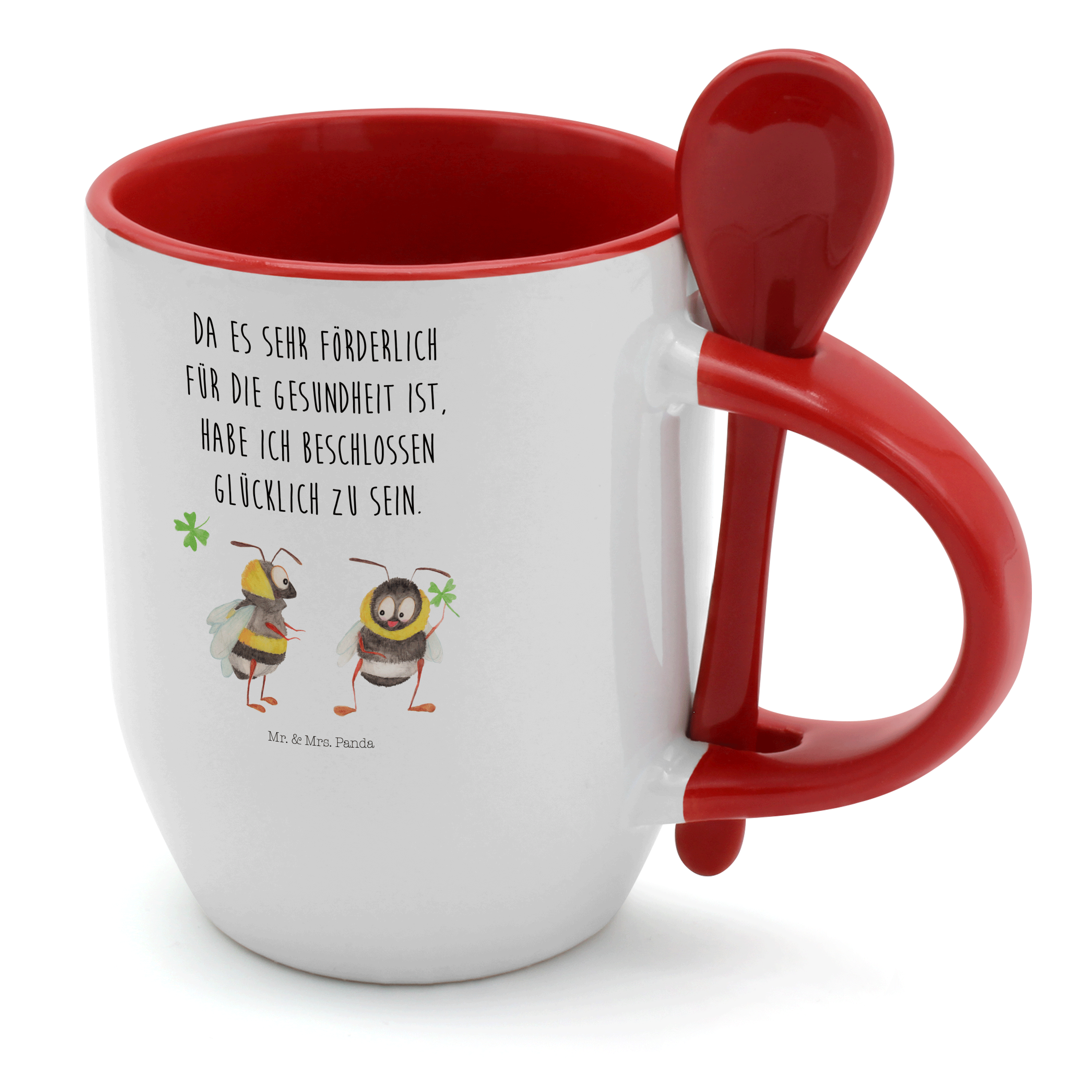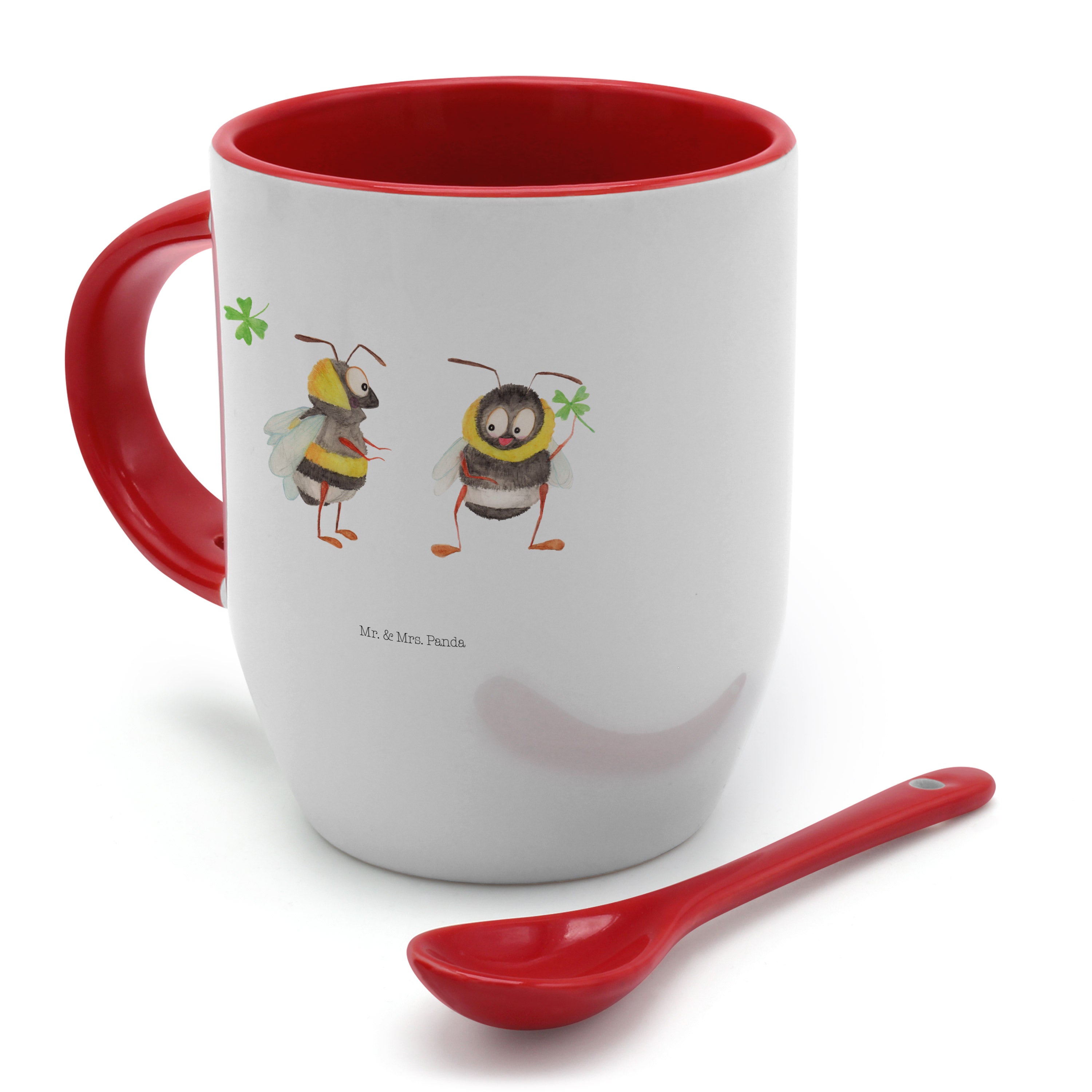 Tasse mit Löffel Hummeln mit Kleeblatt - mit Spruch