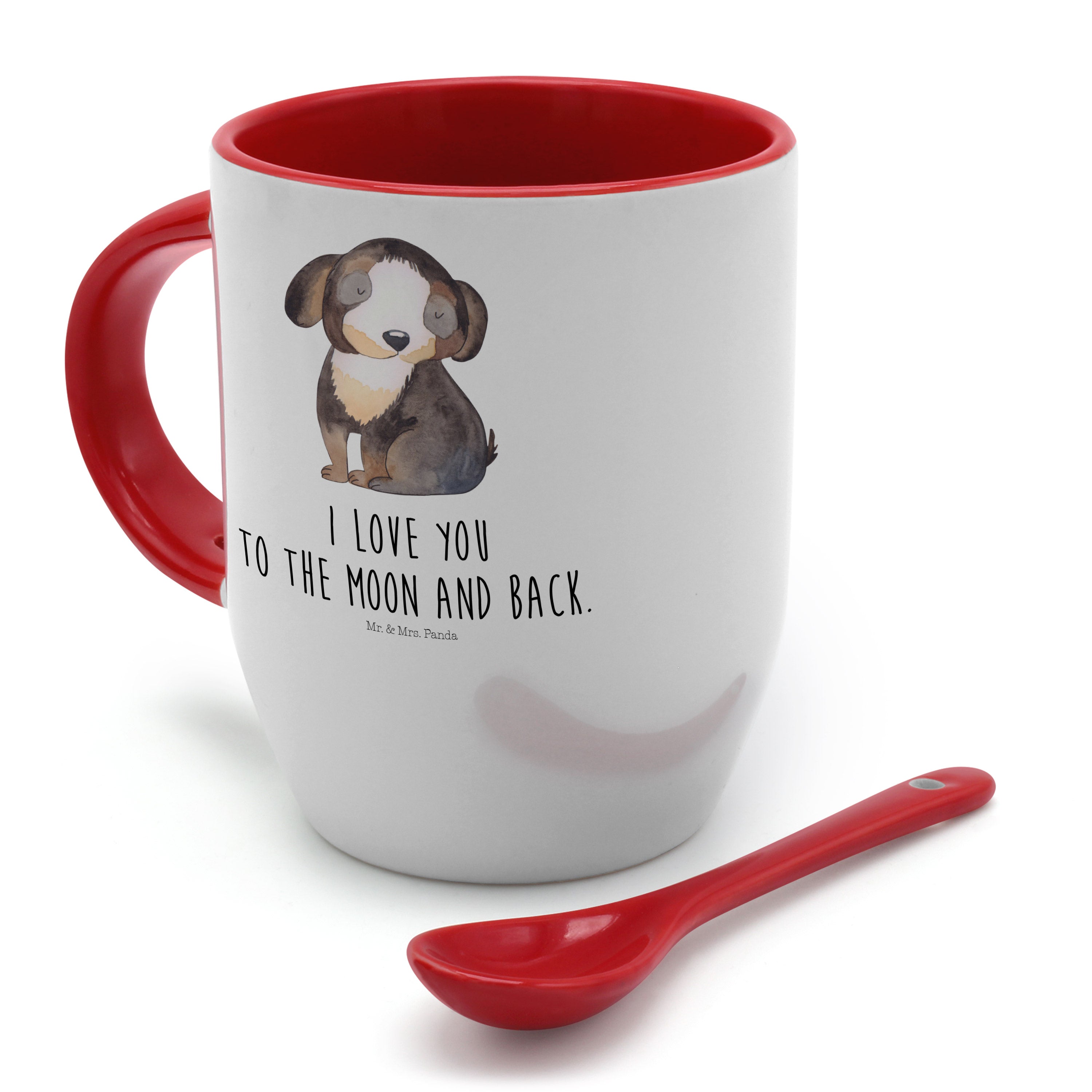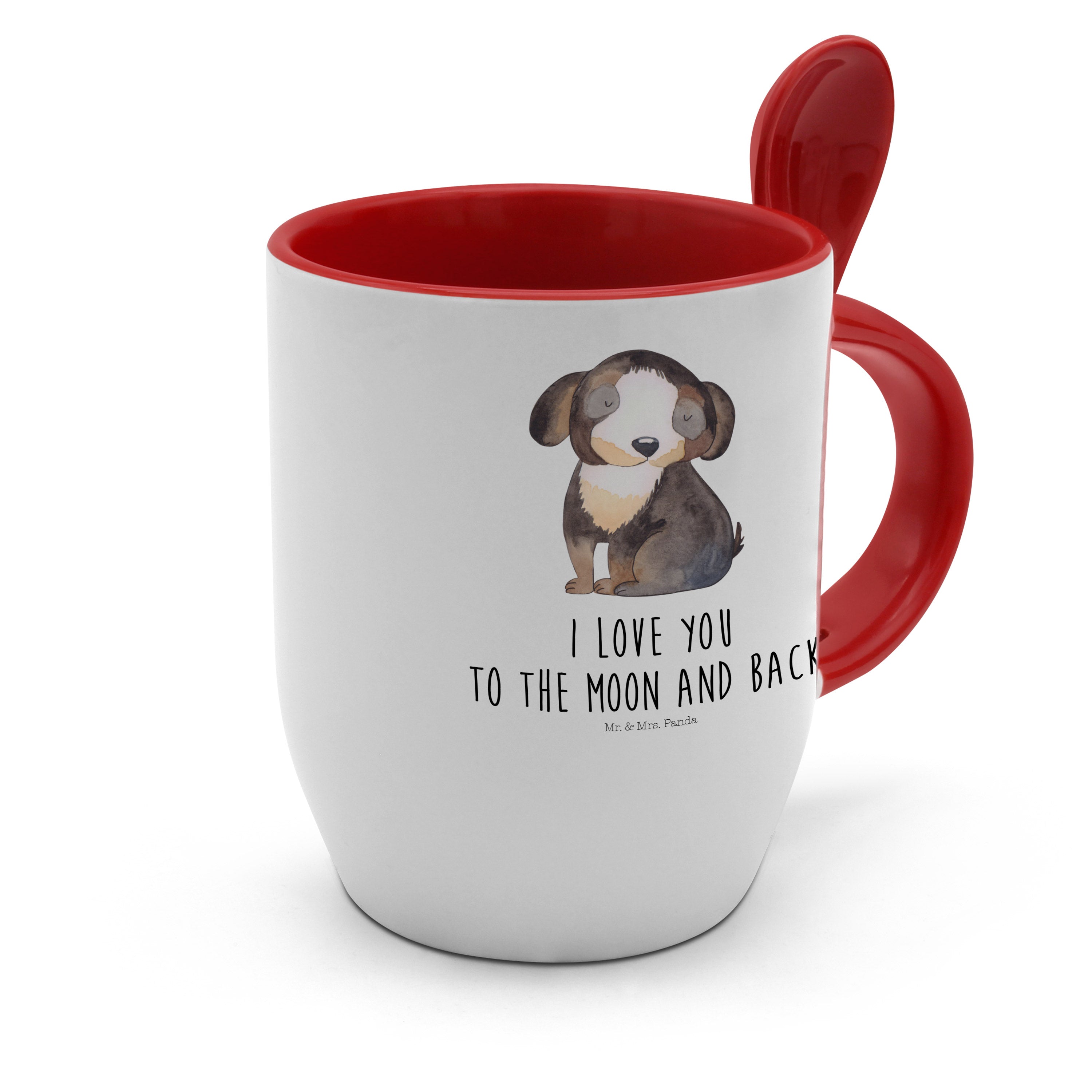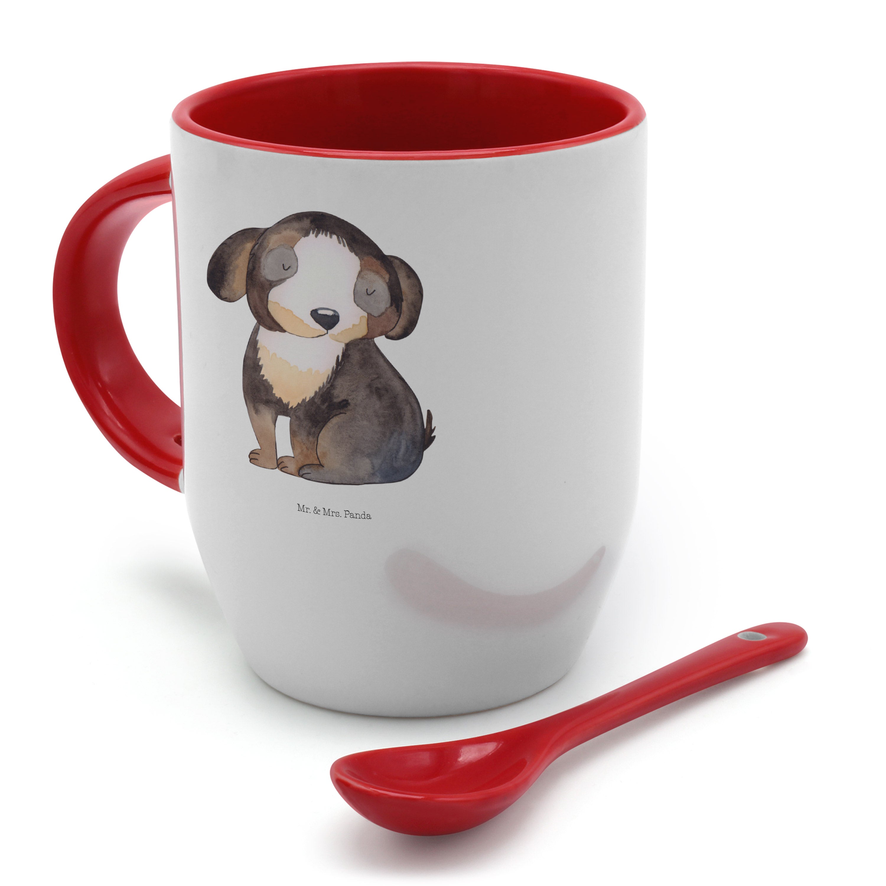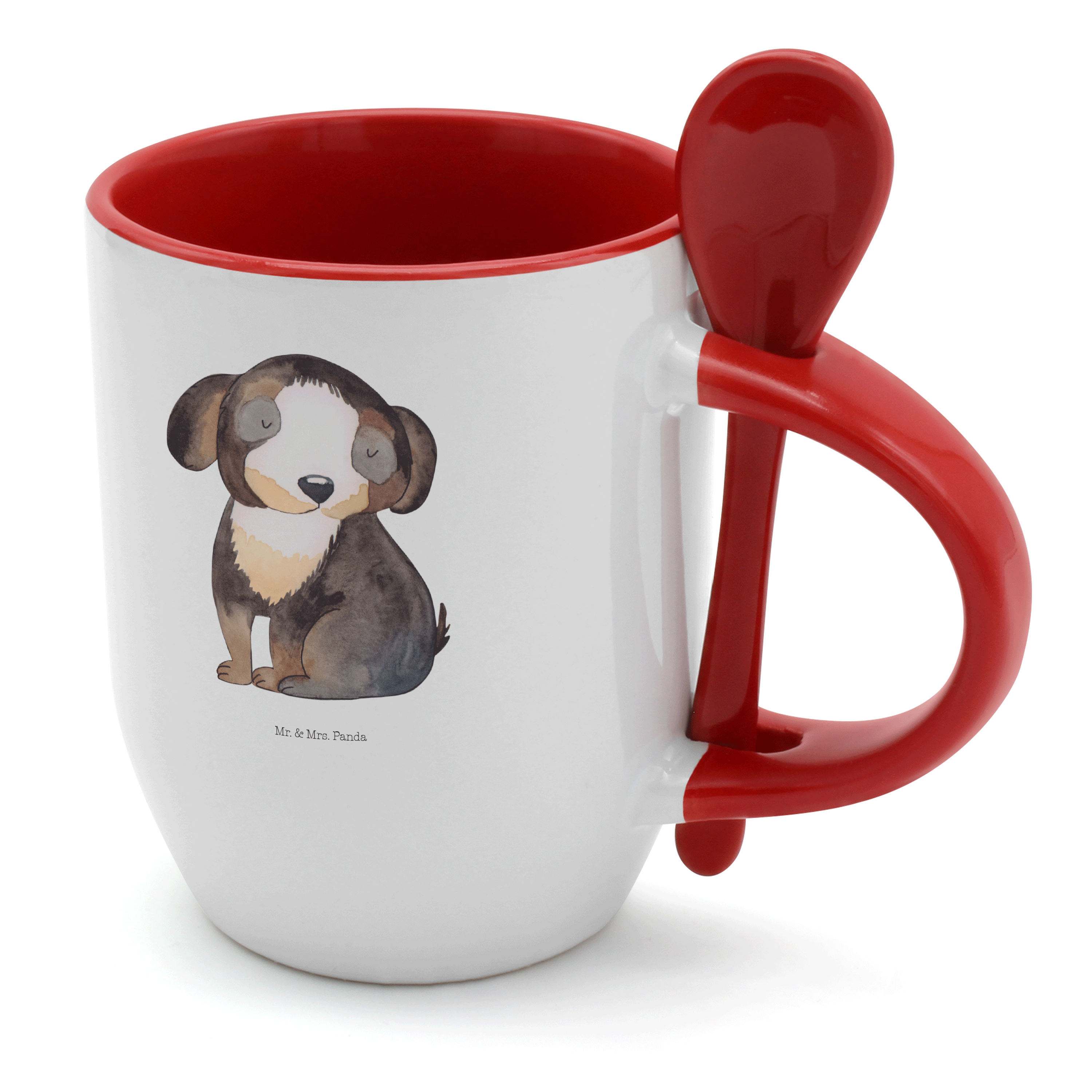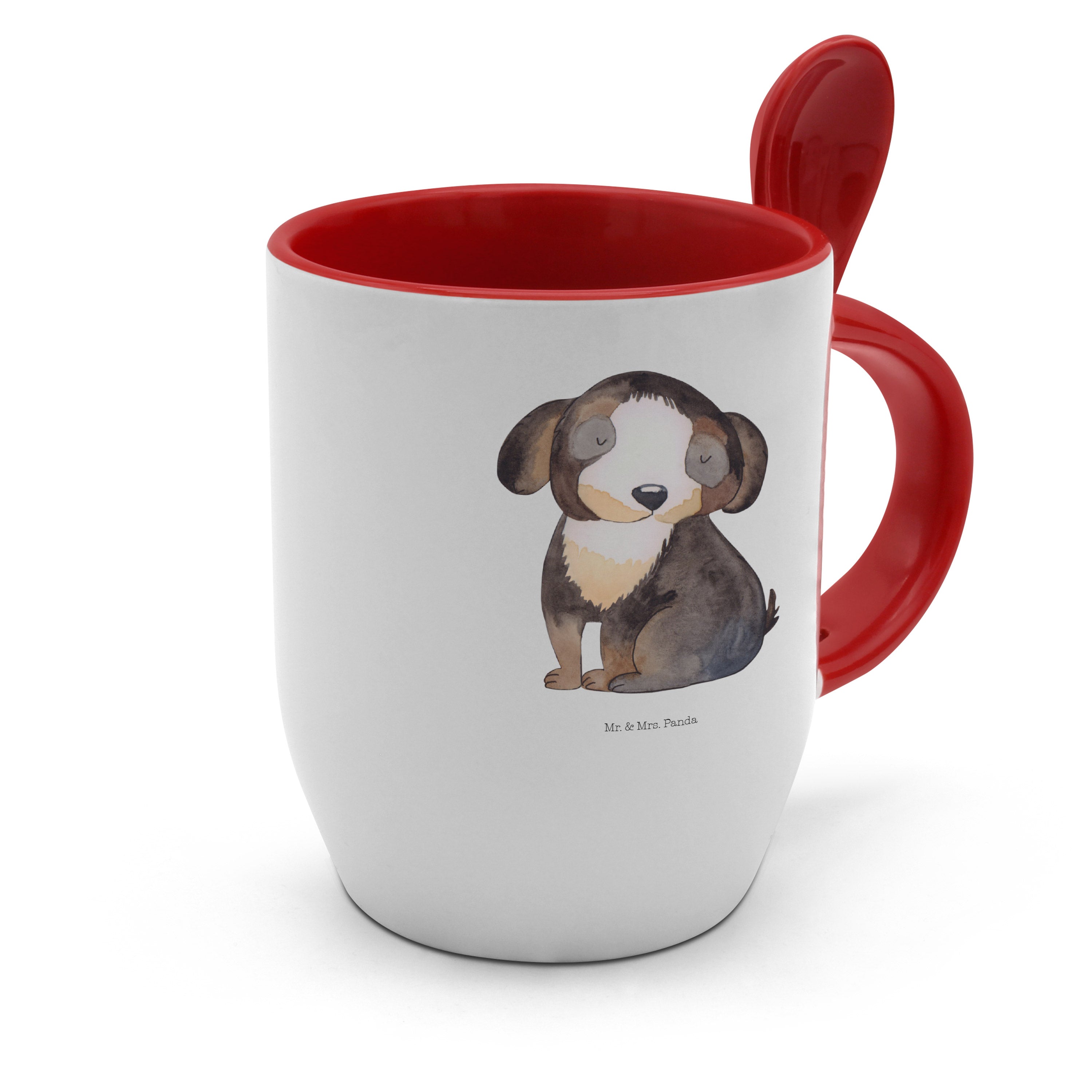 Tasse mit Löffel Hund entspannt - mit Spruch
