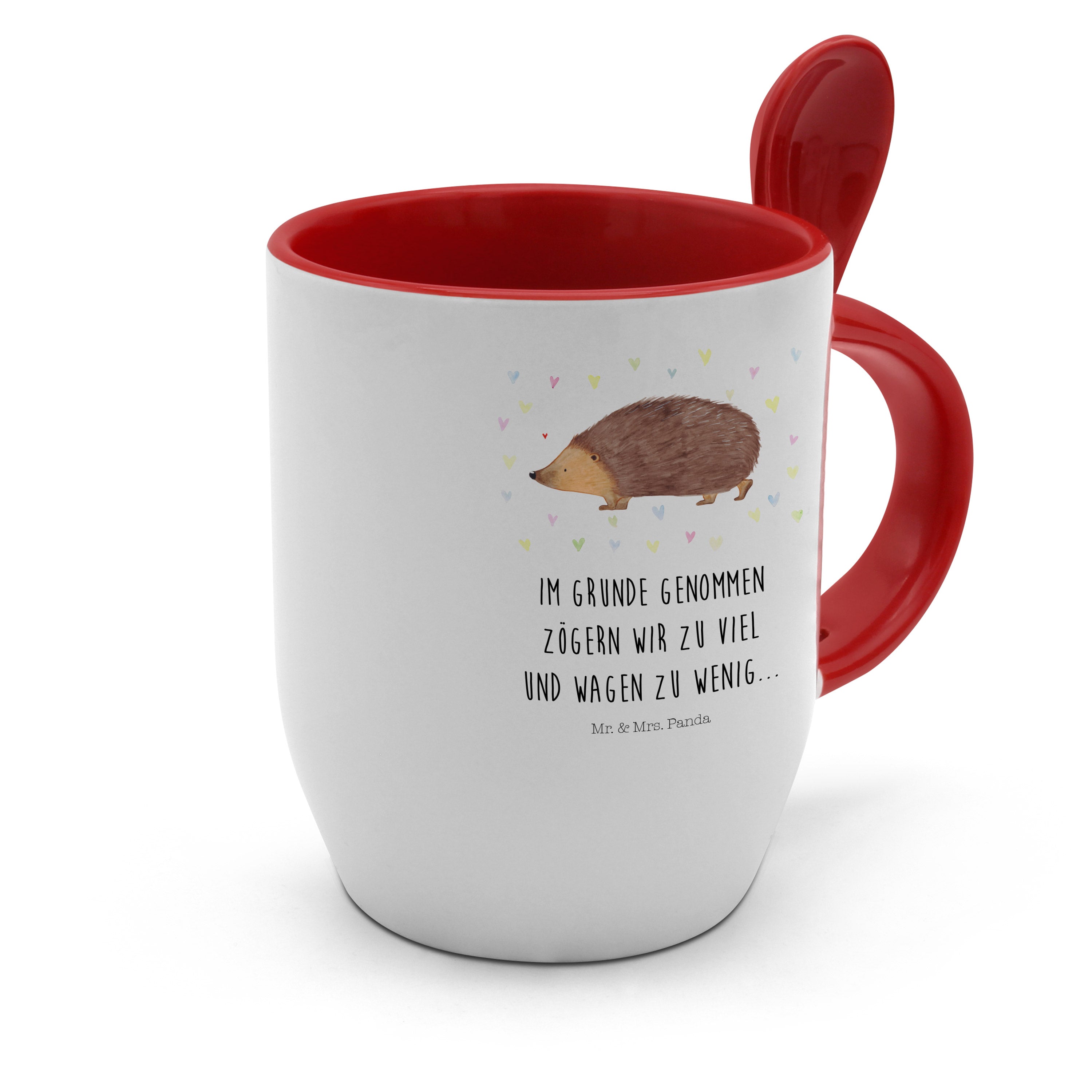 Tasse mit Löffel Igel Herzen - mit Spruch