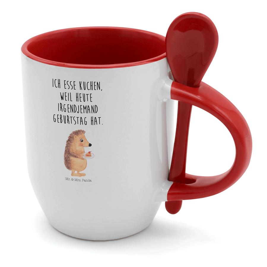 Tasse mit Löffel Igel mit Kuchenstück - mit Spruch