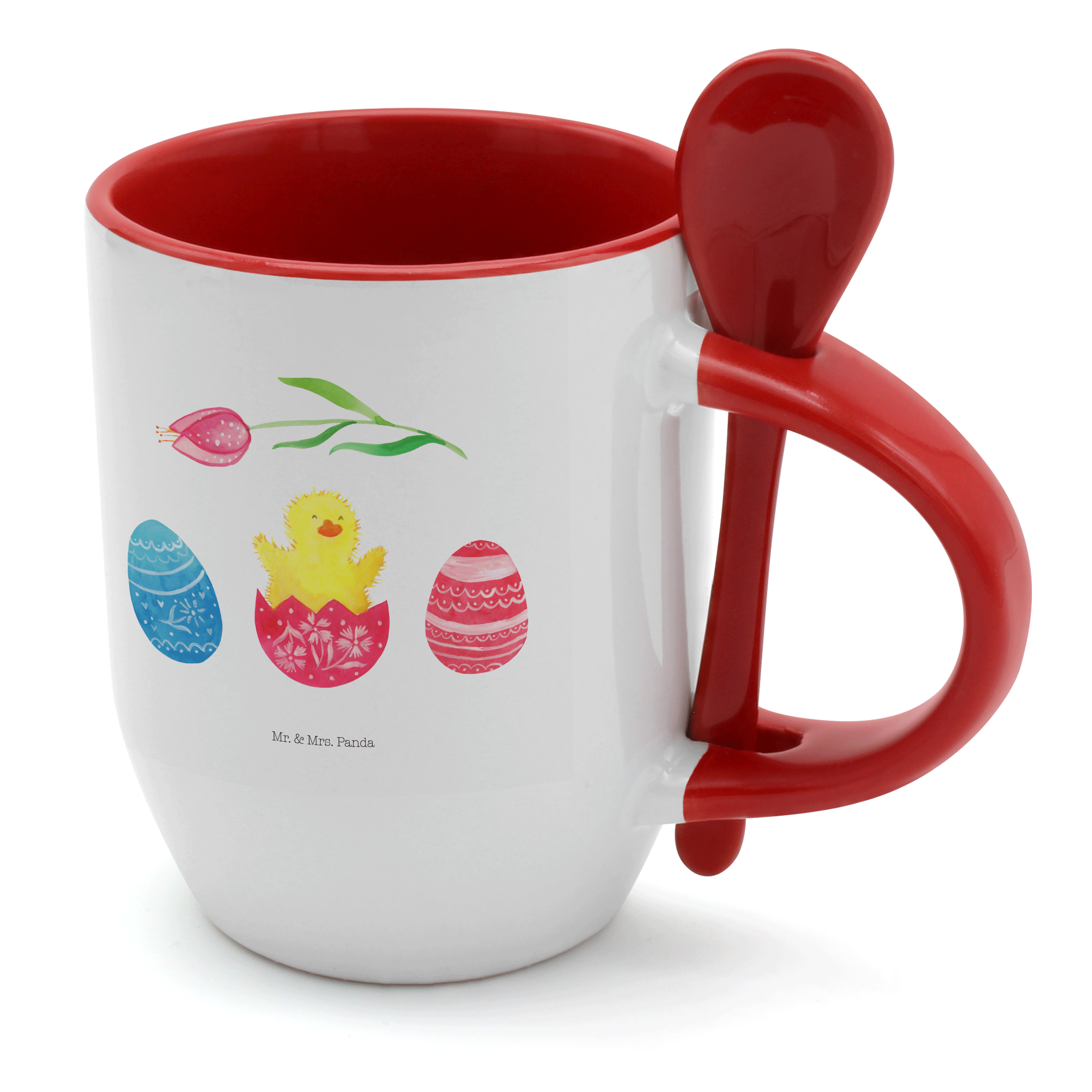 Tasse mit Löffel Küken geschlüpft - mit Spruch