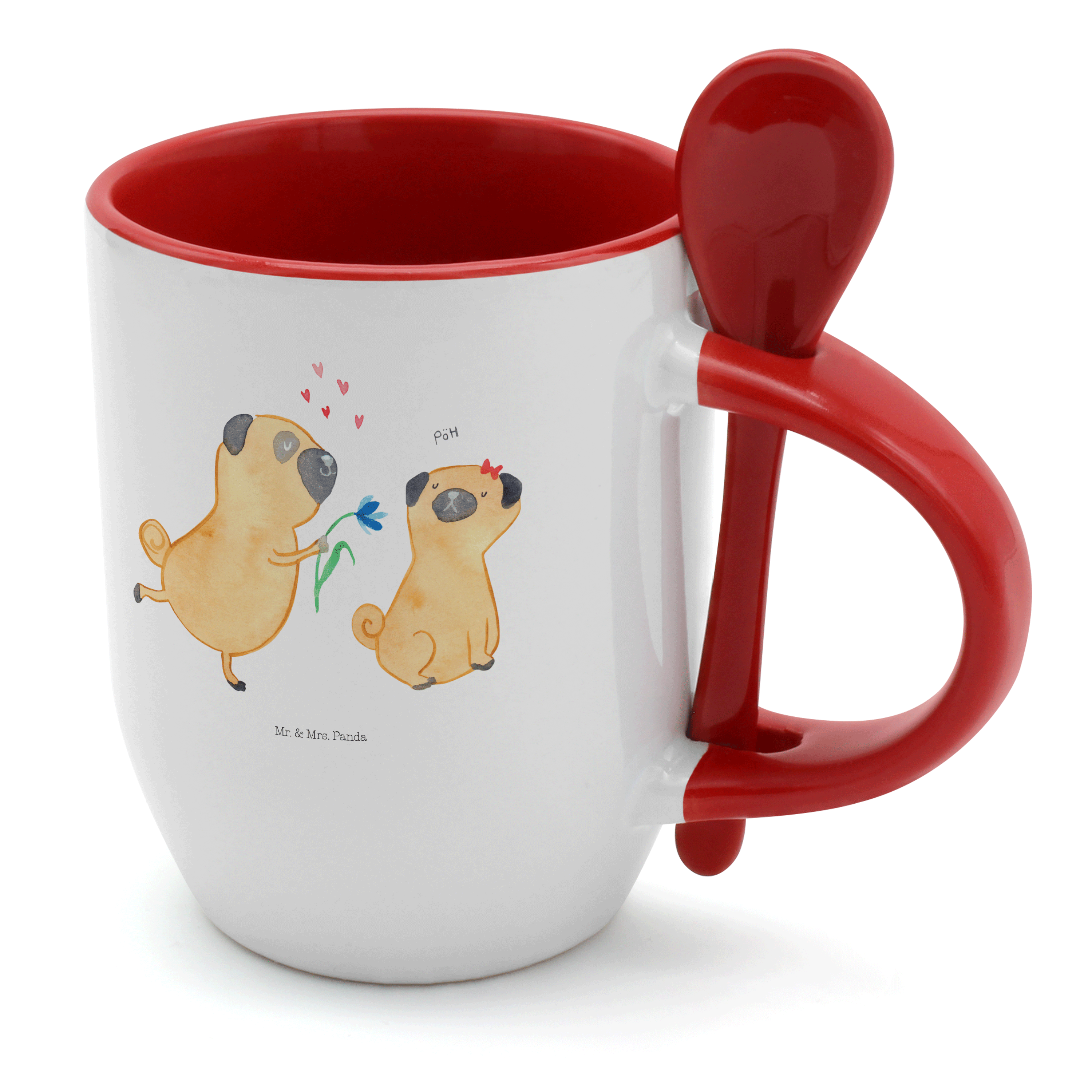 Tasse mit Löffel Mops verliebt - mit Spruch