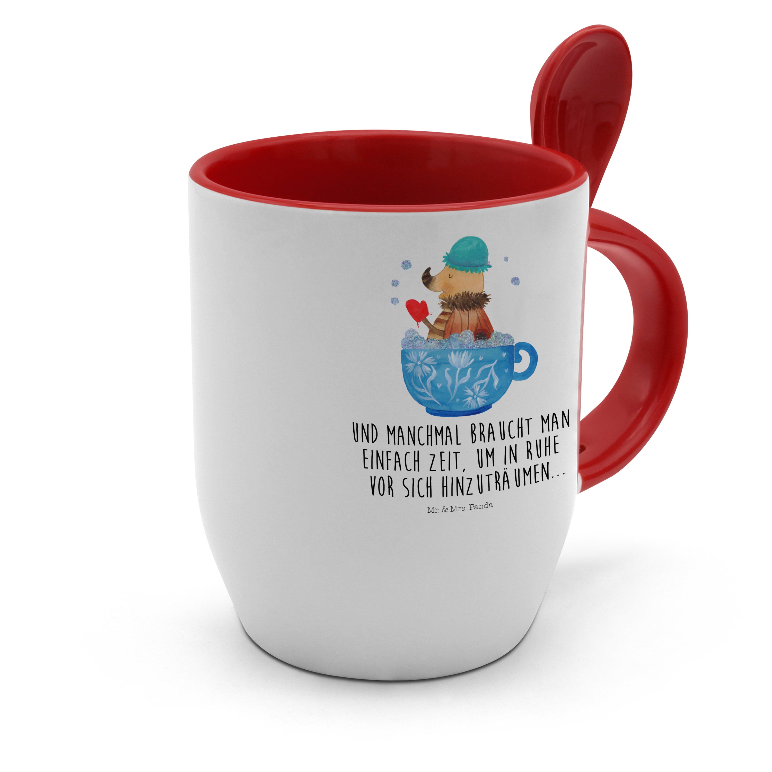 Tasse mit Löffel Nachtfalter Schaumbad - mit Spruch